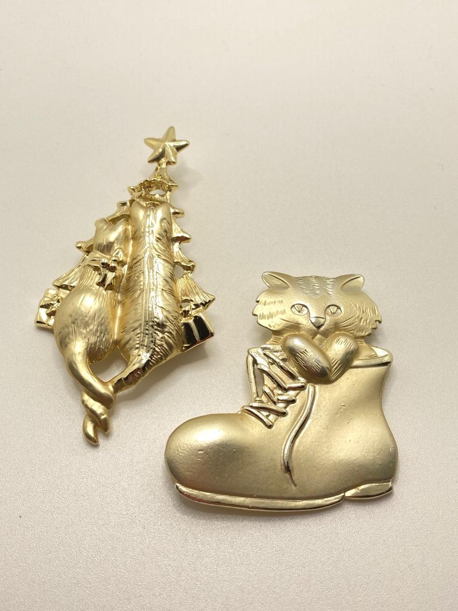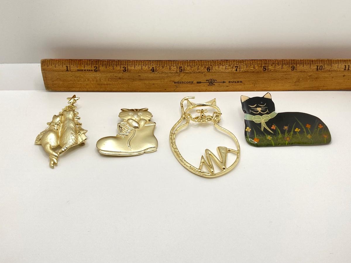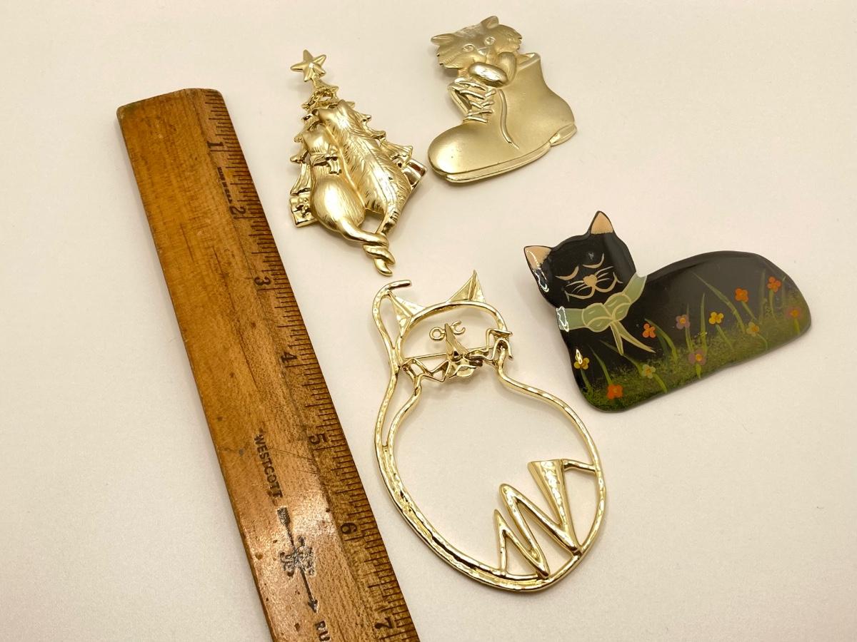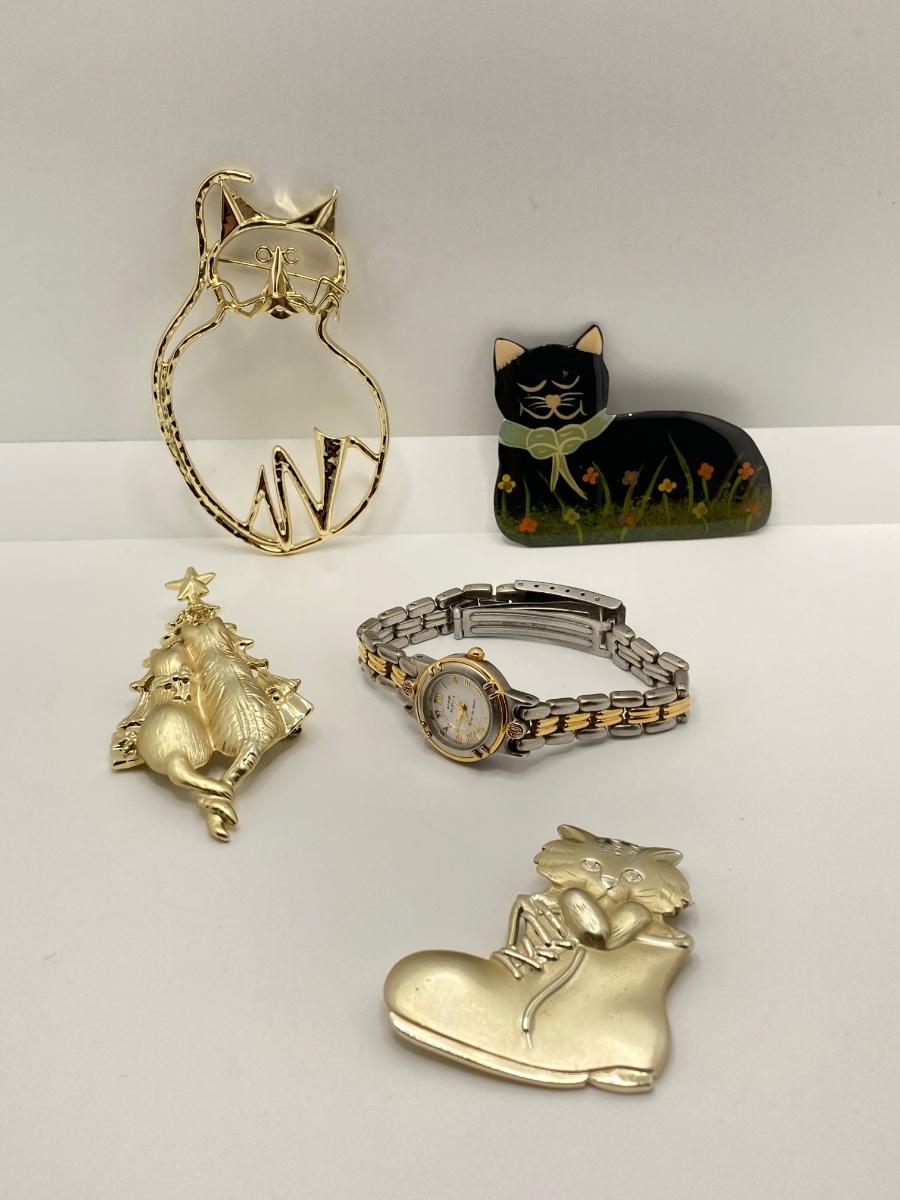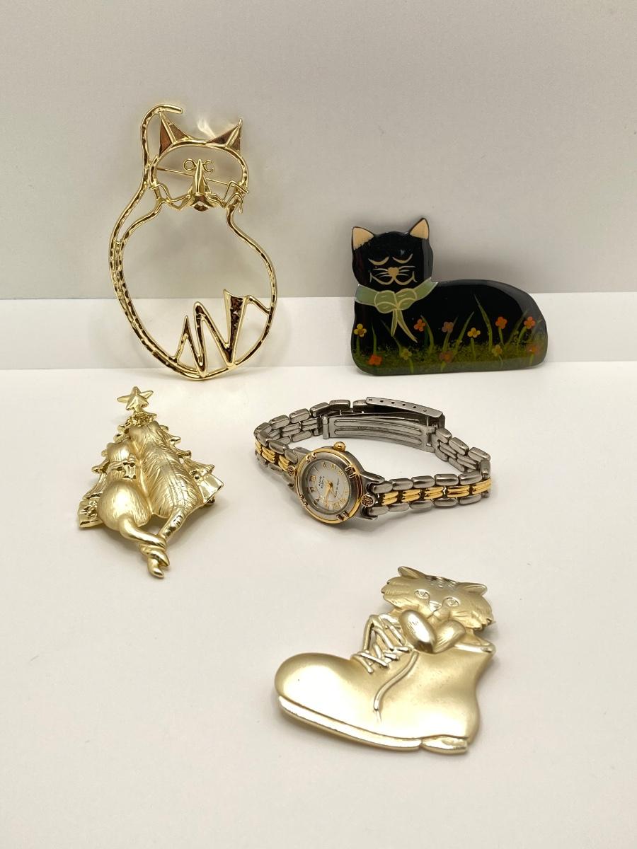 LOT 46: Anne Klein Watch with Collection of Cat Themed Pins / Brooches