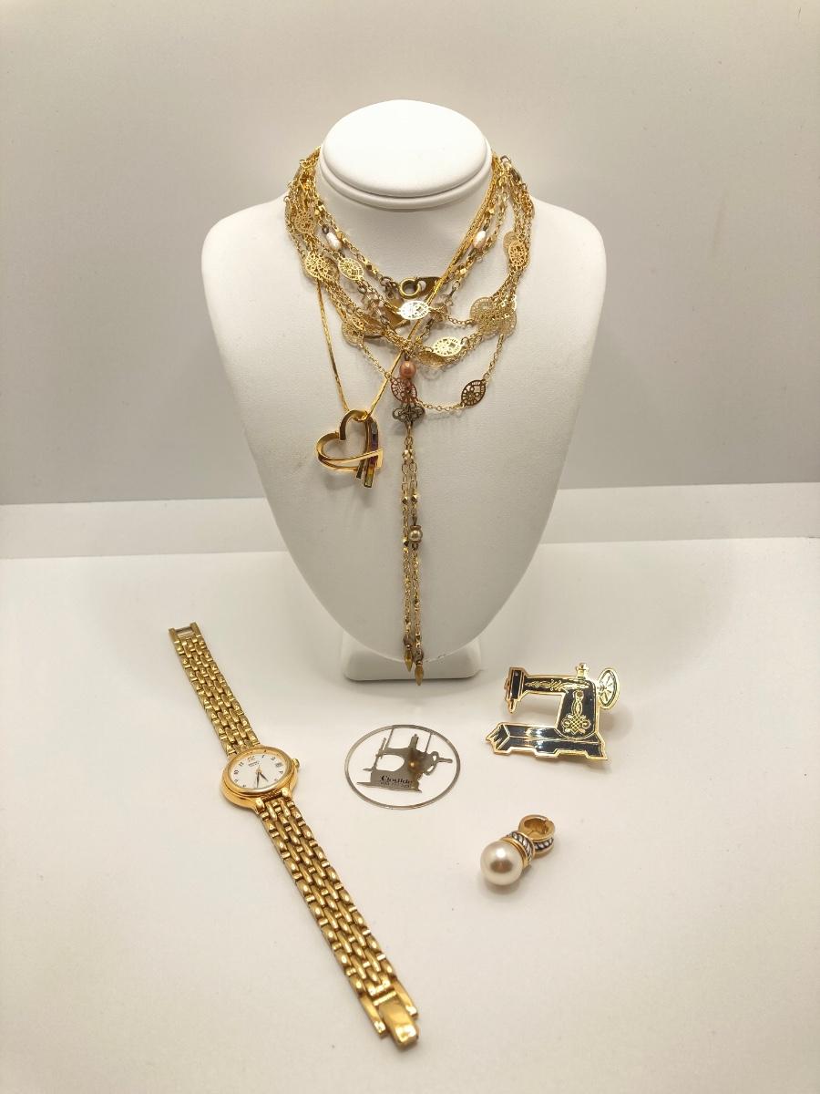 LOT 48: Seiko Watch with Collection of Gold Tone Jewelry and More