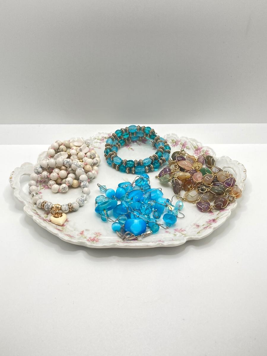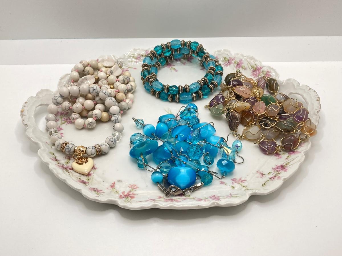 LOT 51: Gorgeous Dabby Reid Necklace, Wire Wrapped Necklace / Bracelet, Weiman Germany Tray and More