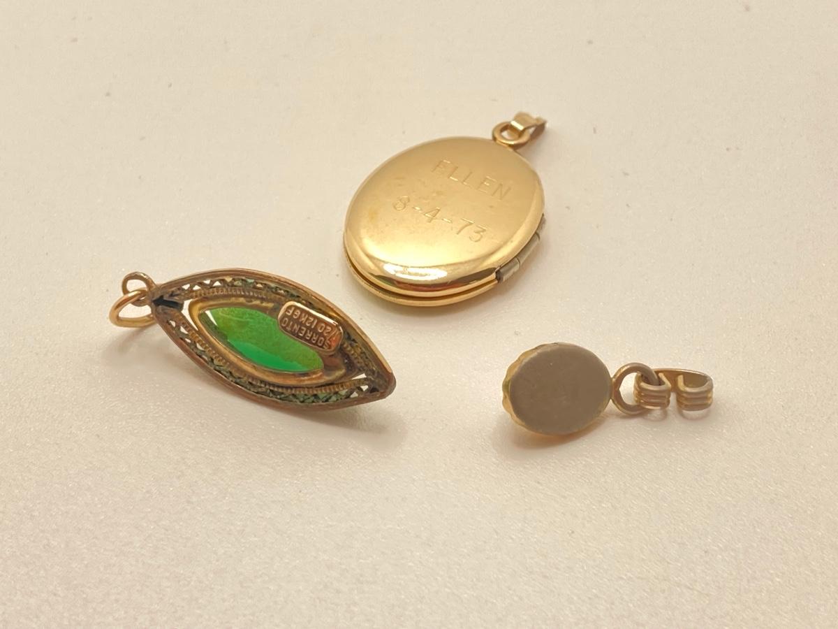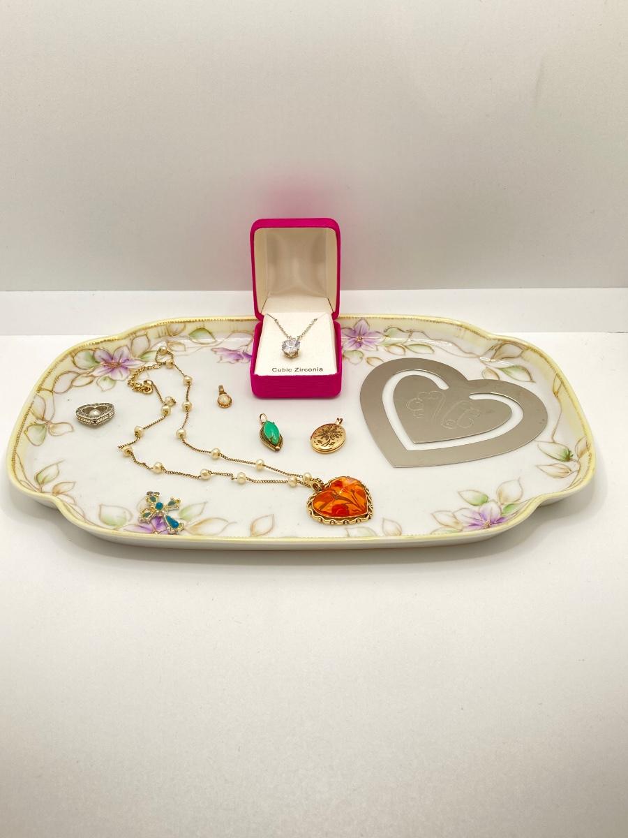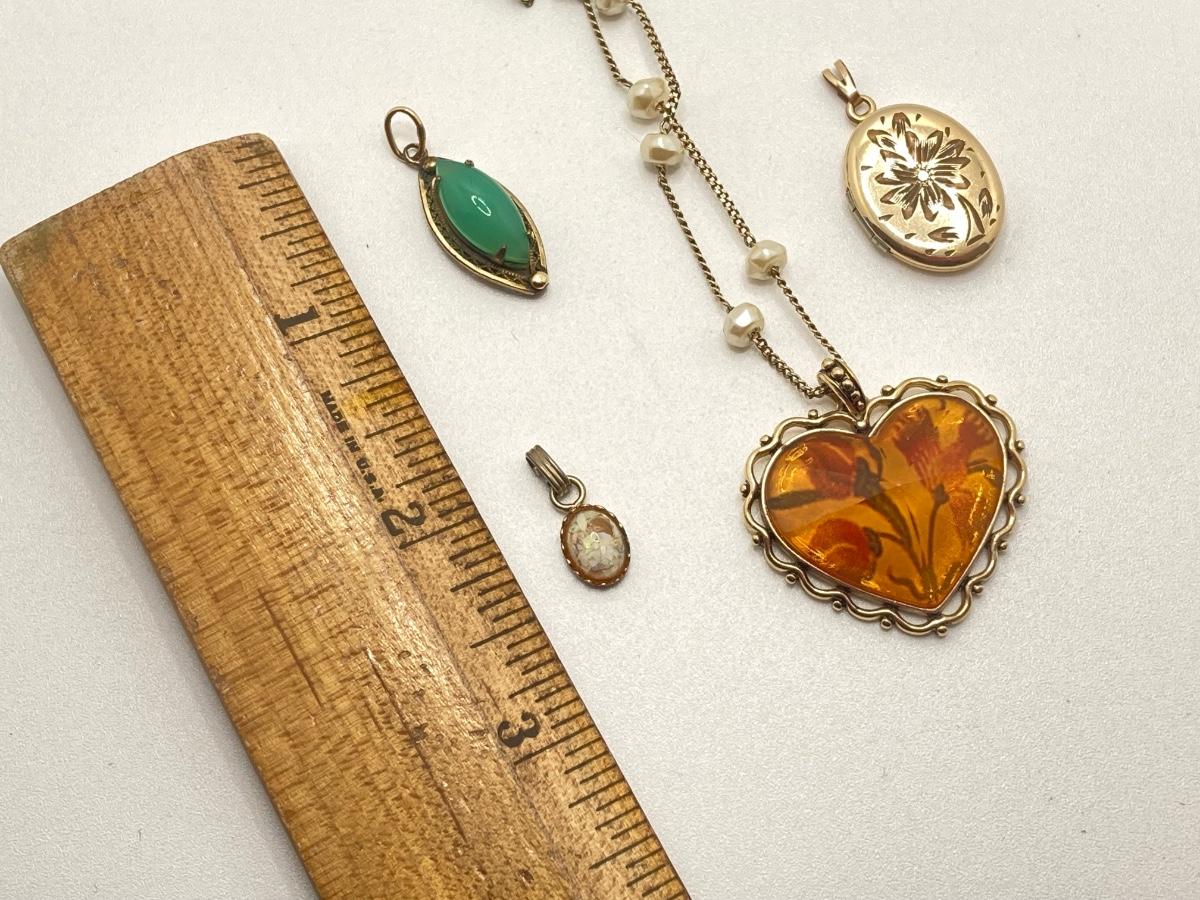 LOT 52: Vintage Jewelry Collection - Liz Claiborne Heart Pendant Necklace, Locket, Sorrento Gold Filled Pendant with Hand Painted Nippon Tray and More