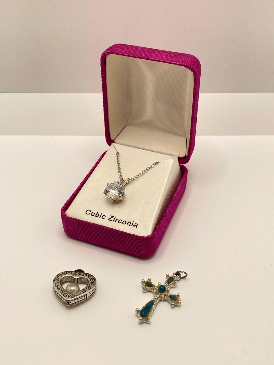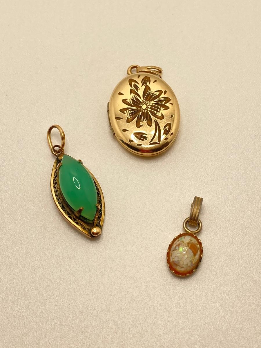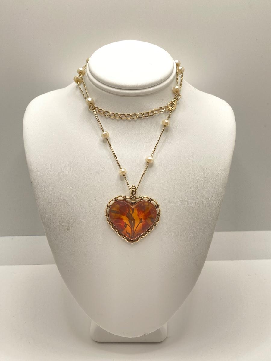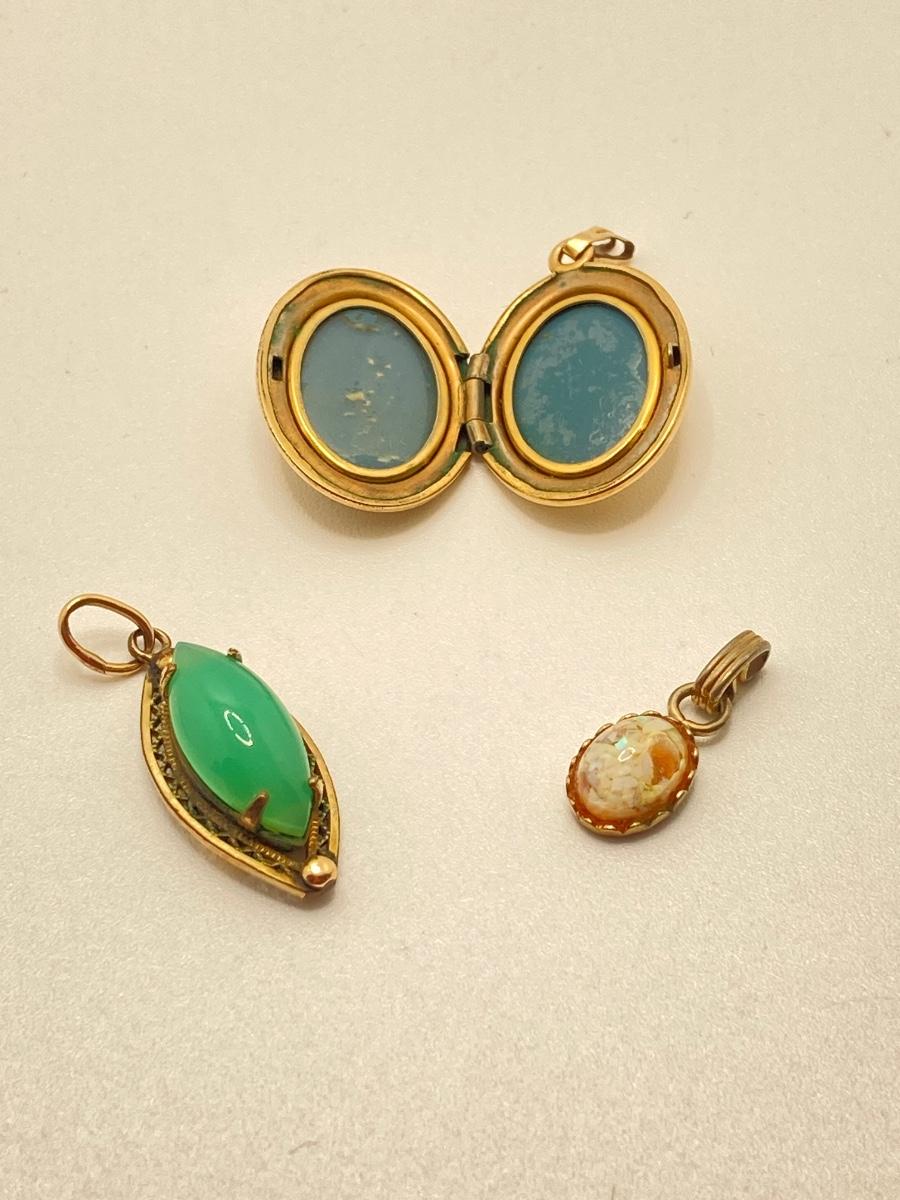 LOT 52: Vintage Jewelry Collection - Liz Claiborne Heart Pendant Necklace, Locket, Sorrento Gold Filled Pendant with Hand Painted Nippon Tray and More