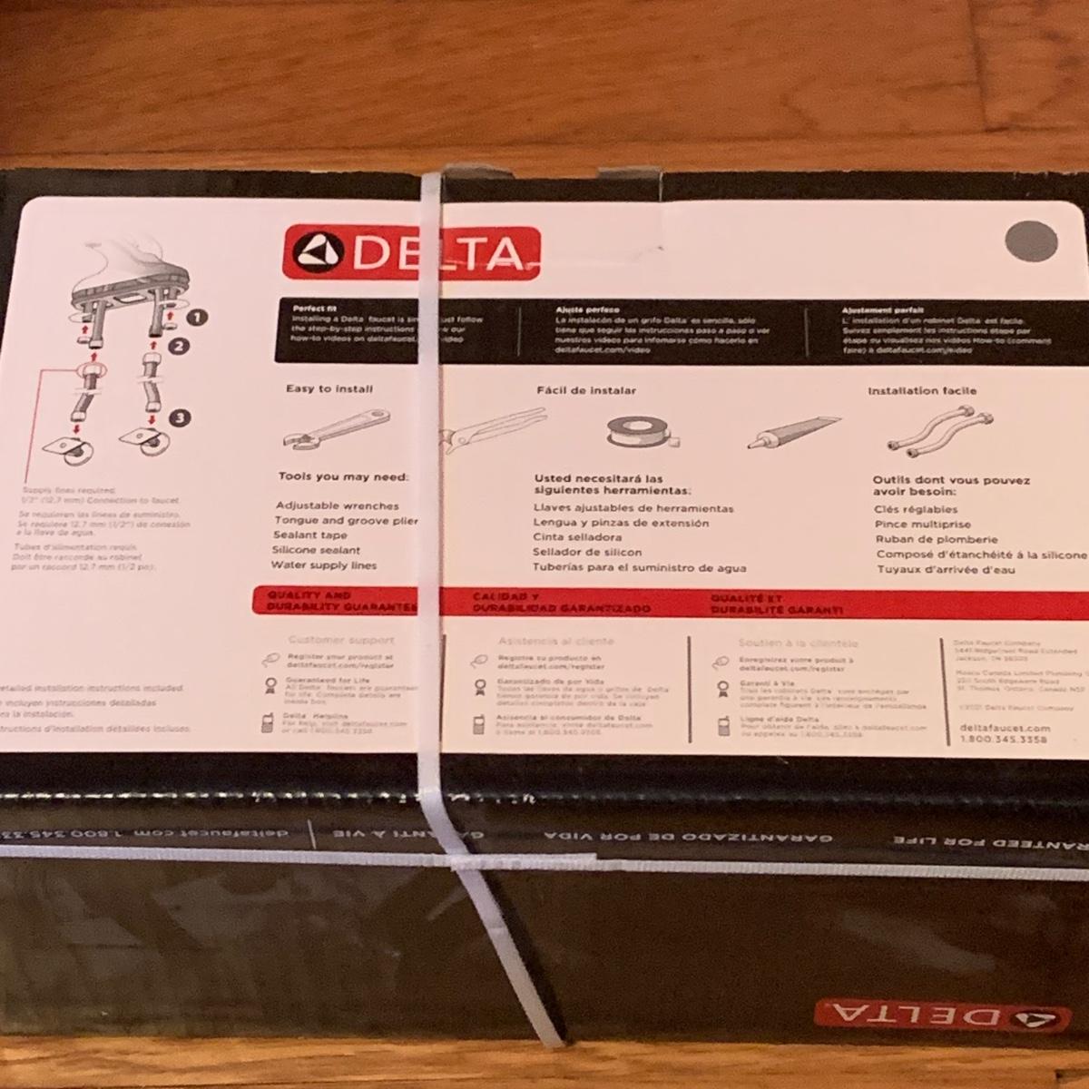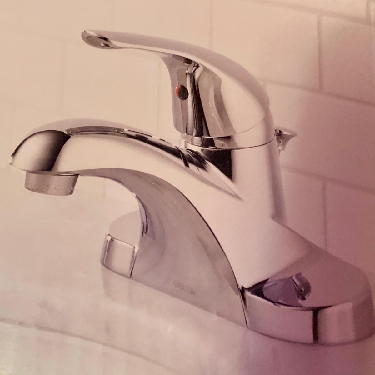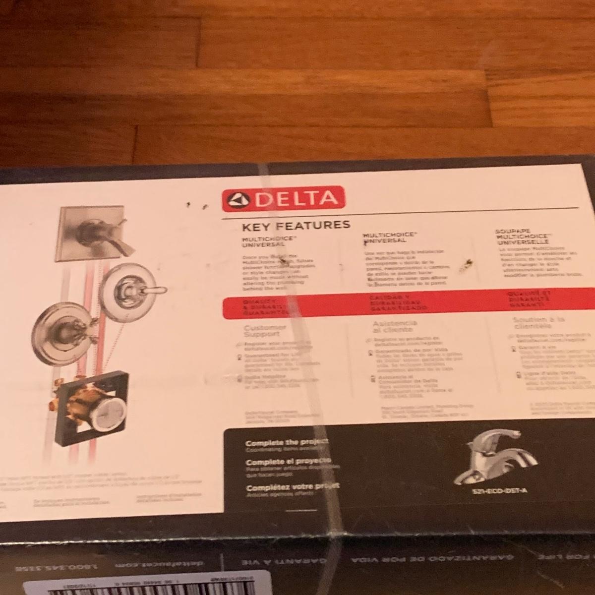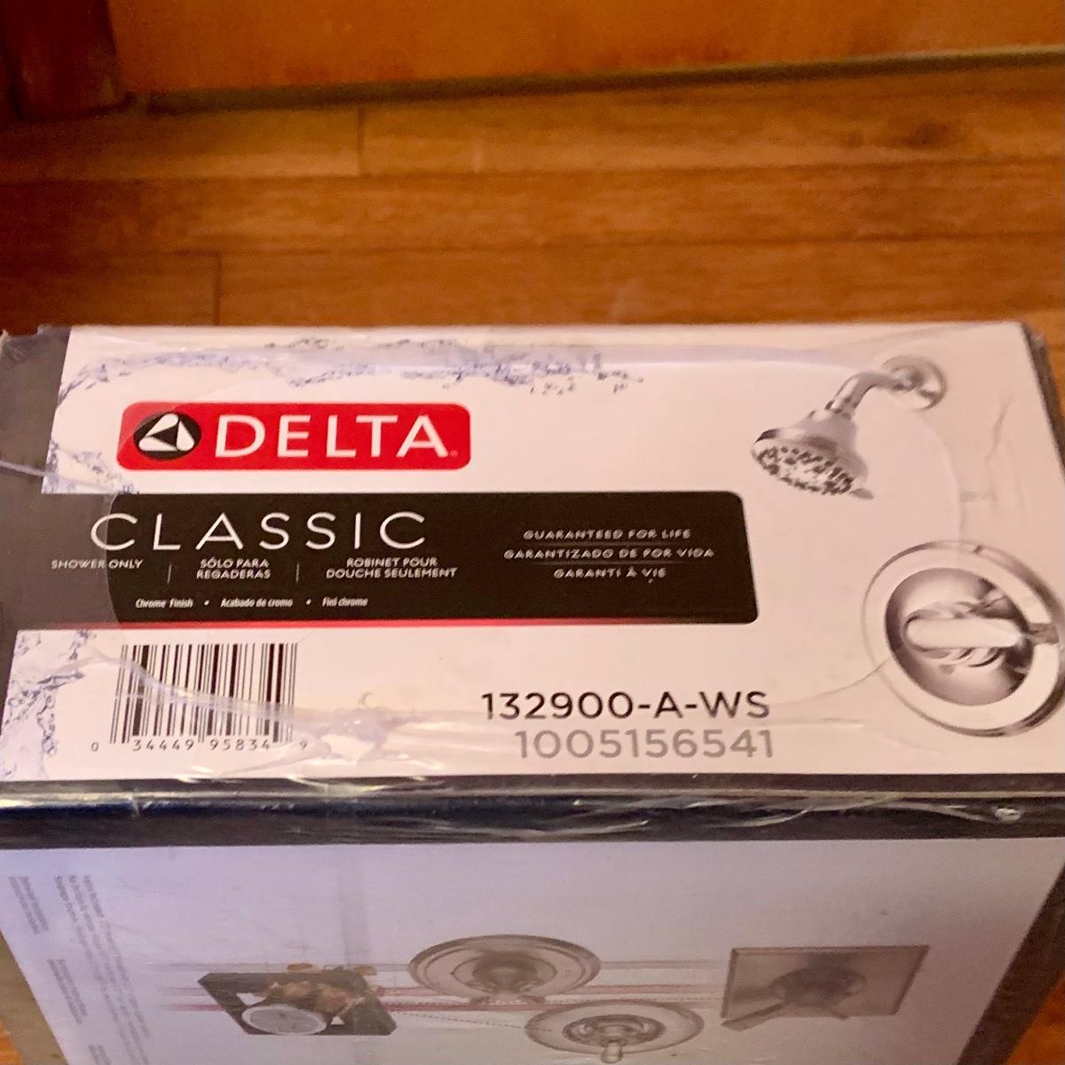 LOT57:: Delta Foundations Single Handle Bathroom Faucet Model B510LF-PPU-ECO In Unopened Box adn Delta Classic Shower Head In Opened Box