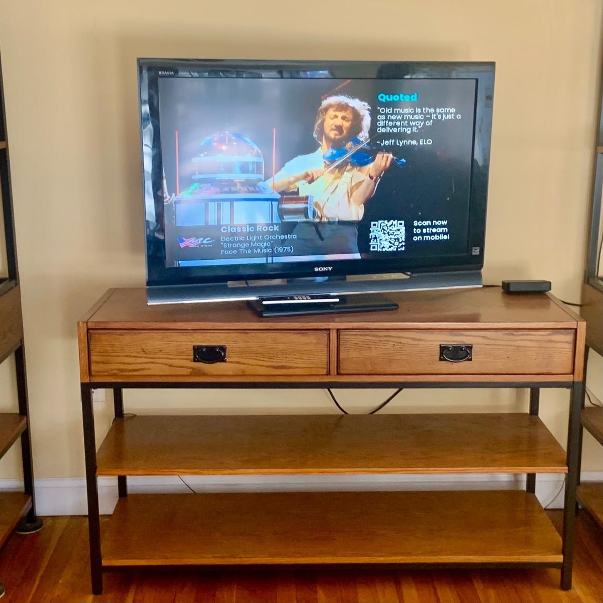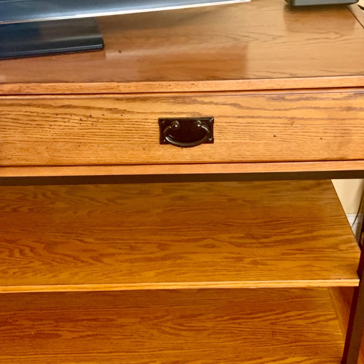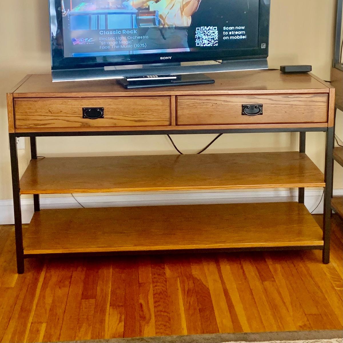 LOT:65: Modern Craftsman TV Stand with Drawers and Shelves, and a Sony Bravia TV Model KDL-40S4100