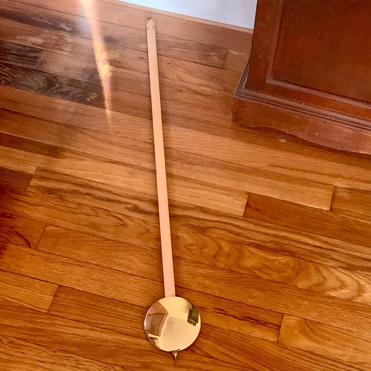 The pendulum is not attached and there are no weights included. It is 16 x 10 x 73"