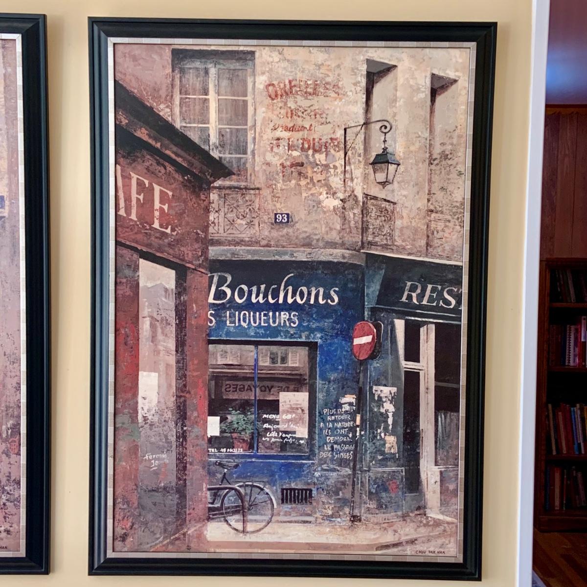 LOT:68: Set of 2 Large Framed Wall Art of Parisian Street Scenes by Chiu Tak Hak