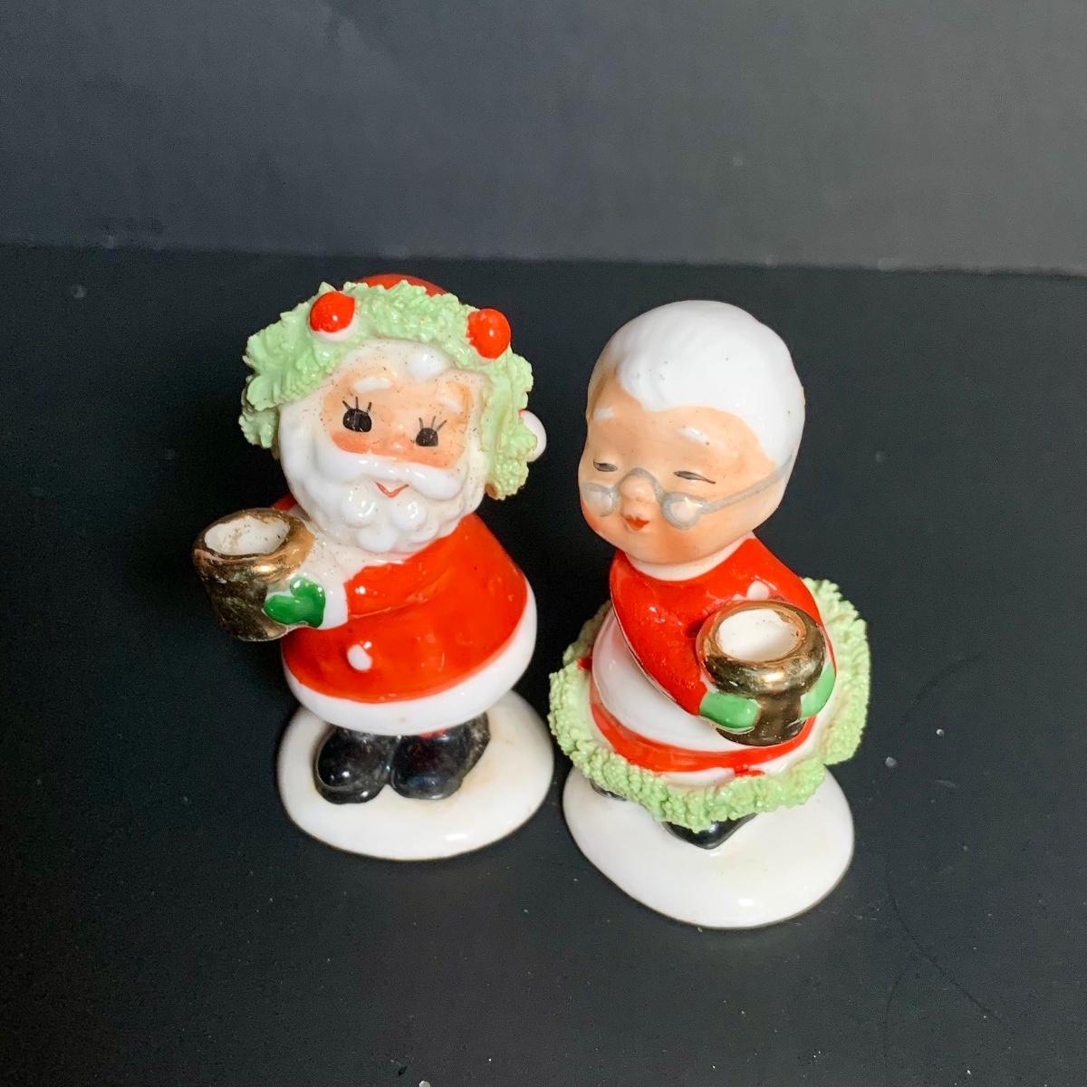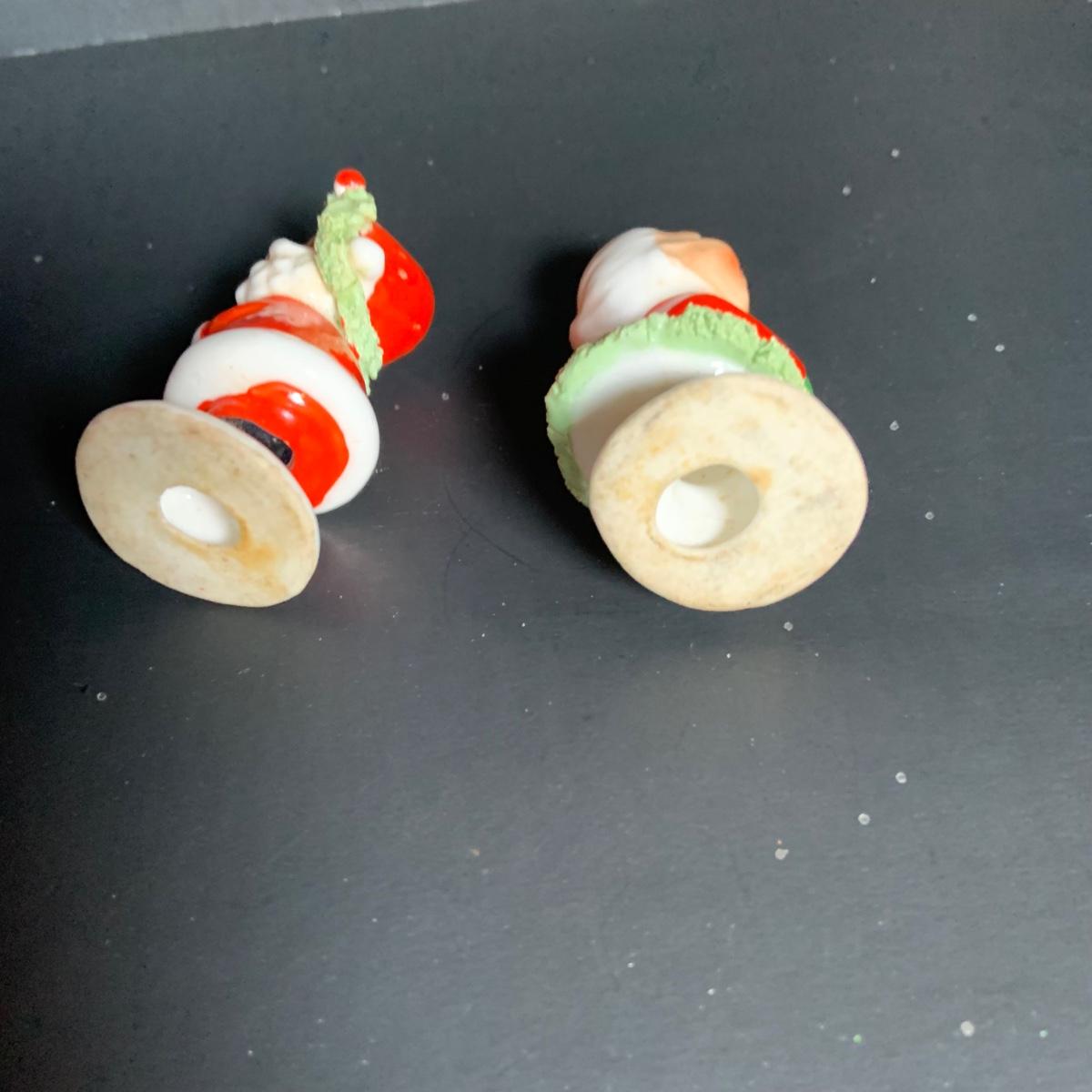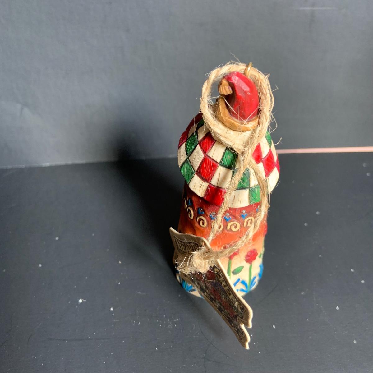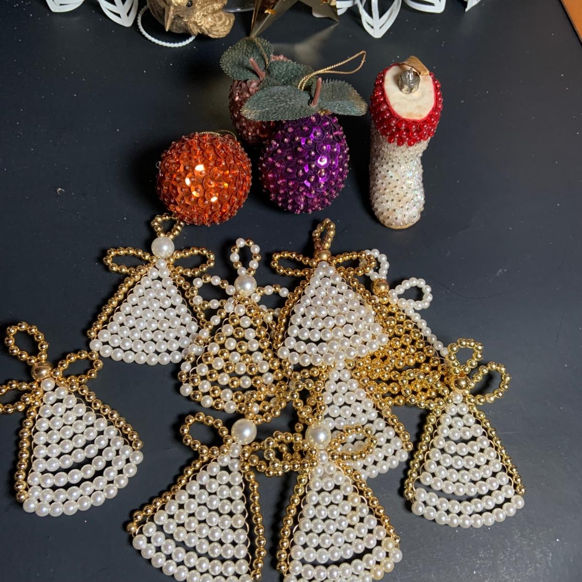 LOT:71: Cloisonne Snowman Sleigh Bells, Jim Shore Santa Ornament, Mid Century Push Pin Sequin Fruit Ornaments & Vintage Christmas Decorations