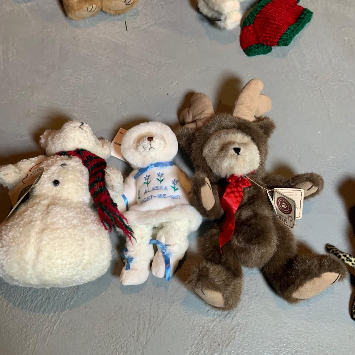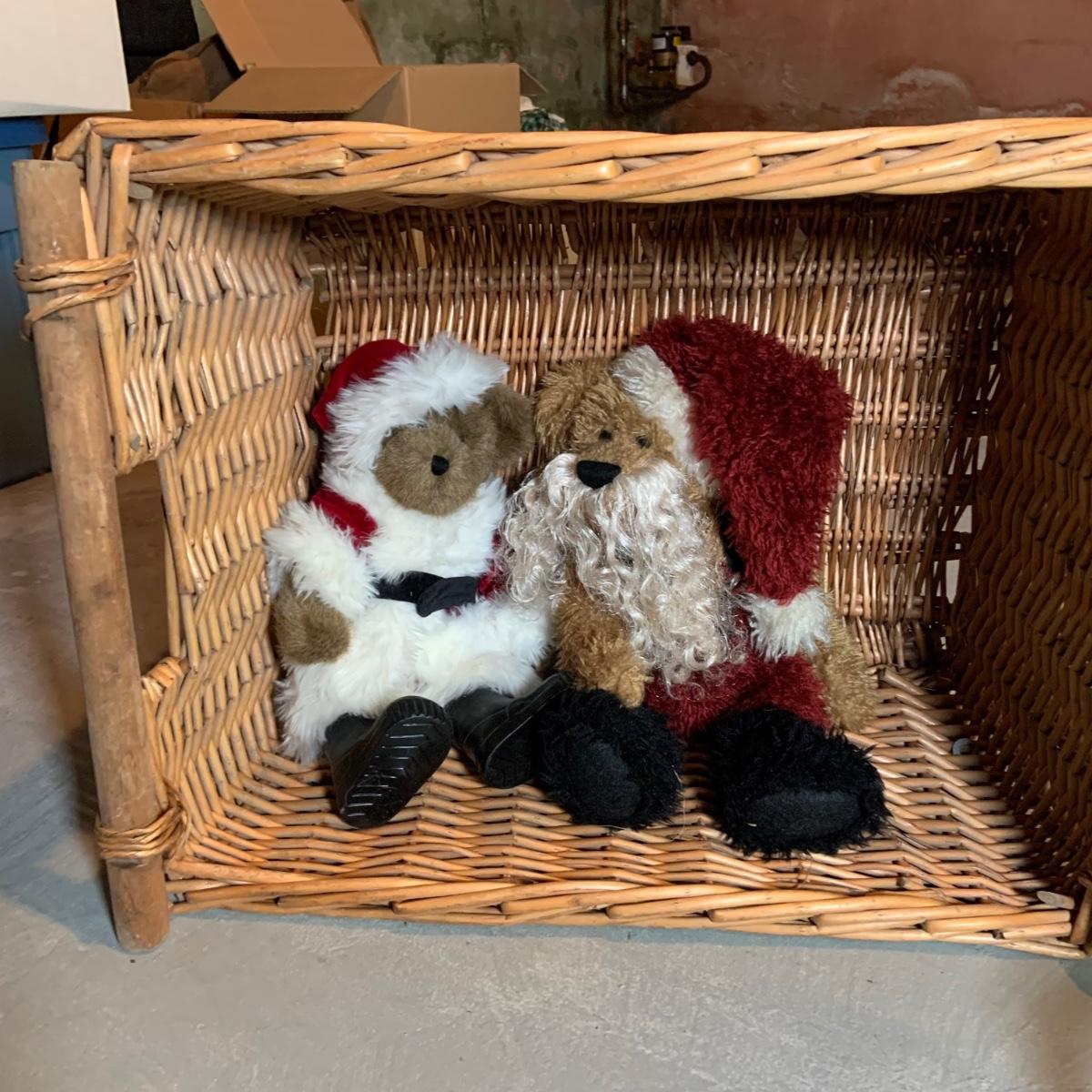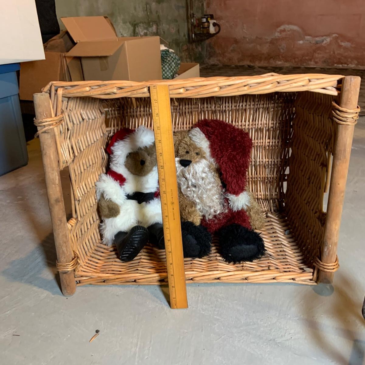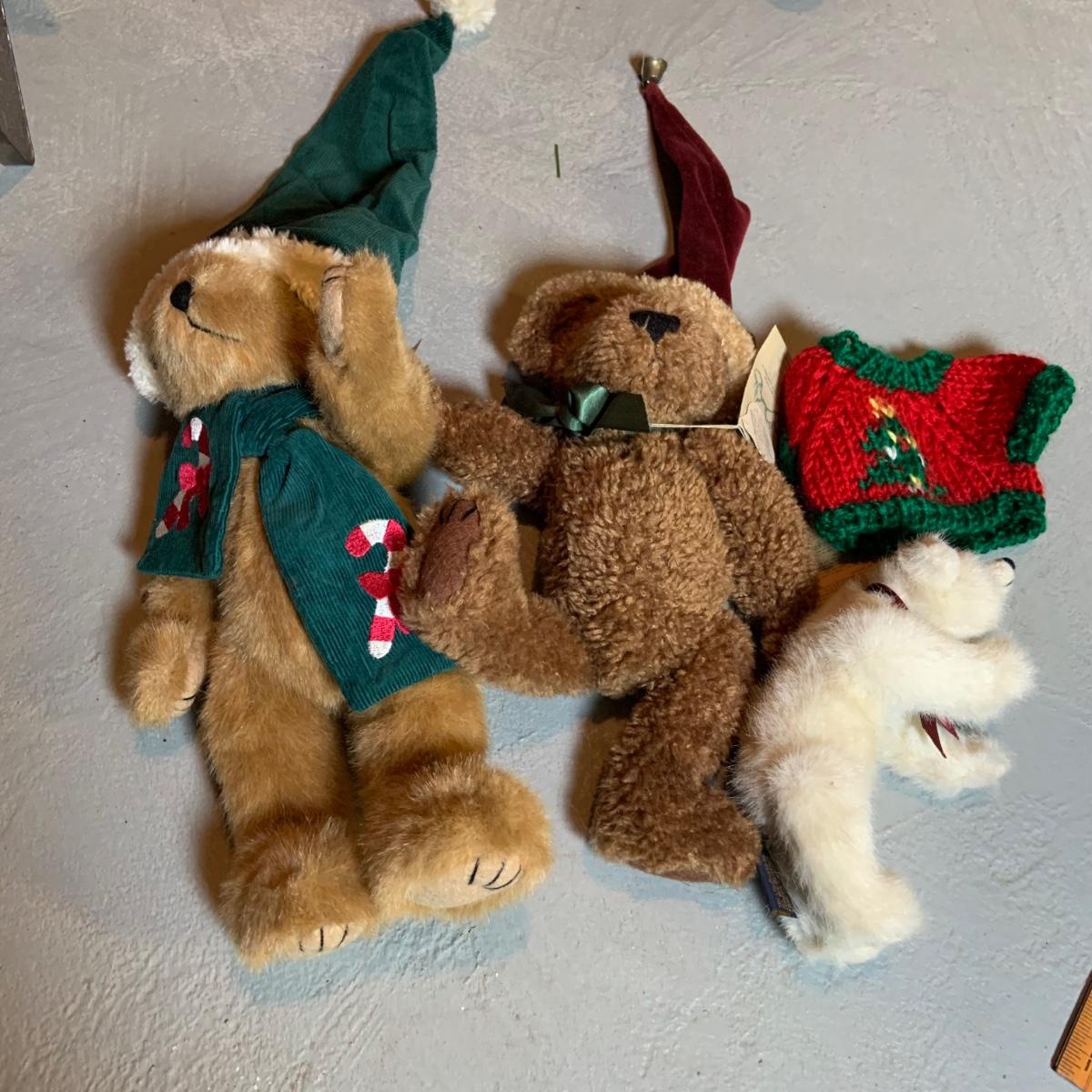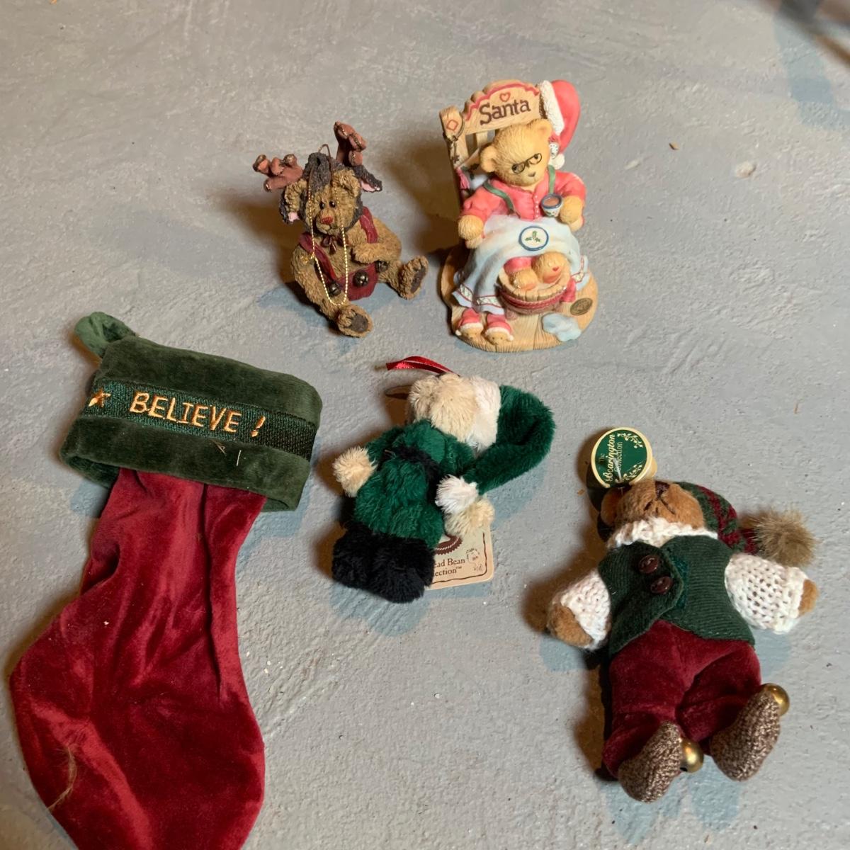 LOT:73: Basket Full of Holiday Boyds Bears, Bear-Sized Sled and More