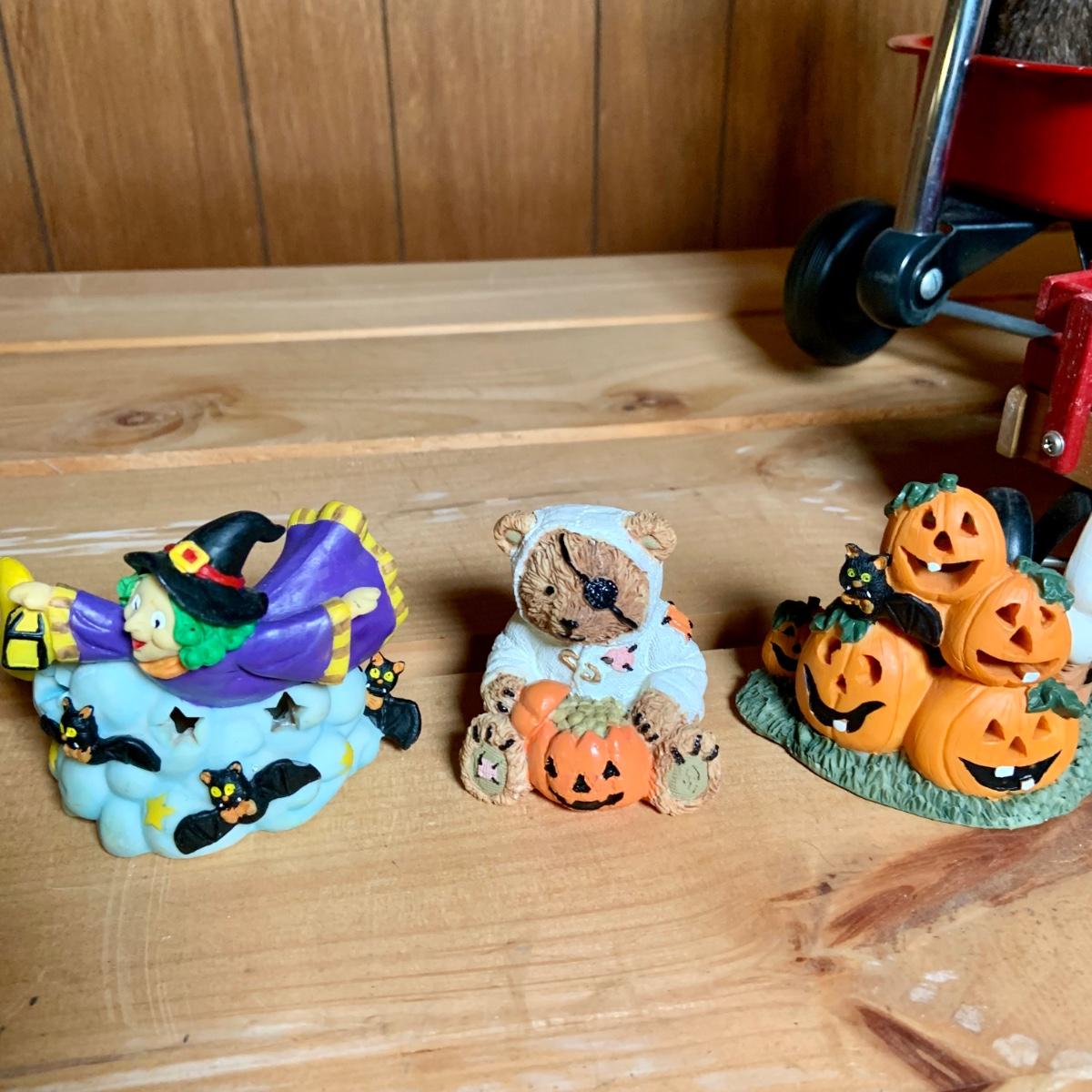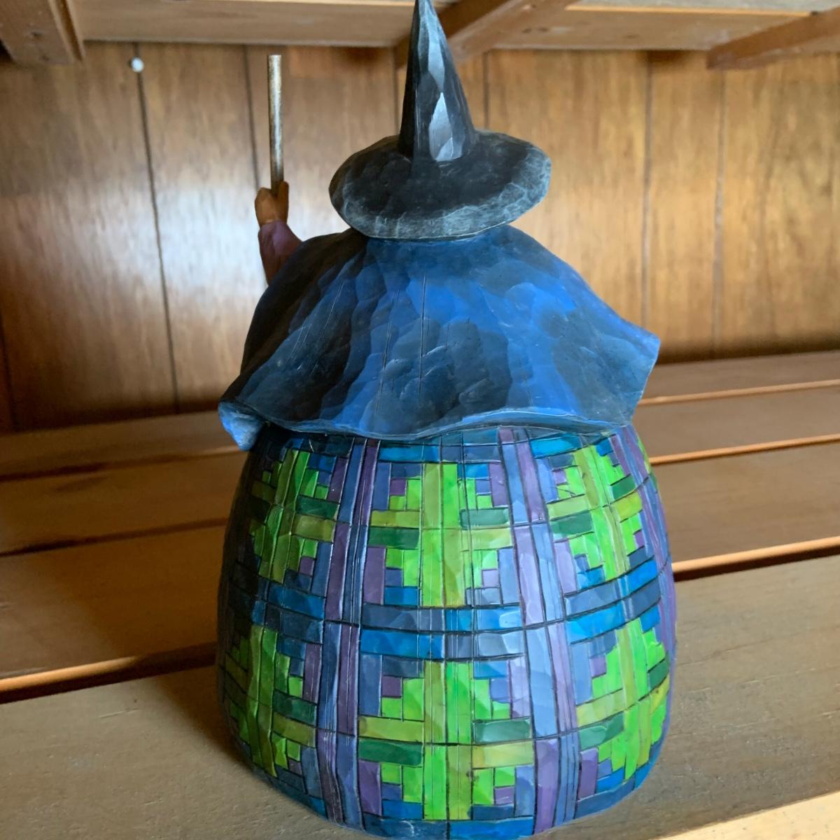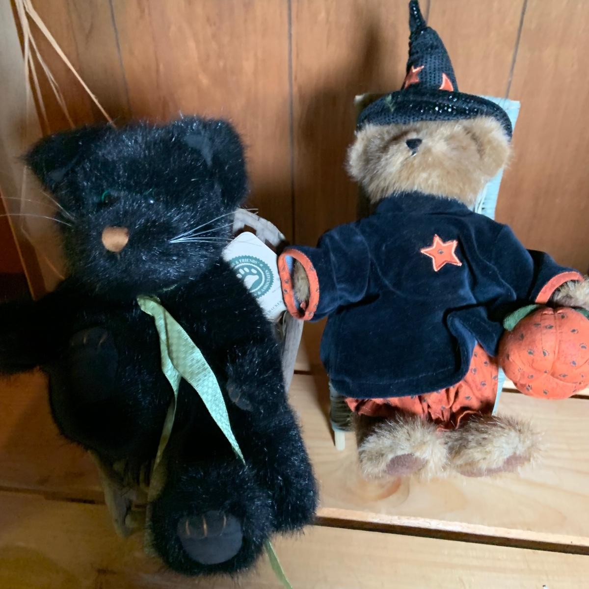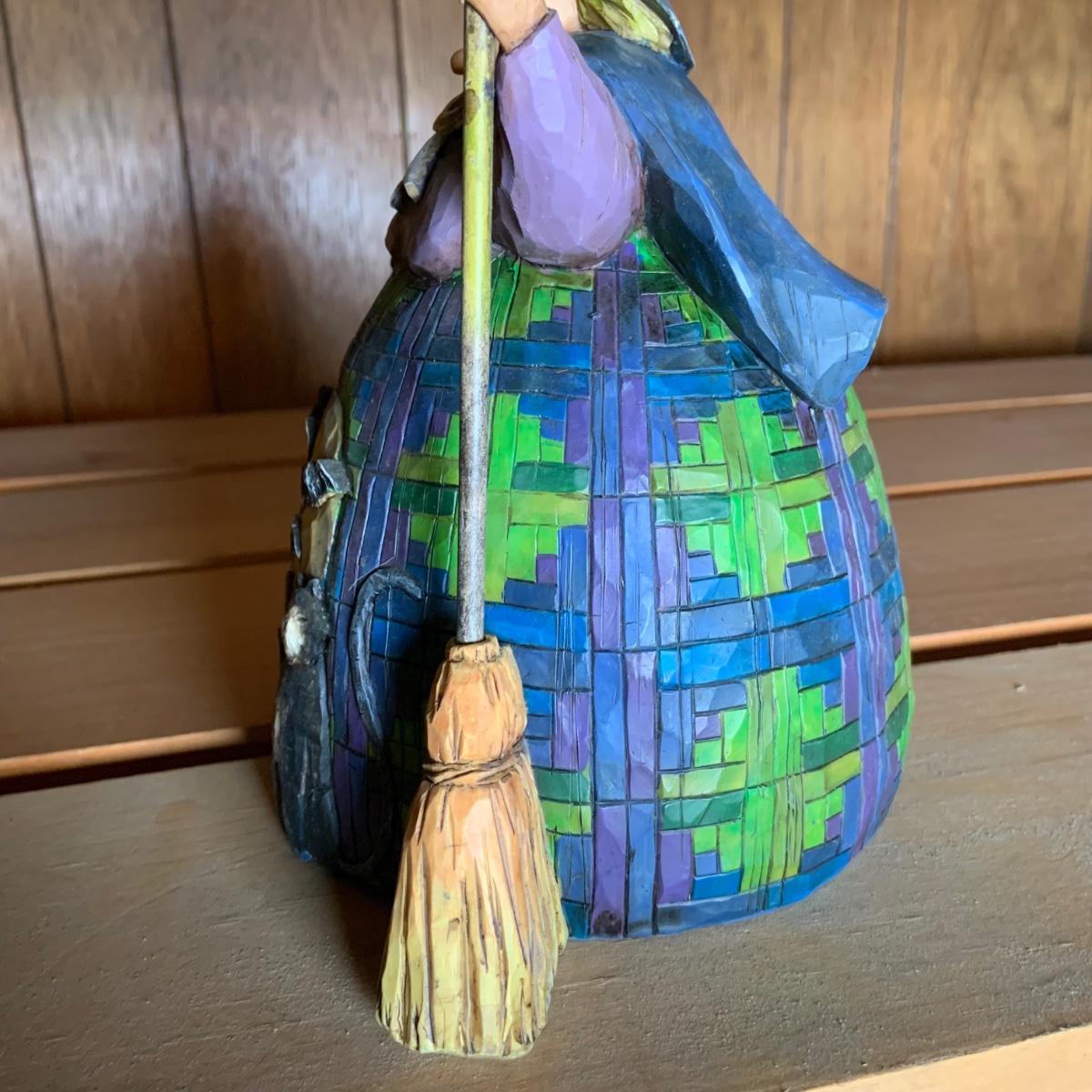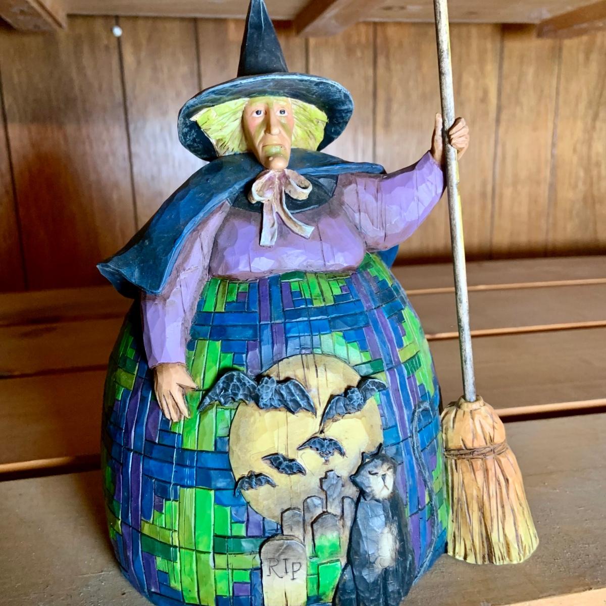 LOT:74: Jim Shore Heartwood Creek "Let the Magic Begin" Witch and Other Halloween Decor Including Boyds Bears, 2-Sided Jack-o-Lantern Sign, Toy Wagons and More