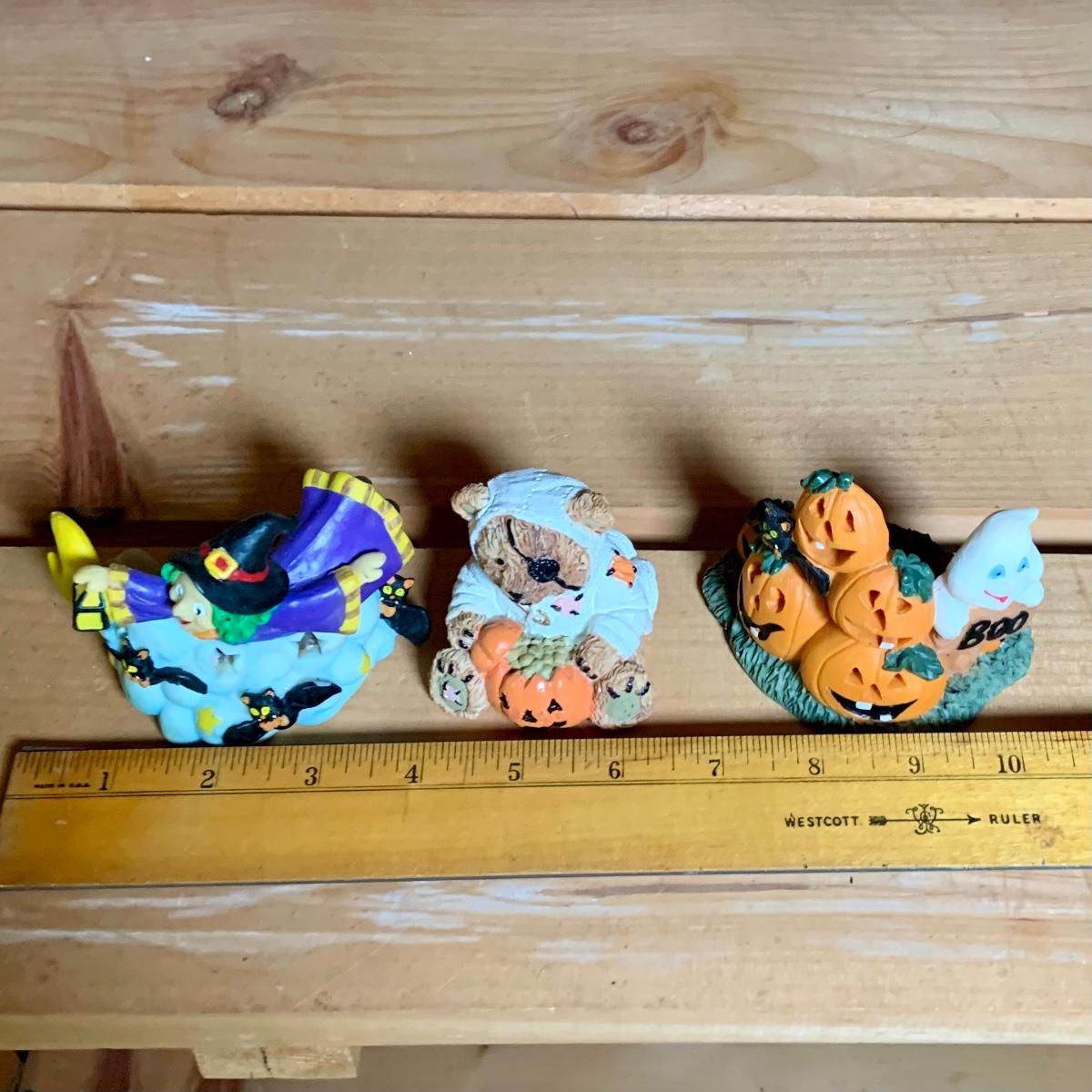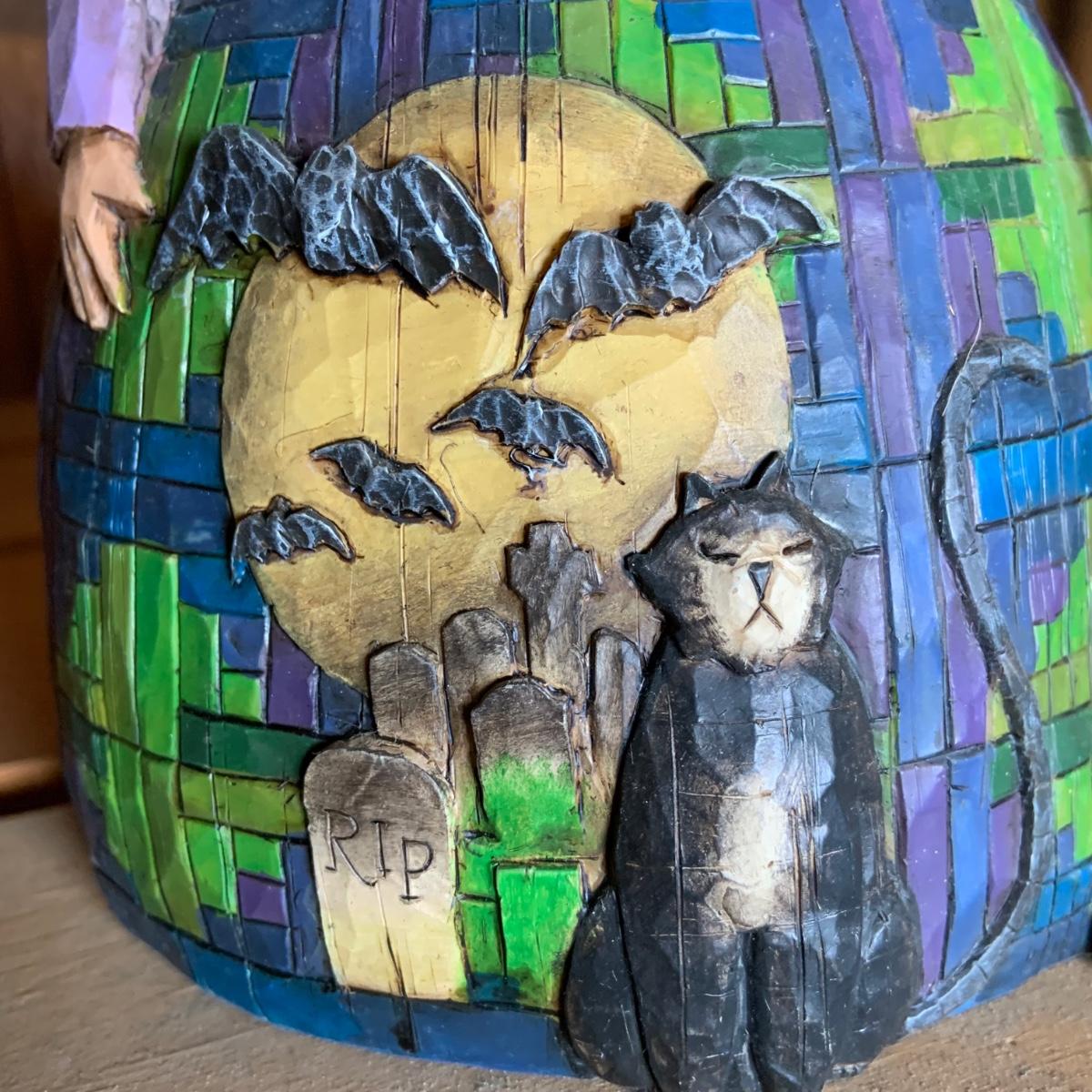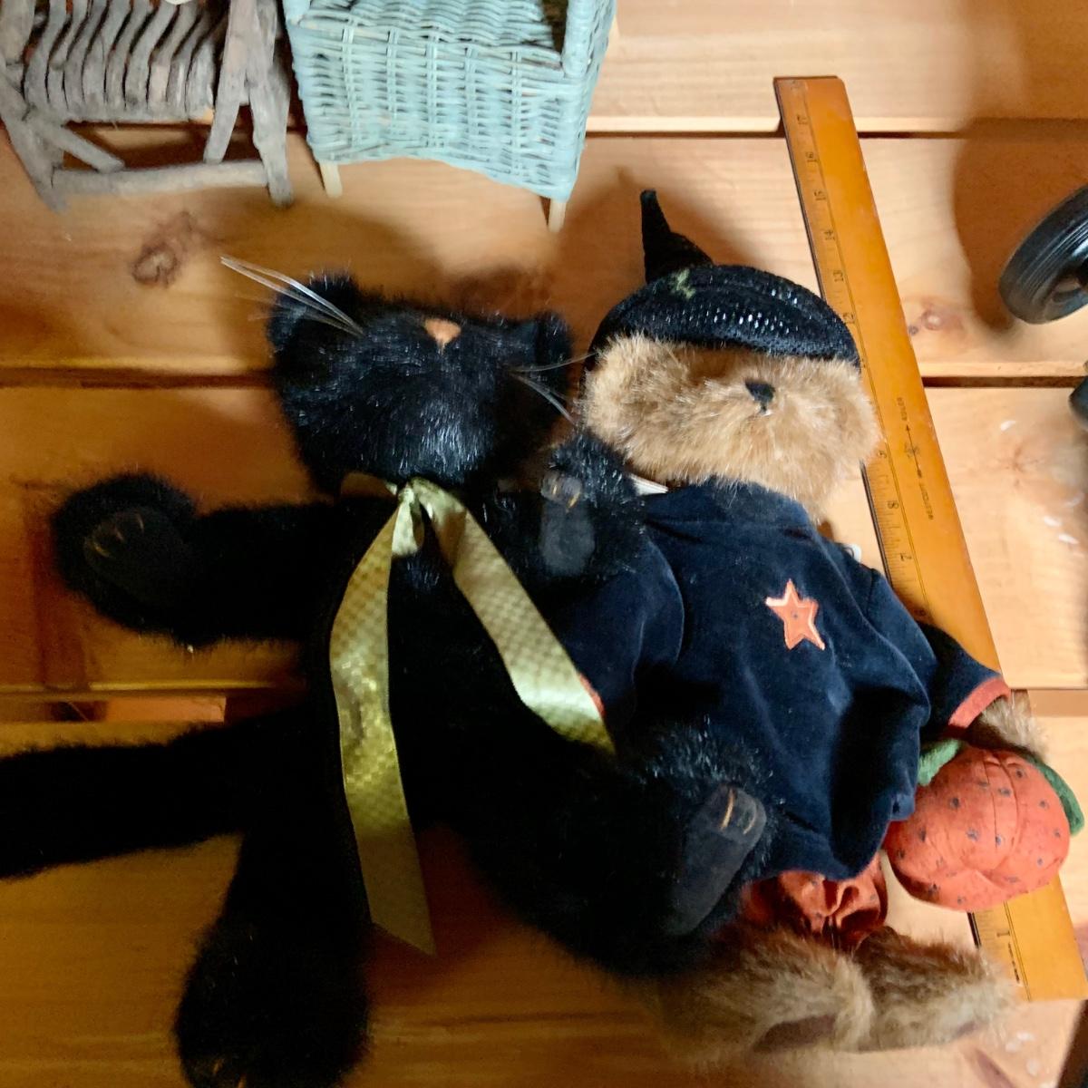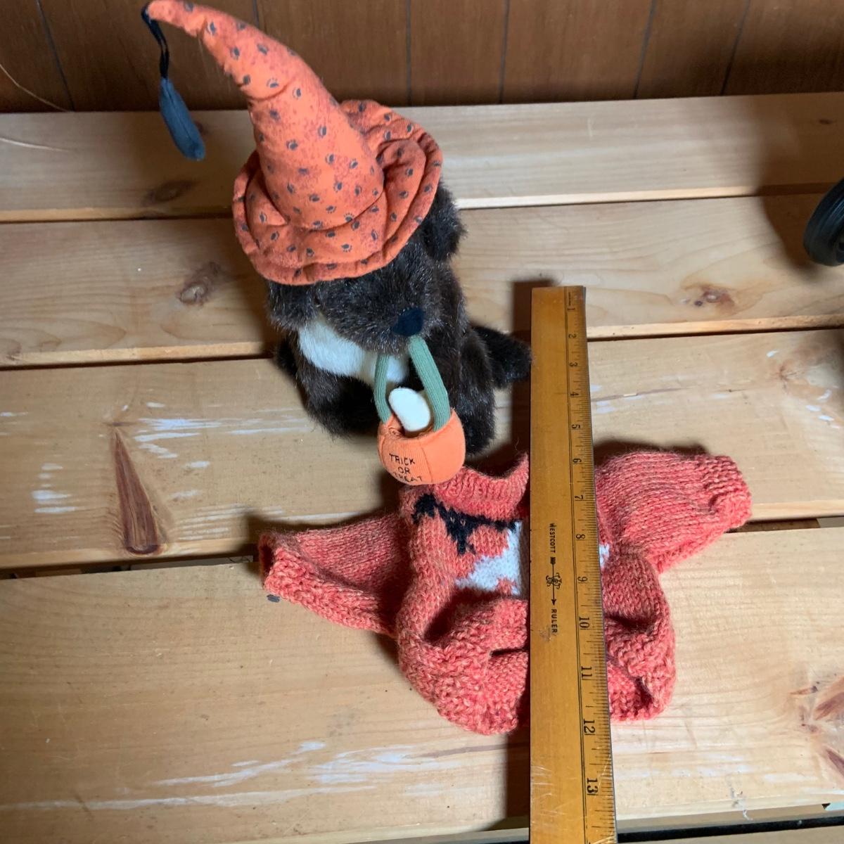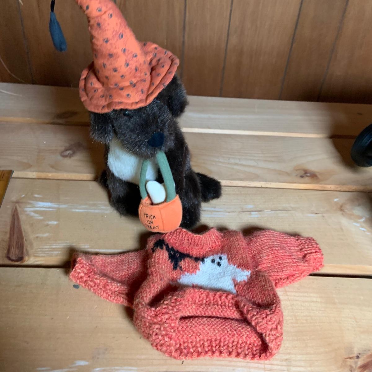 LOT:74: Jim Shore Heartwood Creek "Let the Magic Begin" Witch and Other Halloween Decor Including Boyds Bears, 2-Sided Jack-o-Lantern Sign, Toy Wagons and More