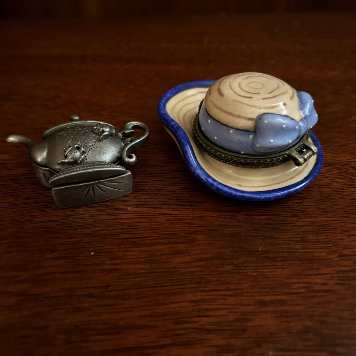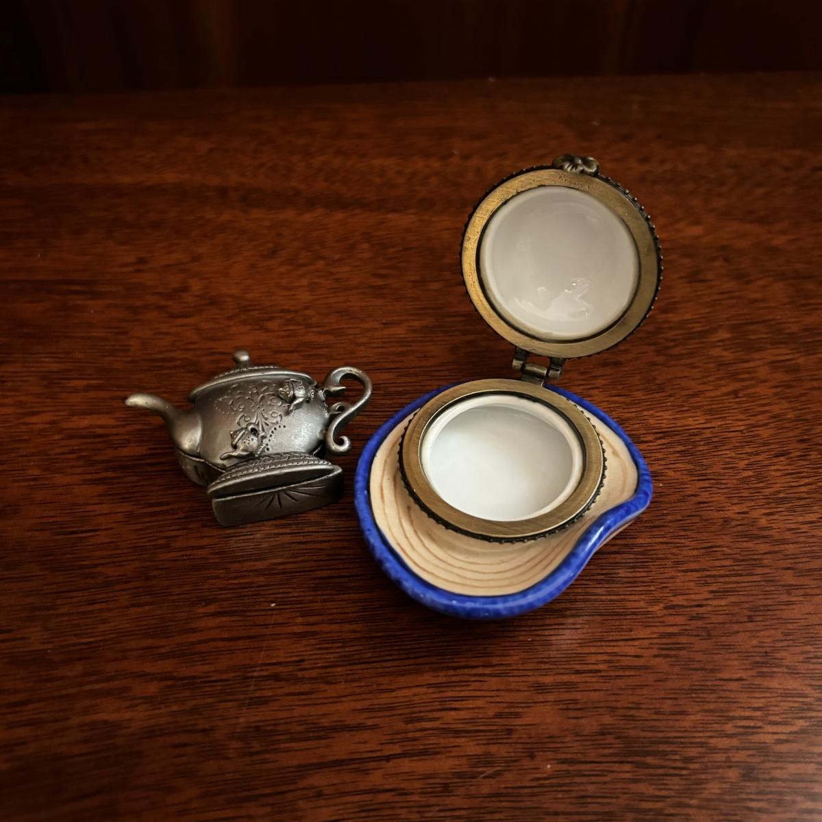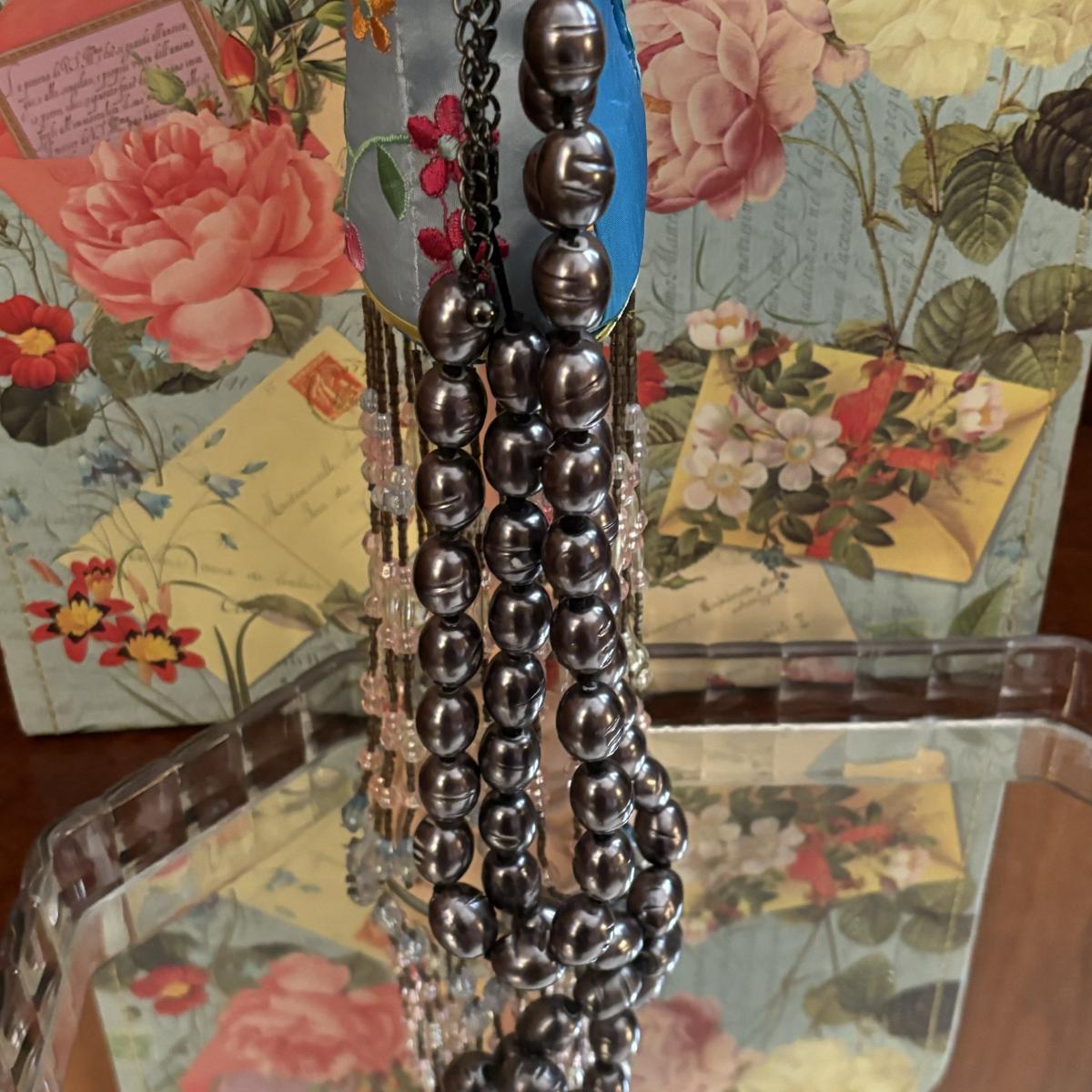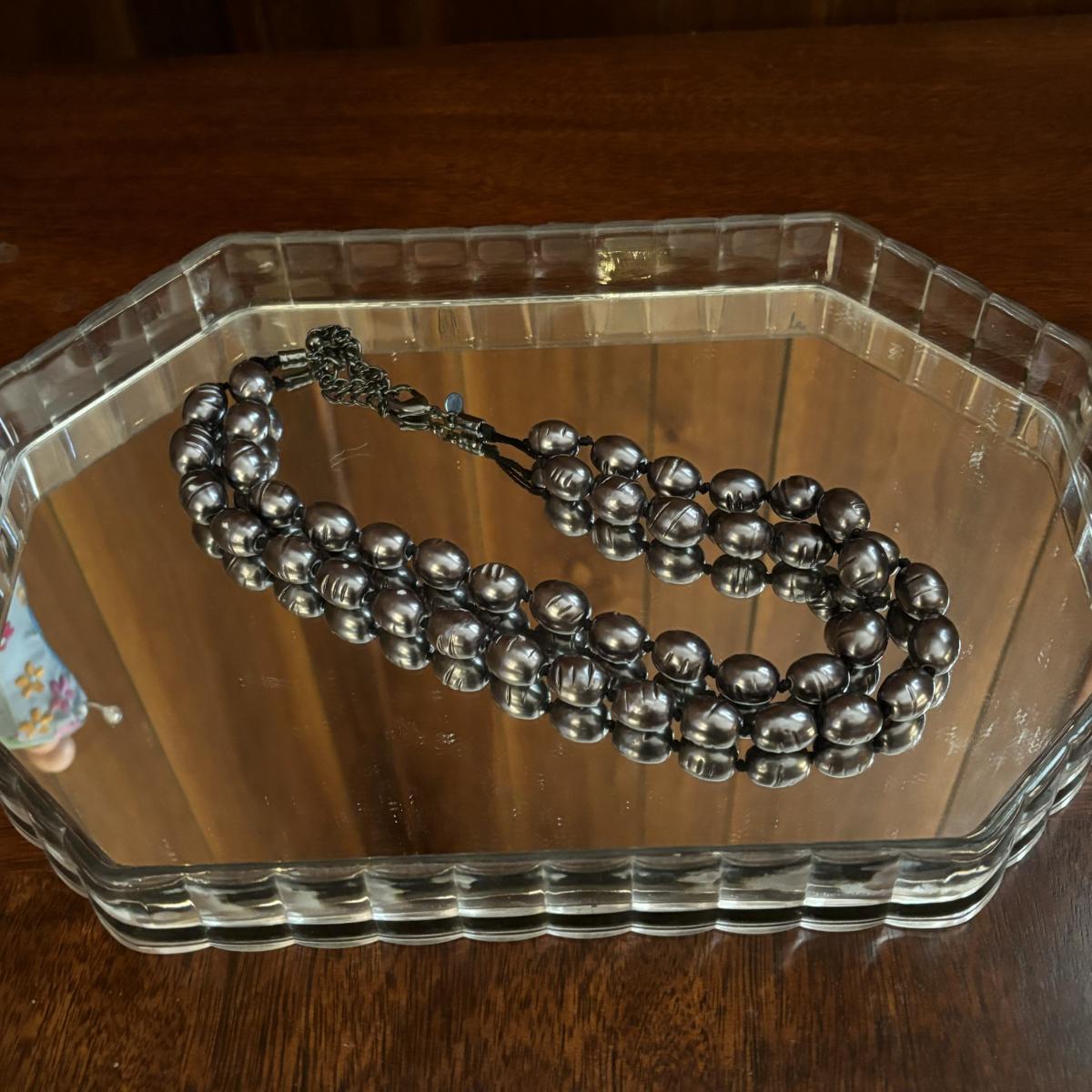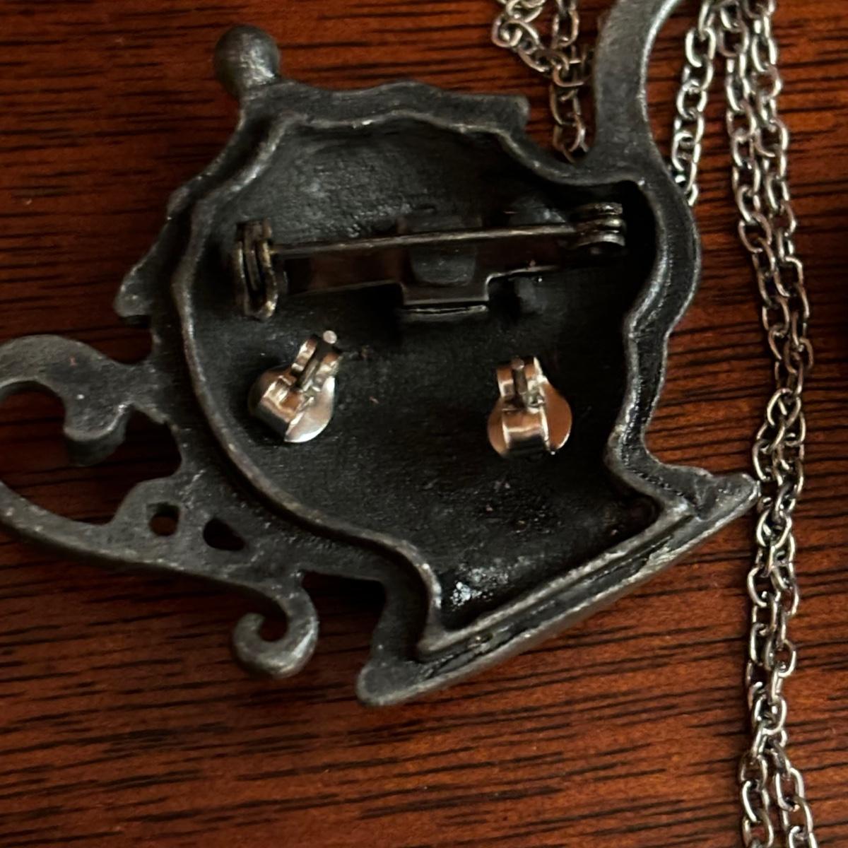 LOT 82: Ladies Dresser Collection: Donna Karan Perfume, Chico's Beaded Necklace, Trinket Box, Torino Teapot Pewter Brooch Pin Necklace Earring Jewelry Trinket Box Set Mirrored Tray & More