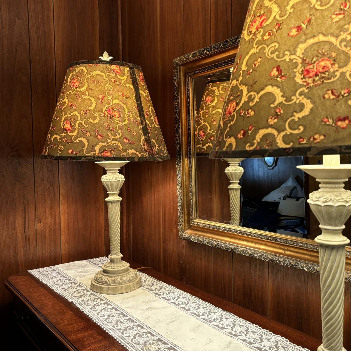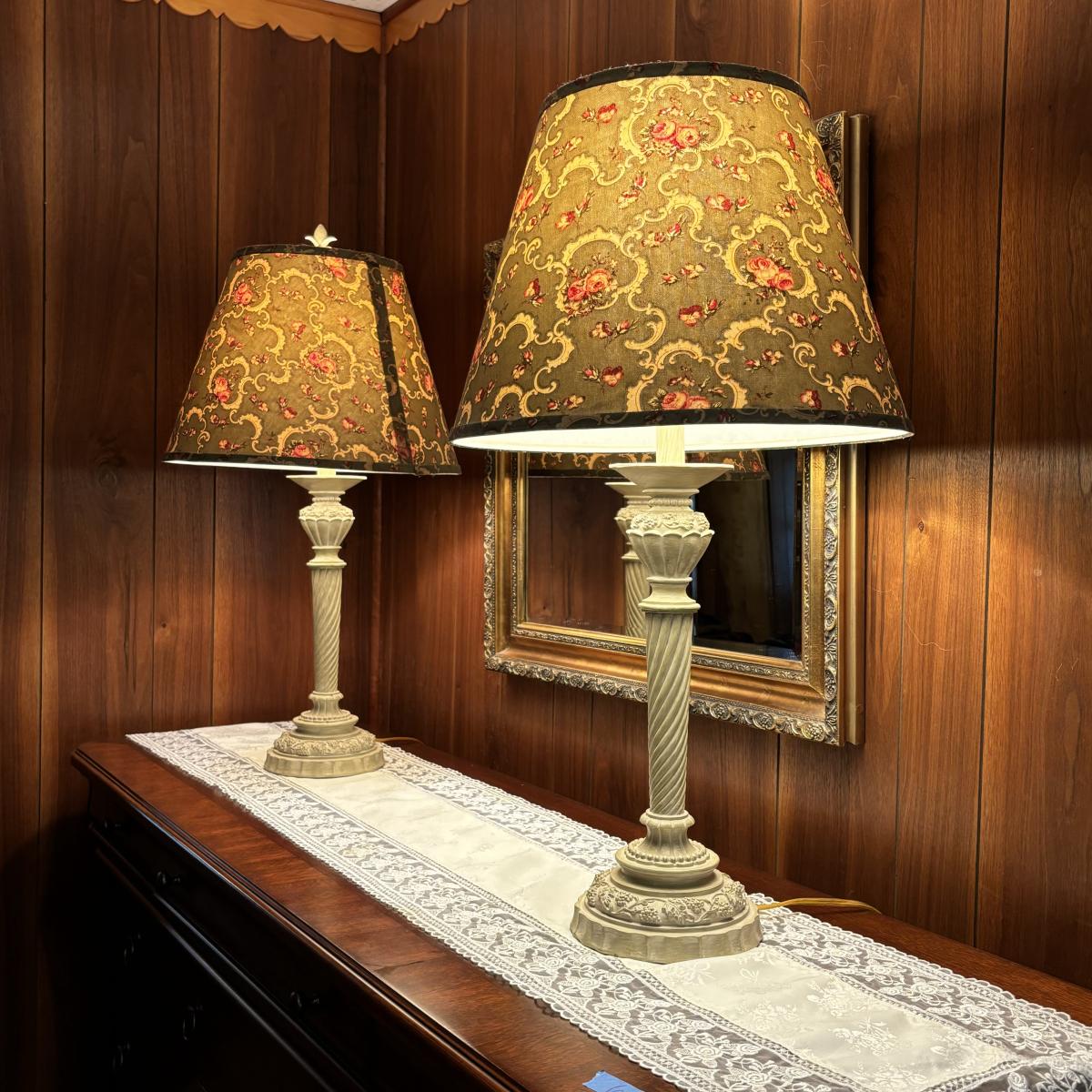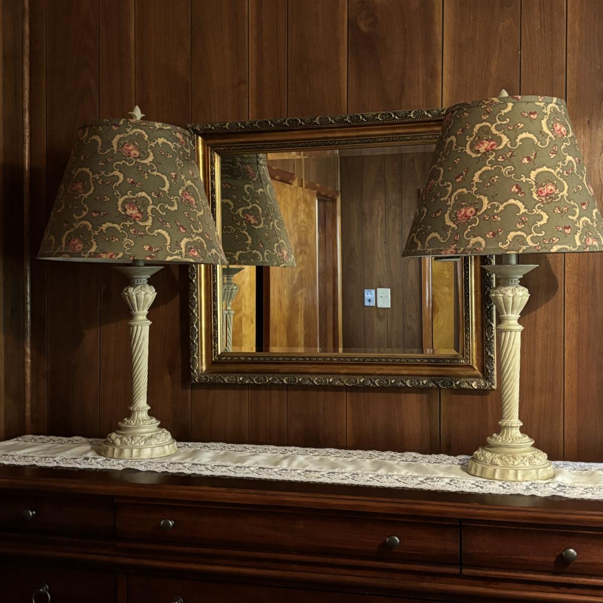 LOT 84: Beveled Mirror and French Country Style Lamps