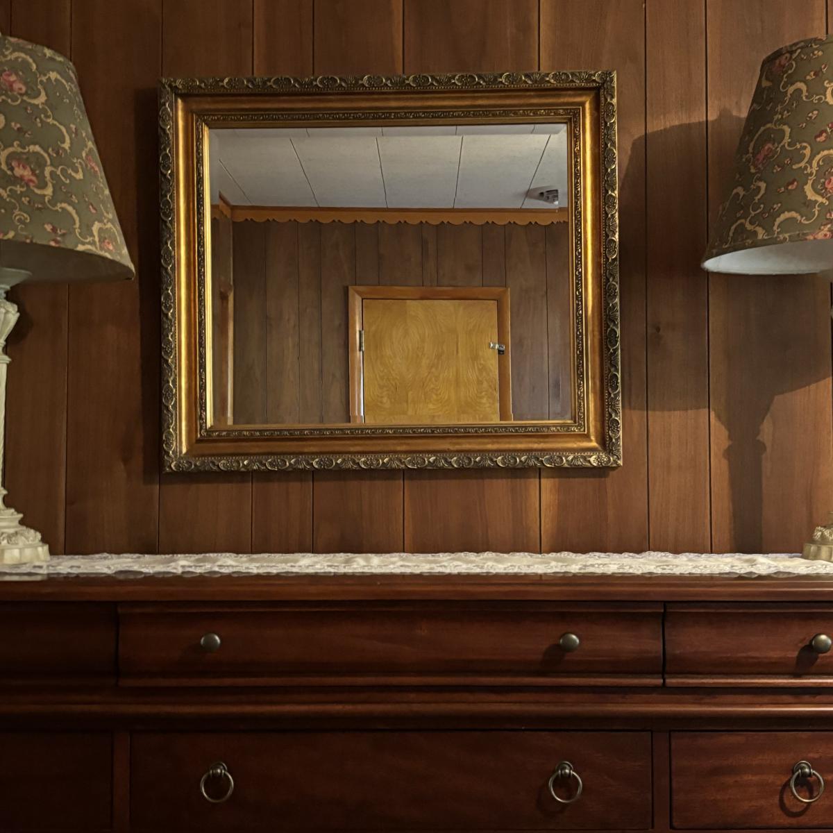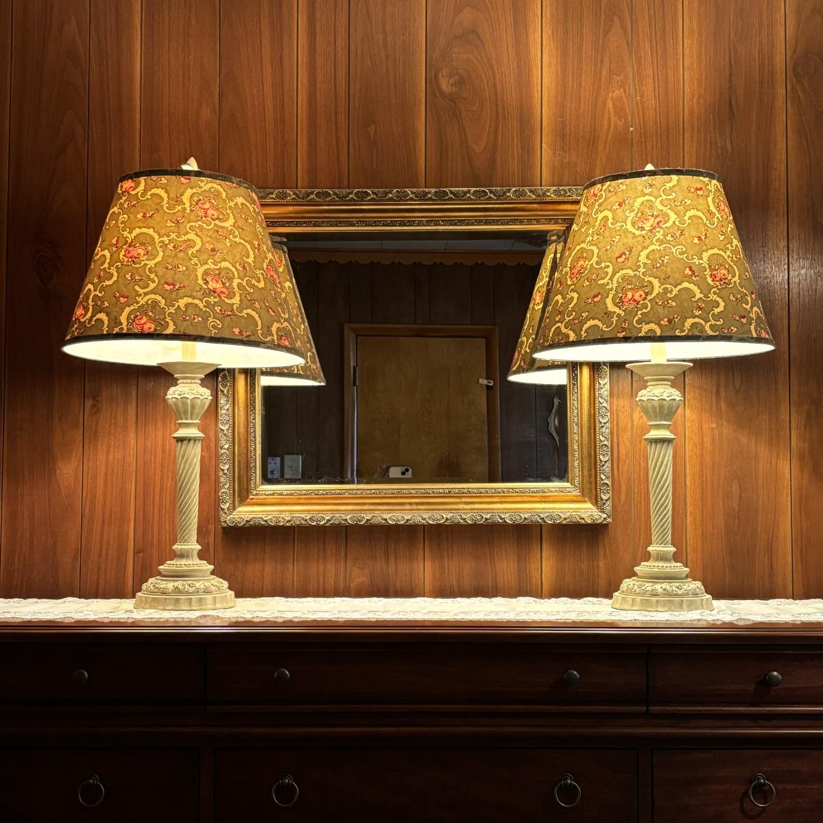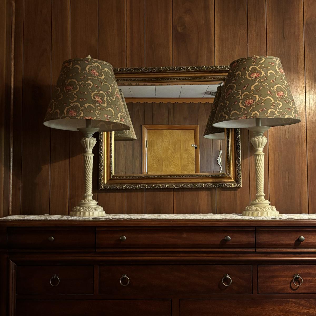 LOT 84: Beveled Mirror and French Country Style Lamps