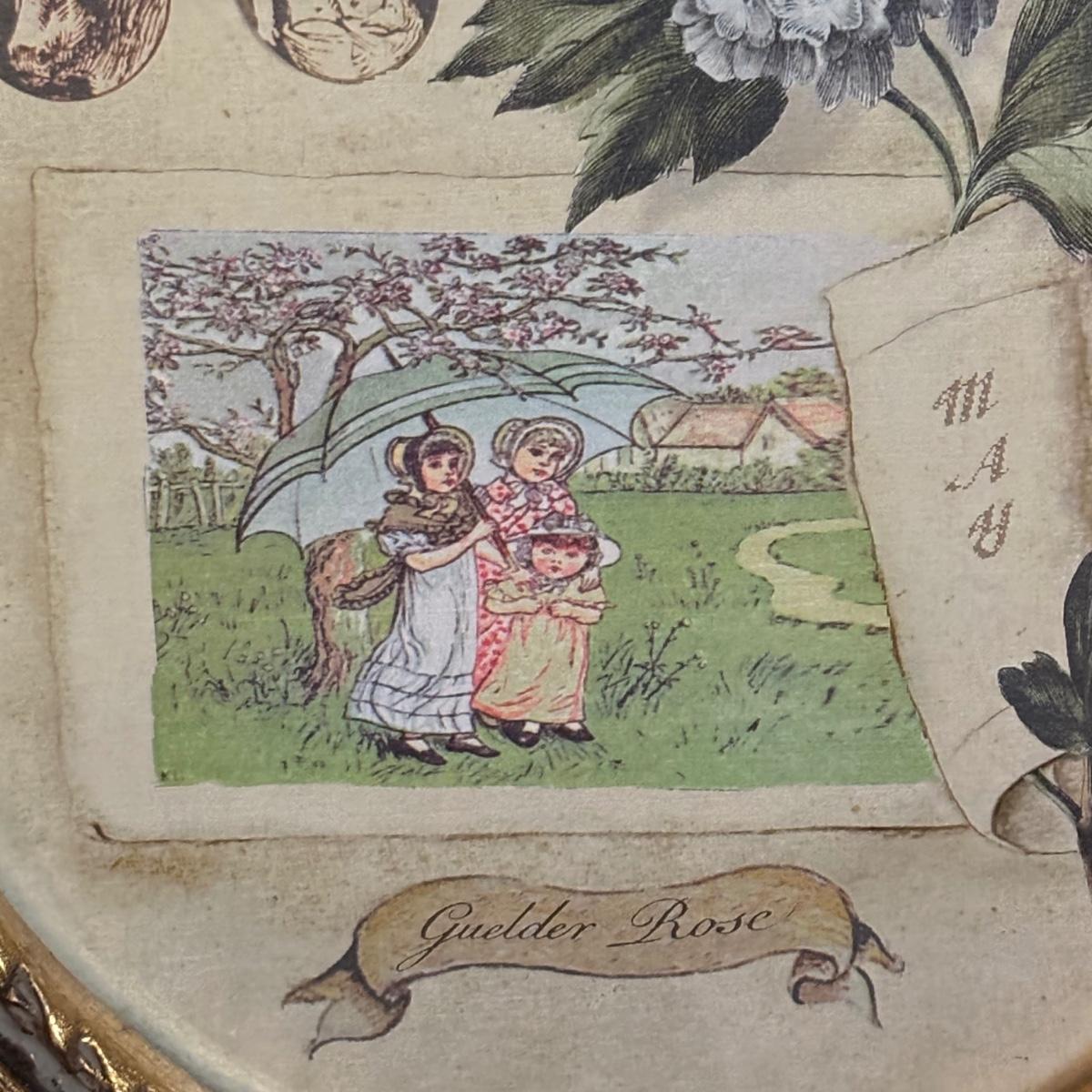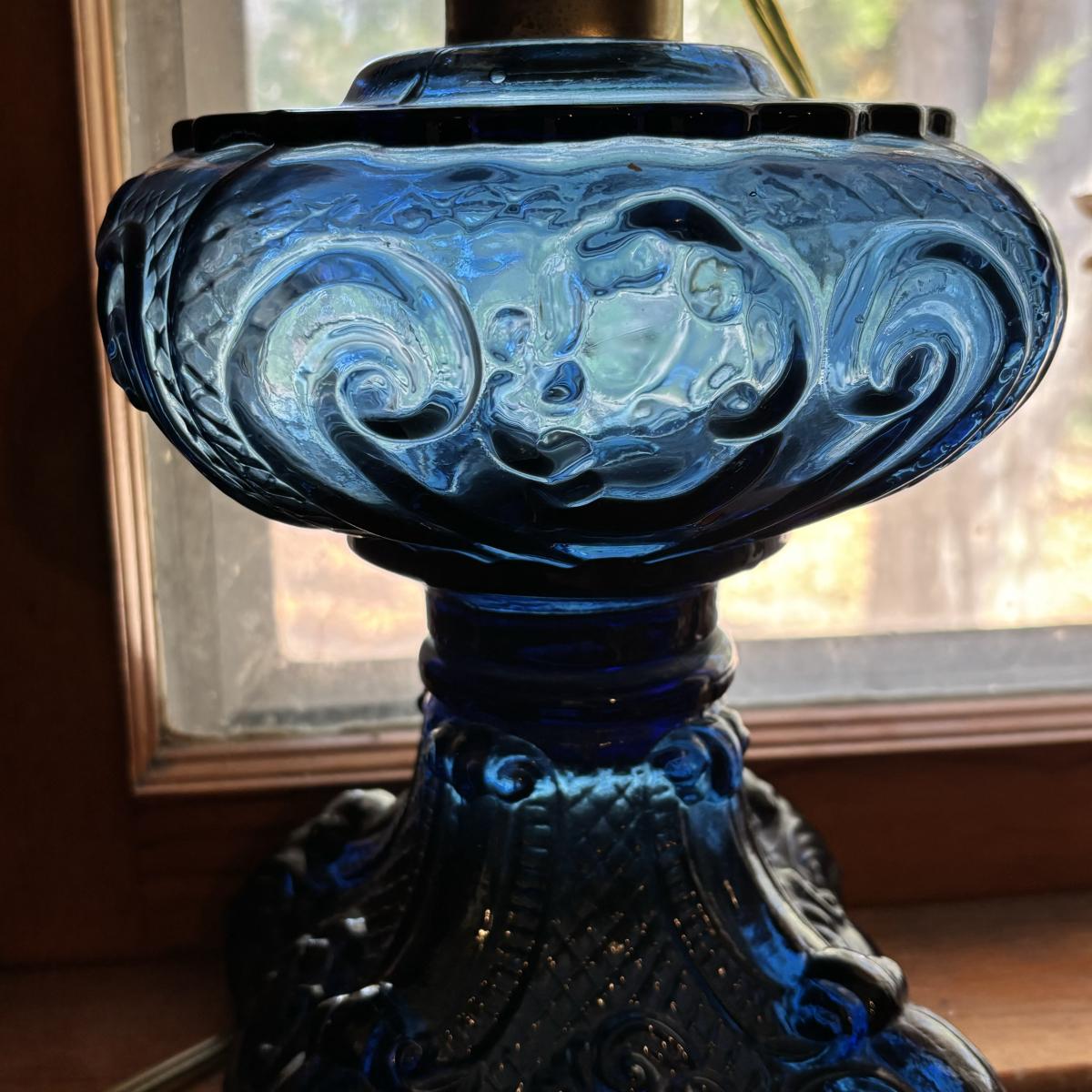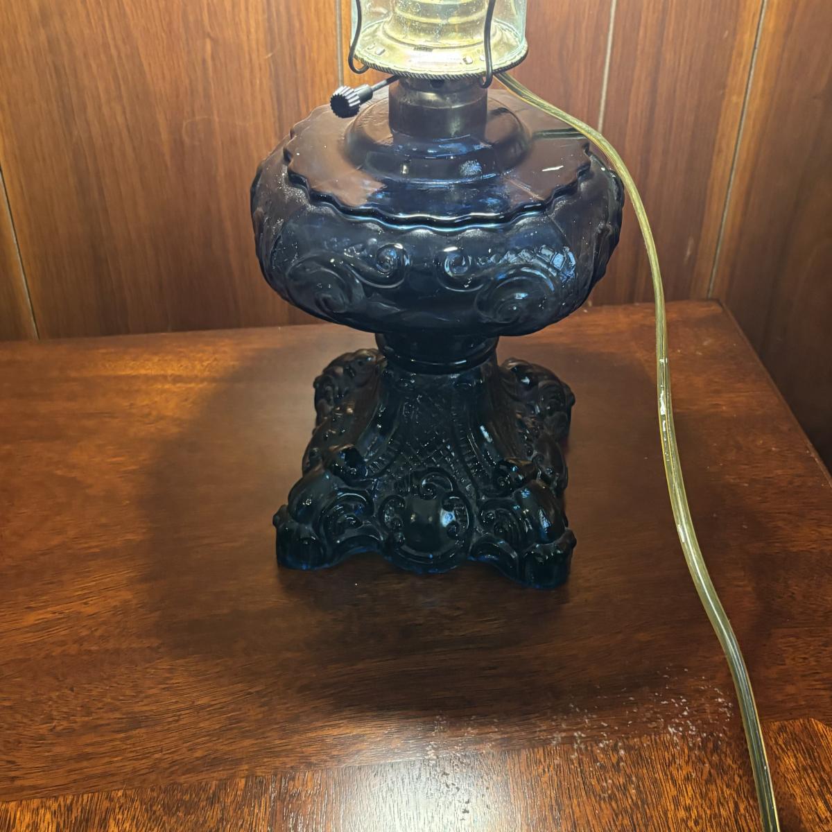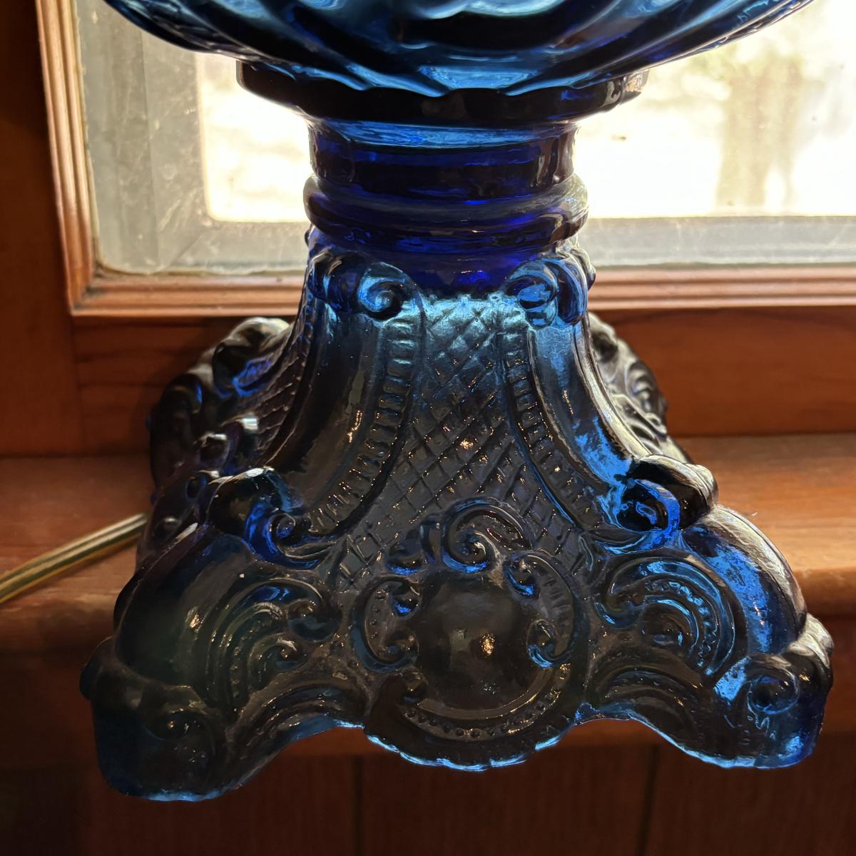 LOT 86: Blue Oil Lamp Style Lamp, Oval Prints Floral of the Month August & May, Nippon Tray/Dish