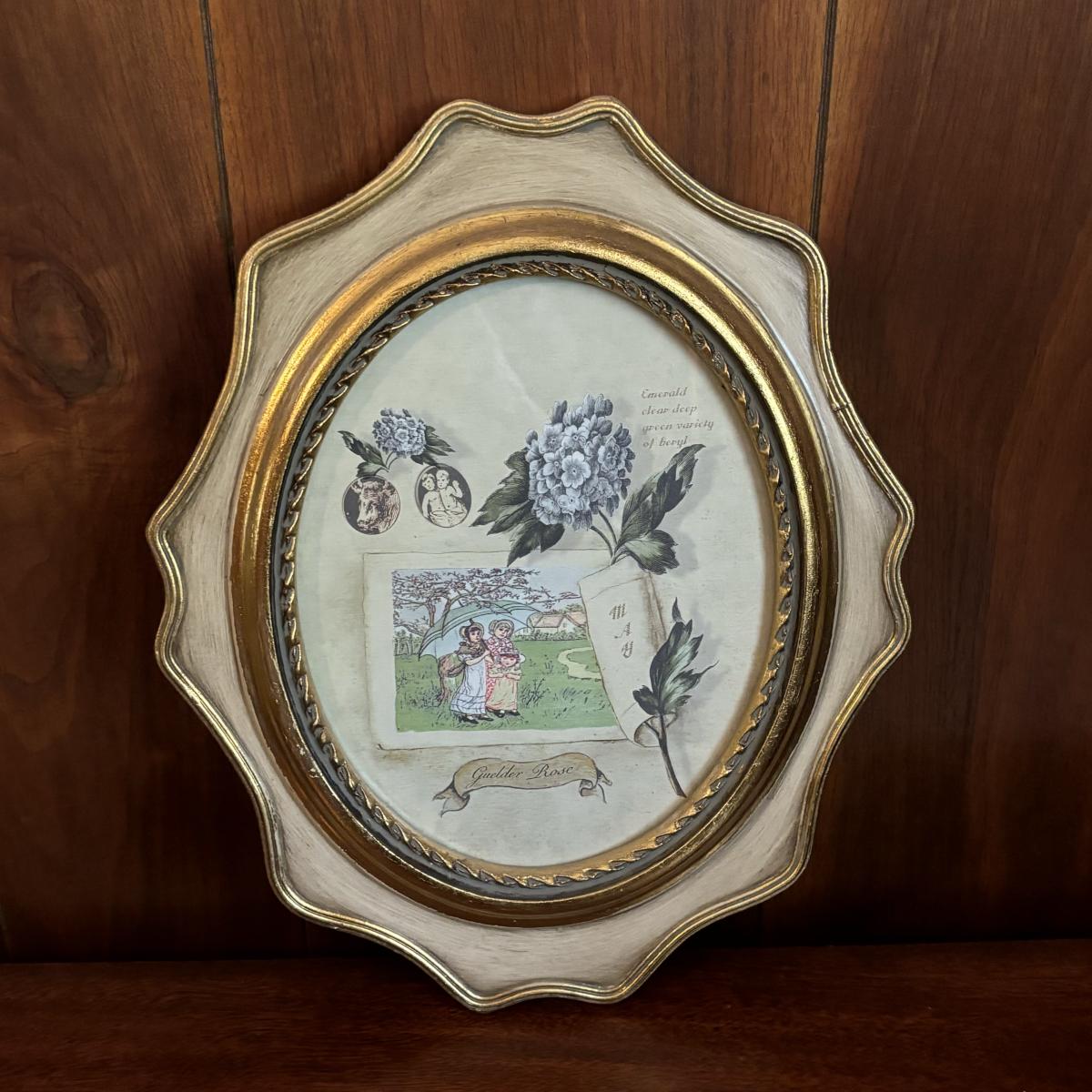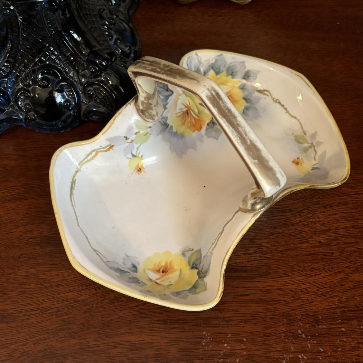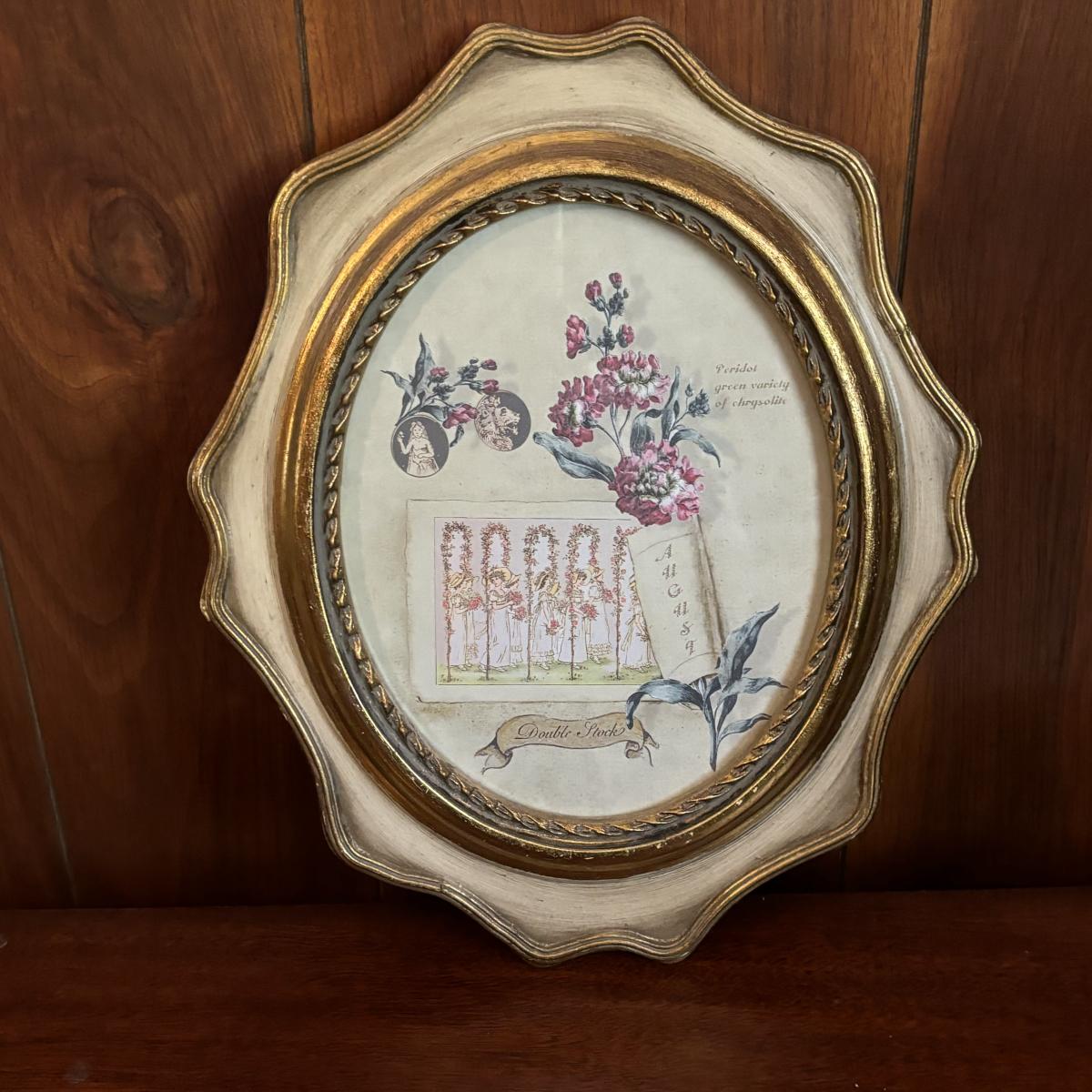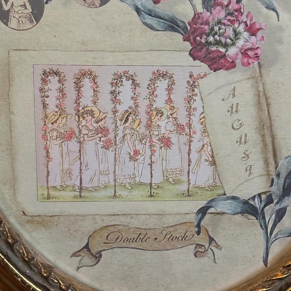 LOT 86: Blue Oil Lamp Style Lamp, Oval Prints Floral of the Month August & May, Nippon Tray/Dish