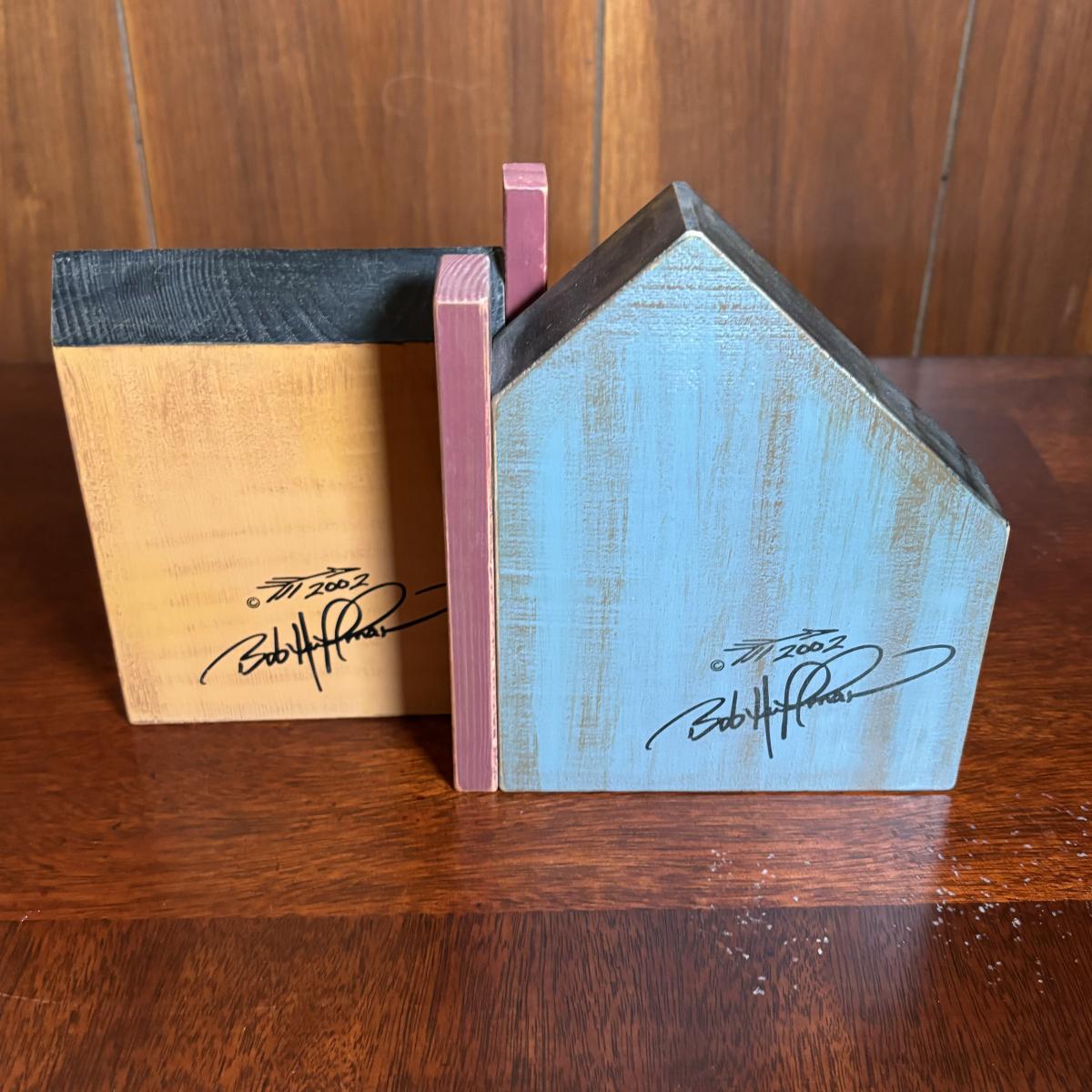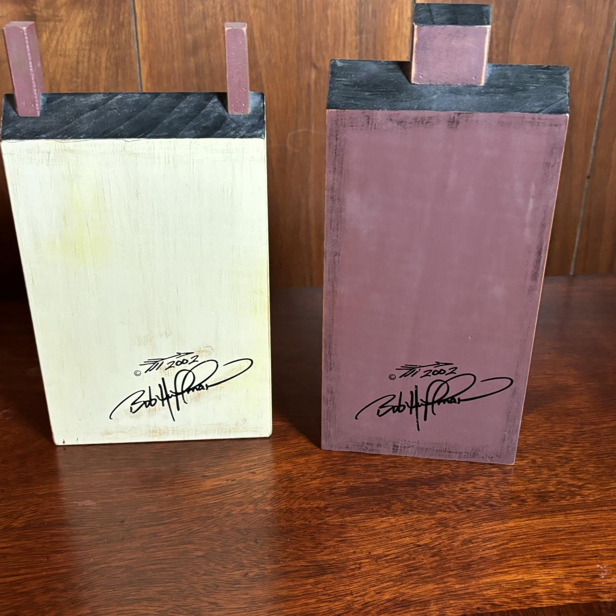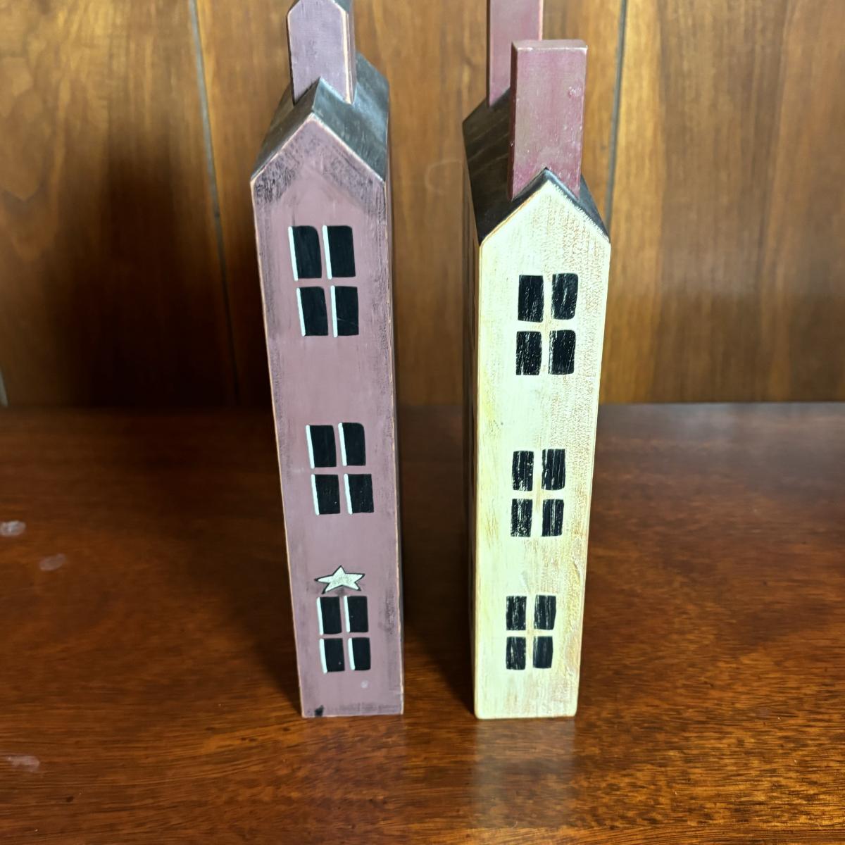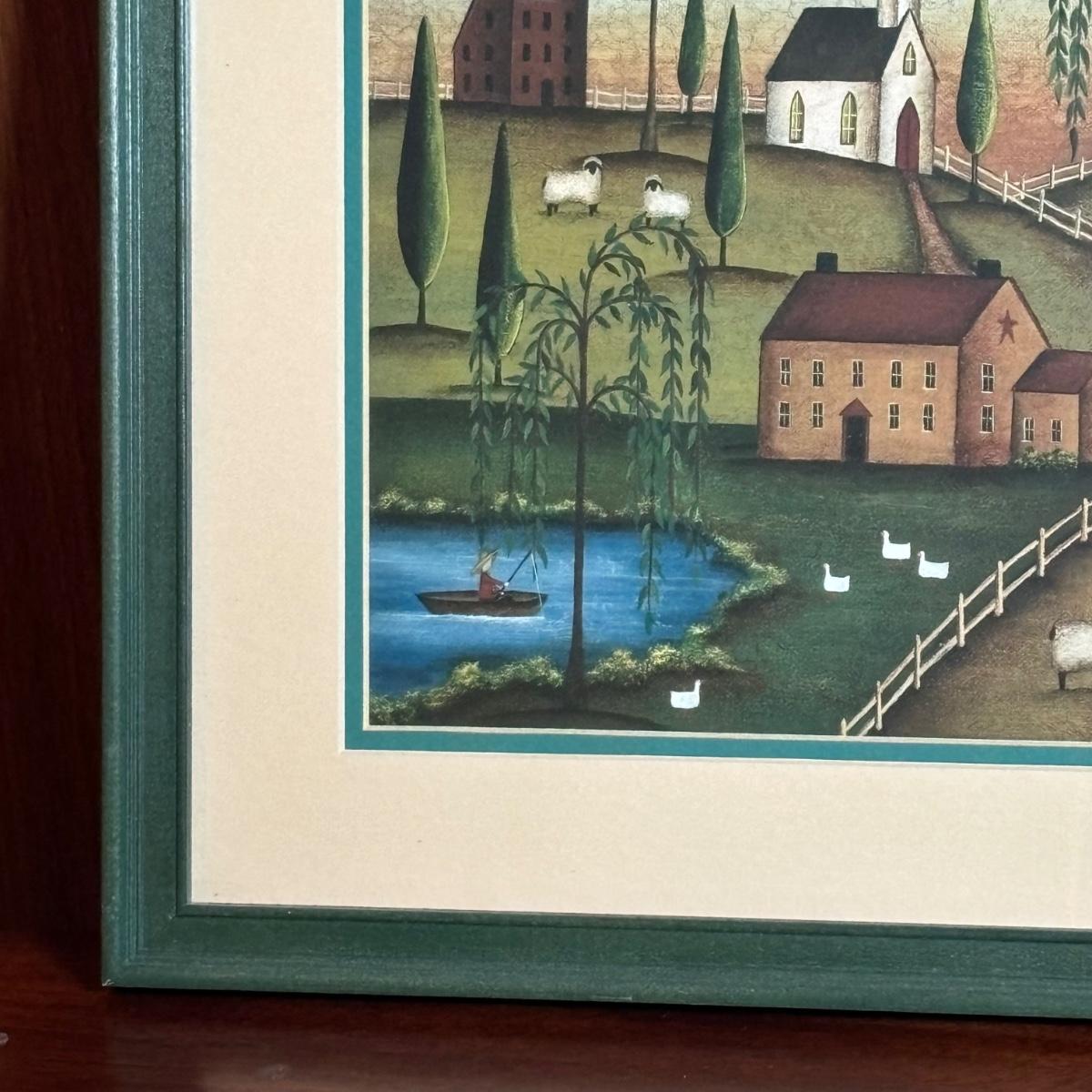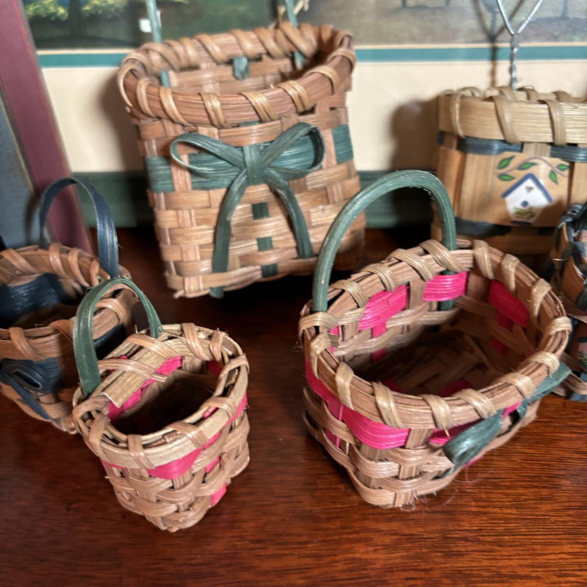 LOT 96: Folk Art Primitive Home Decor: Bob Huffman Wooden Buildings, Kim Lewis Print, Miniature Baskets & More