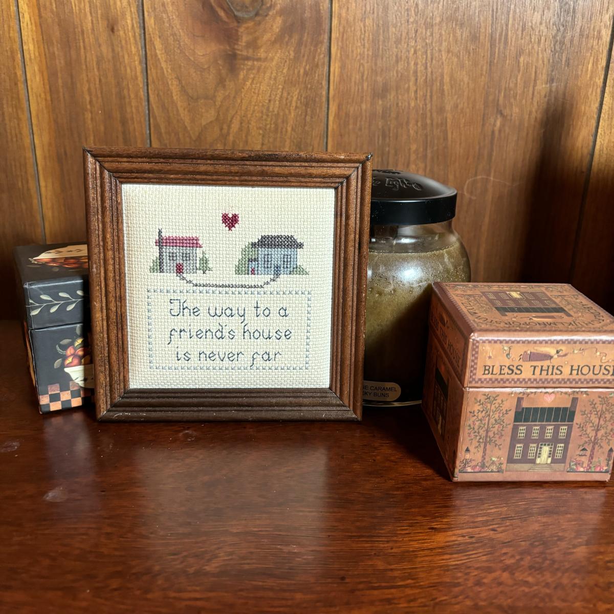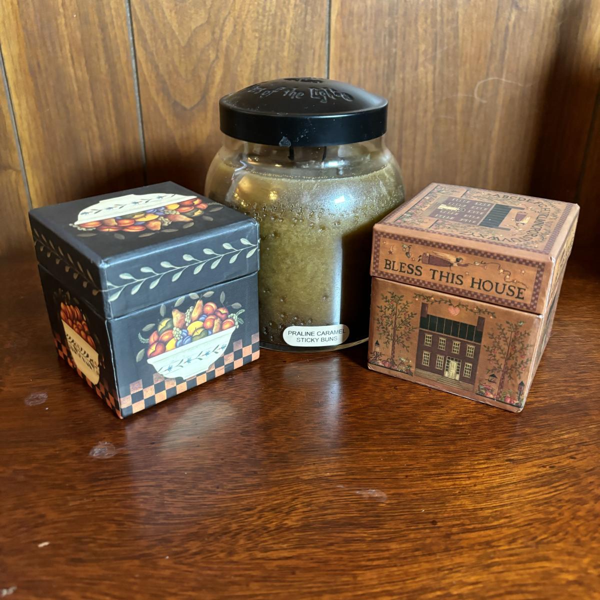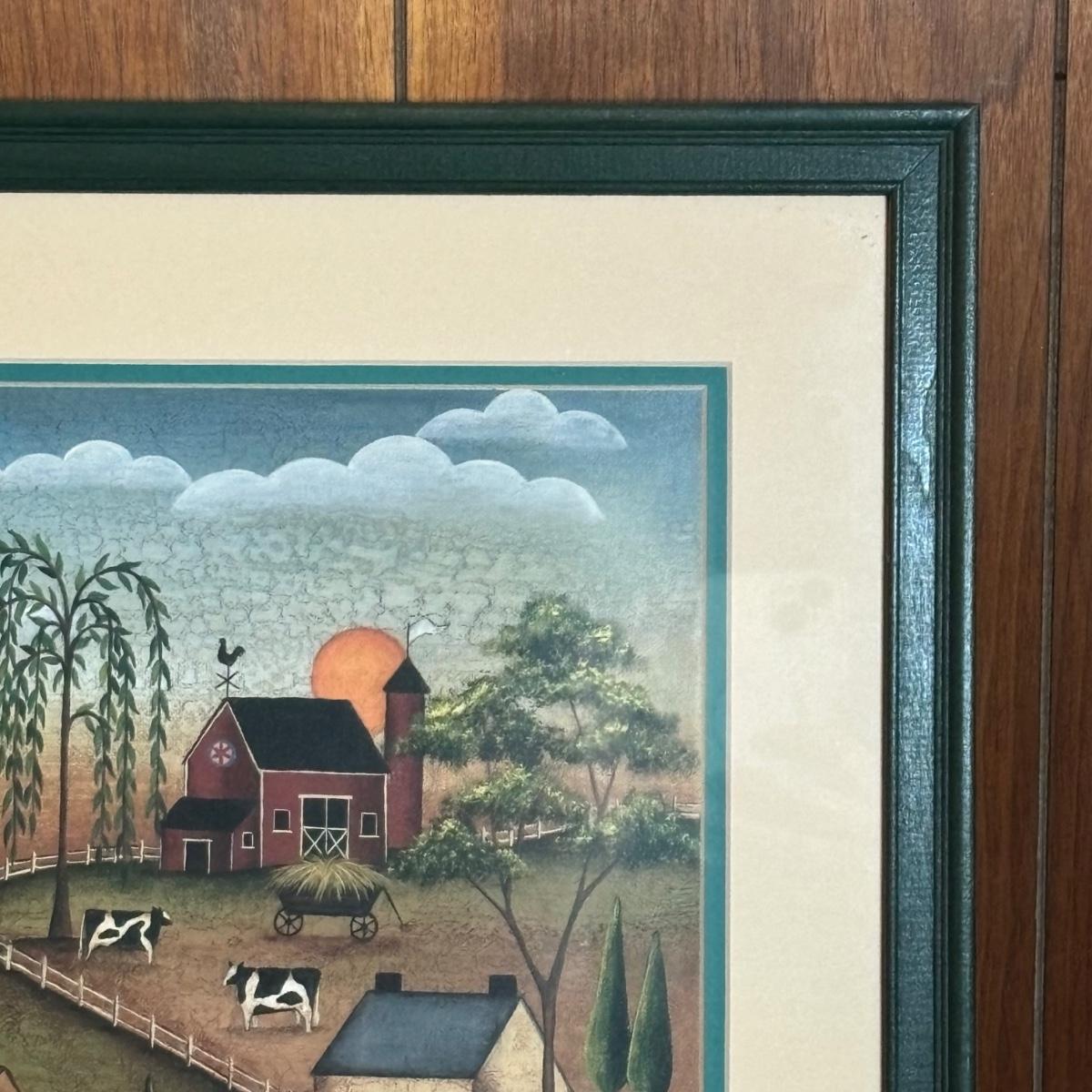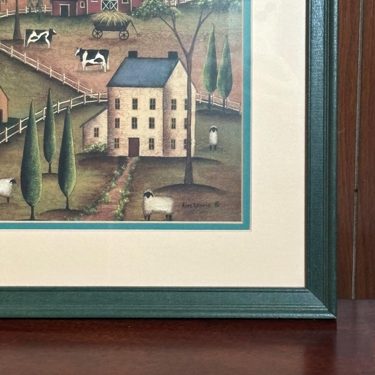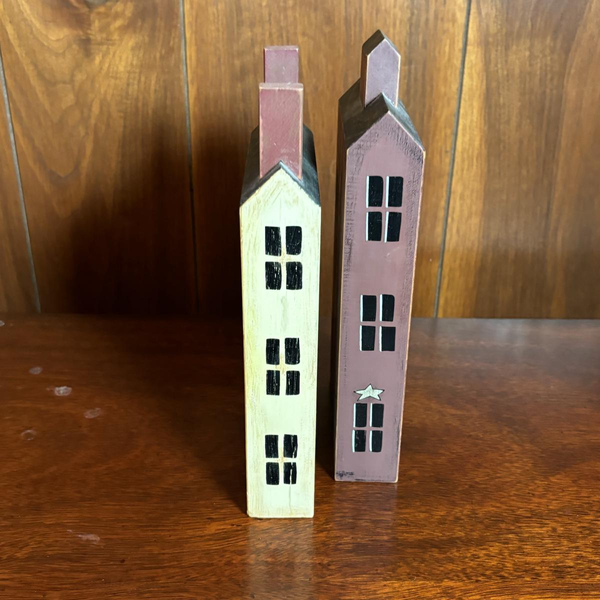 LOT 96: Folk Art Primitive Home Decor: Bob Huffman Wooden Buildings, Kim Lewis Print, Miniature Baskets & More
