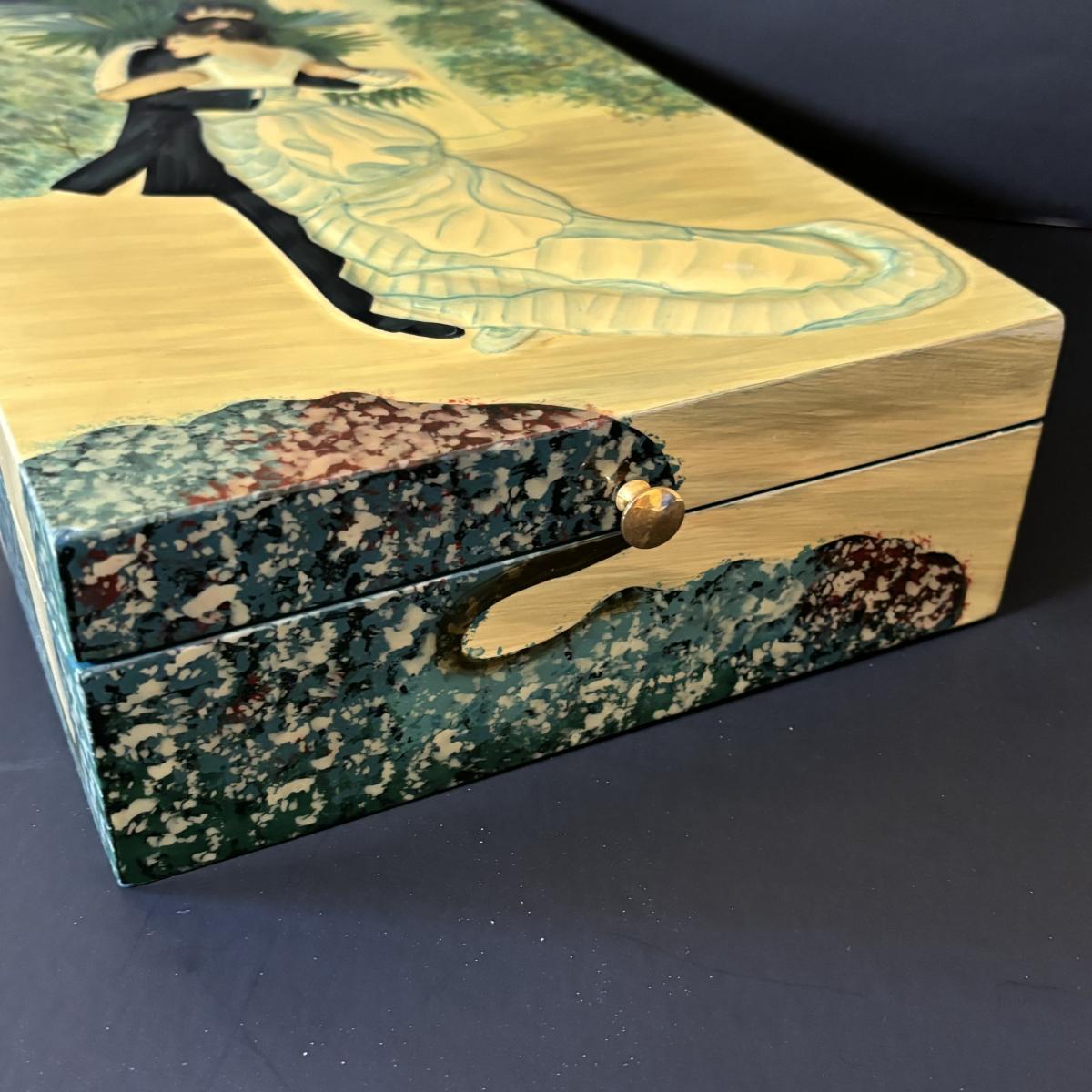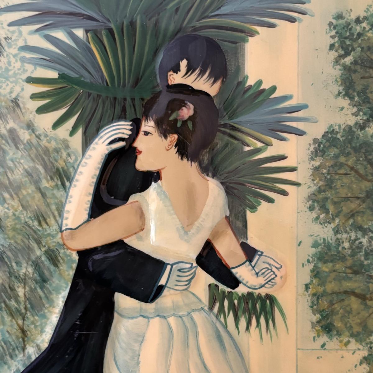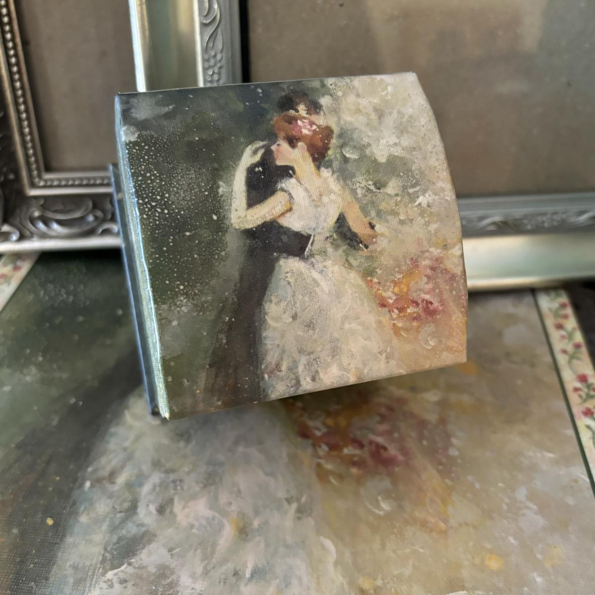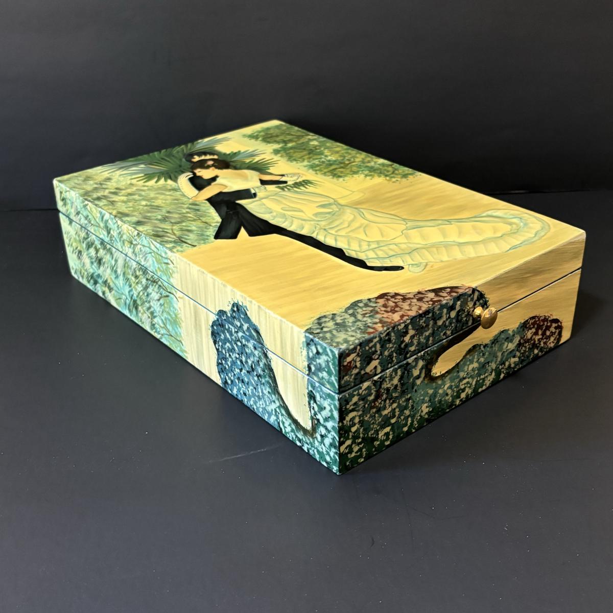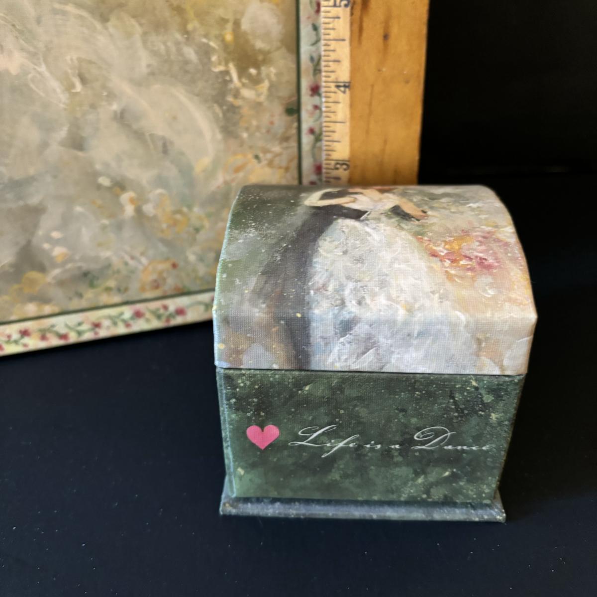 LOT 99: Beautiful Art Deco "Dance in the City 1883, Pierre Auguste Renoir" Jewelry Box, Lace/Linens, Matching Storage Boxes, Picture Frames
