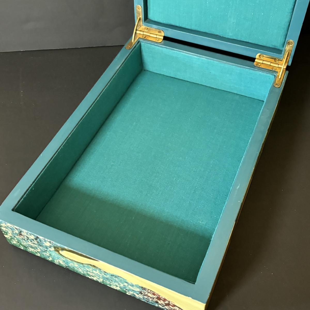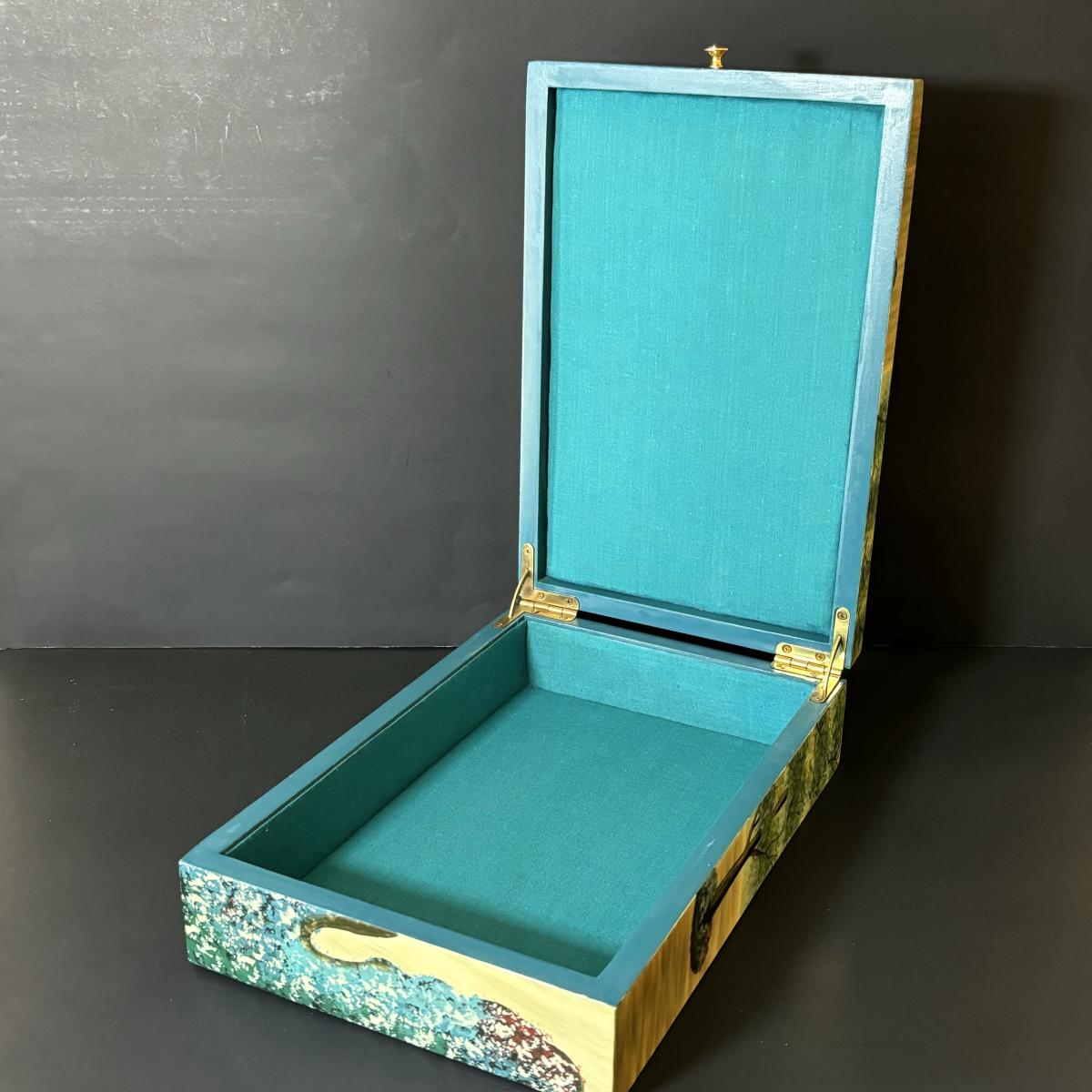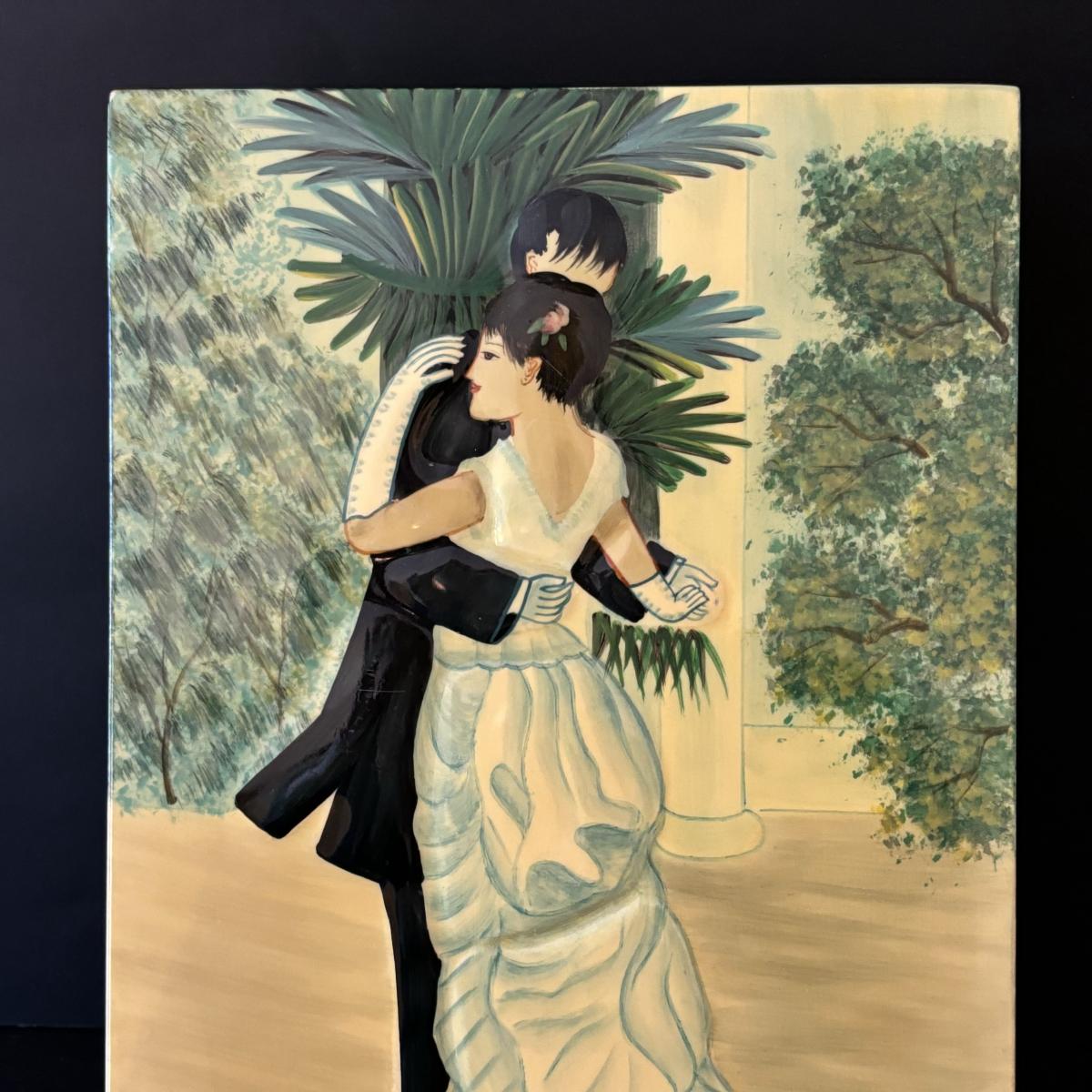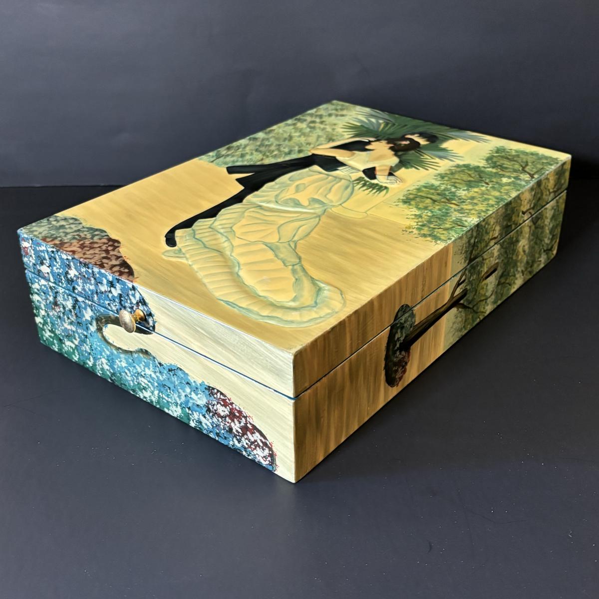 LOT 99: Beautiful Art Deco "Dance in the City 1883, Pierre Auguste Renoir" Jewelry Box, Lace/Linens, Matching Storage Boxes, Picture Frames