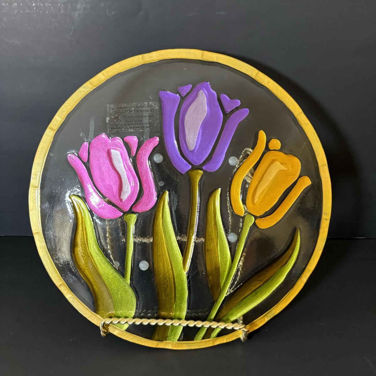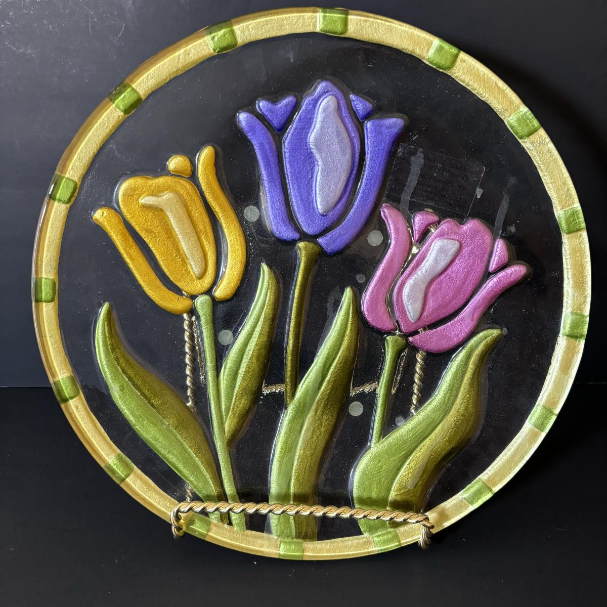 LOT 100: Lori Siebert Silvestri Hand Blown/Fused Tulip Decorative Plate, San Francisco Music Box, Decorative Butterfly Plates & More