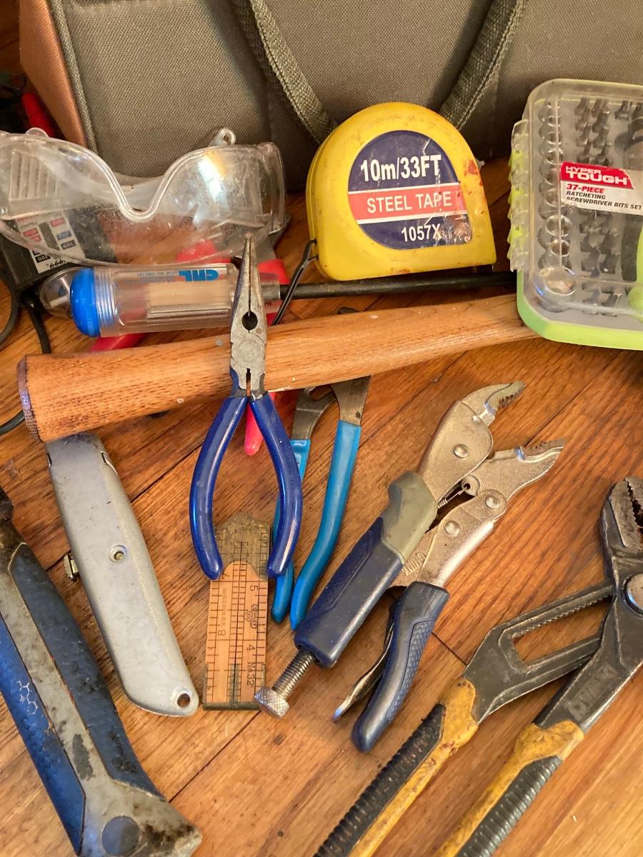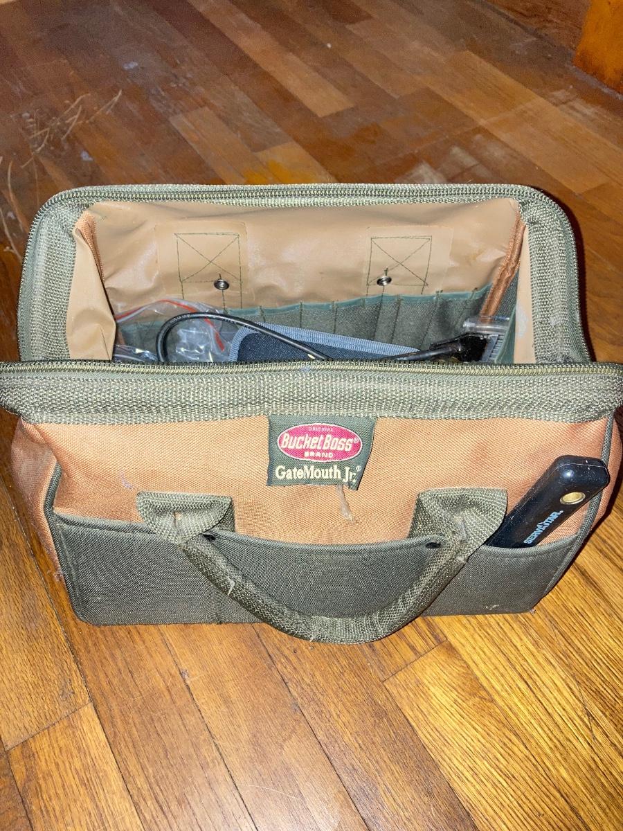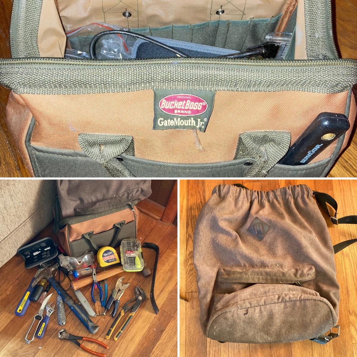 LOT 117: Bucket Boss Tool Bag, Tool Backpack and Contents