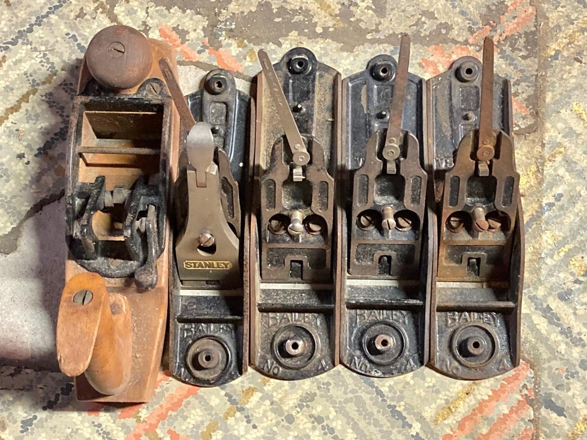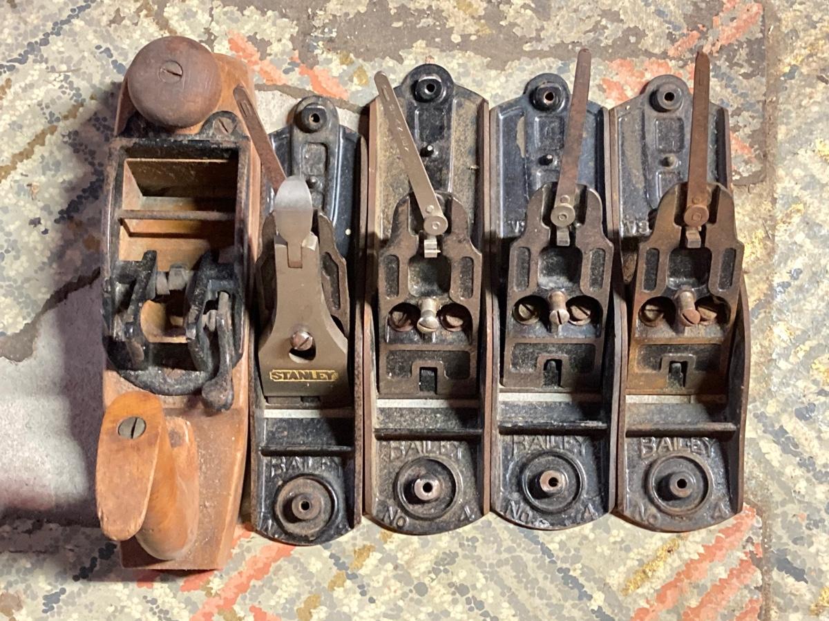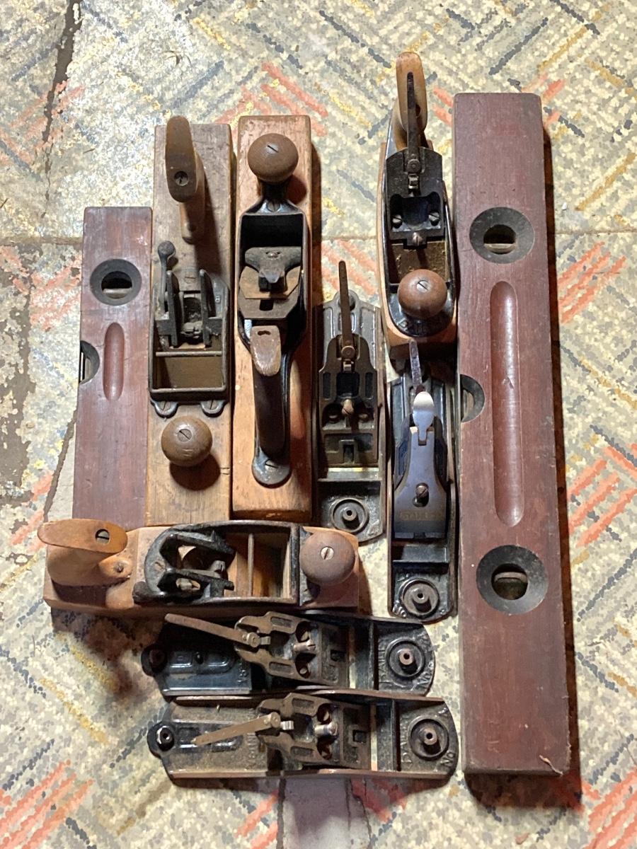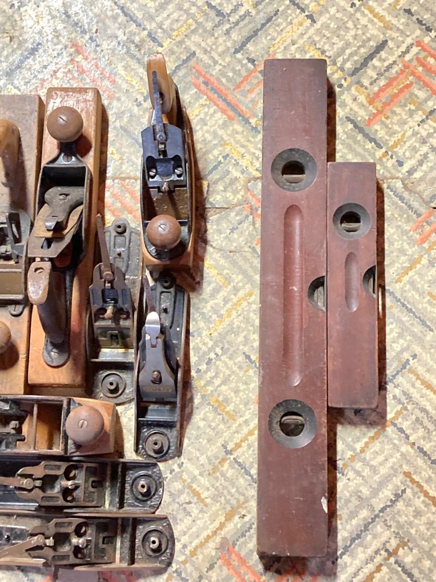 LOT 119: Vintage Wood and Metal Planers and Levels - Bailey and Stanley Included