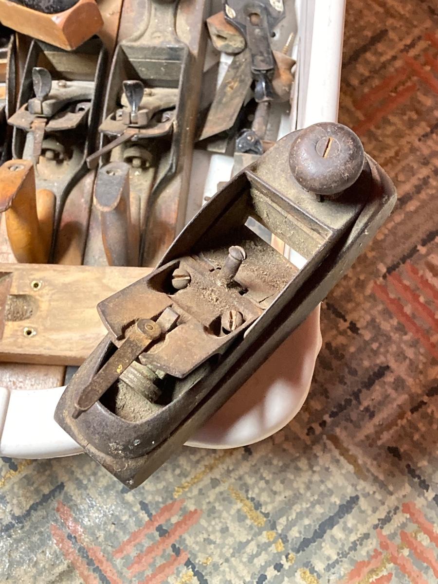 LOT 123: Collection of Vintage Wood / Metal Planers, Parts and More
