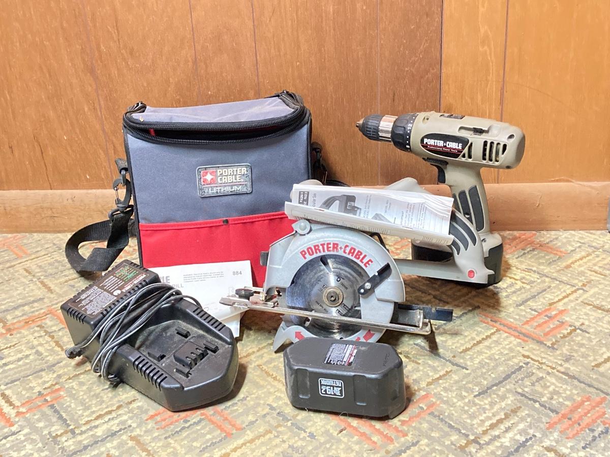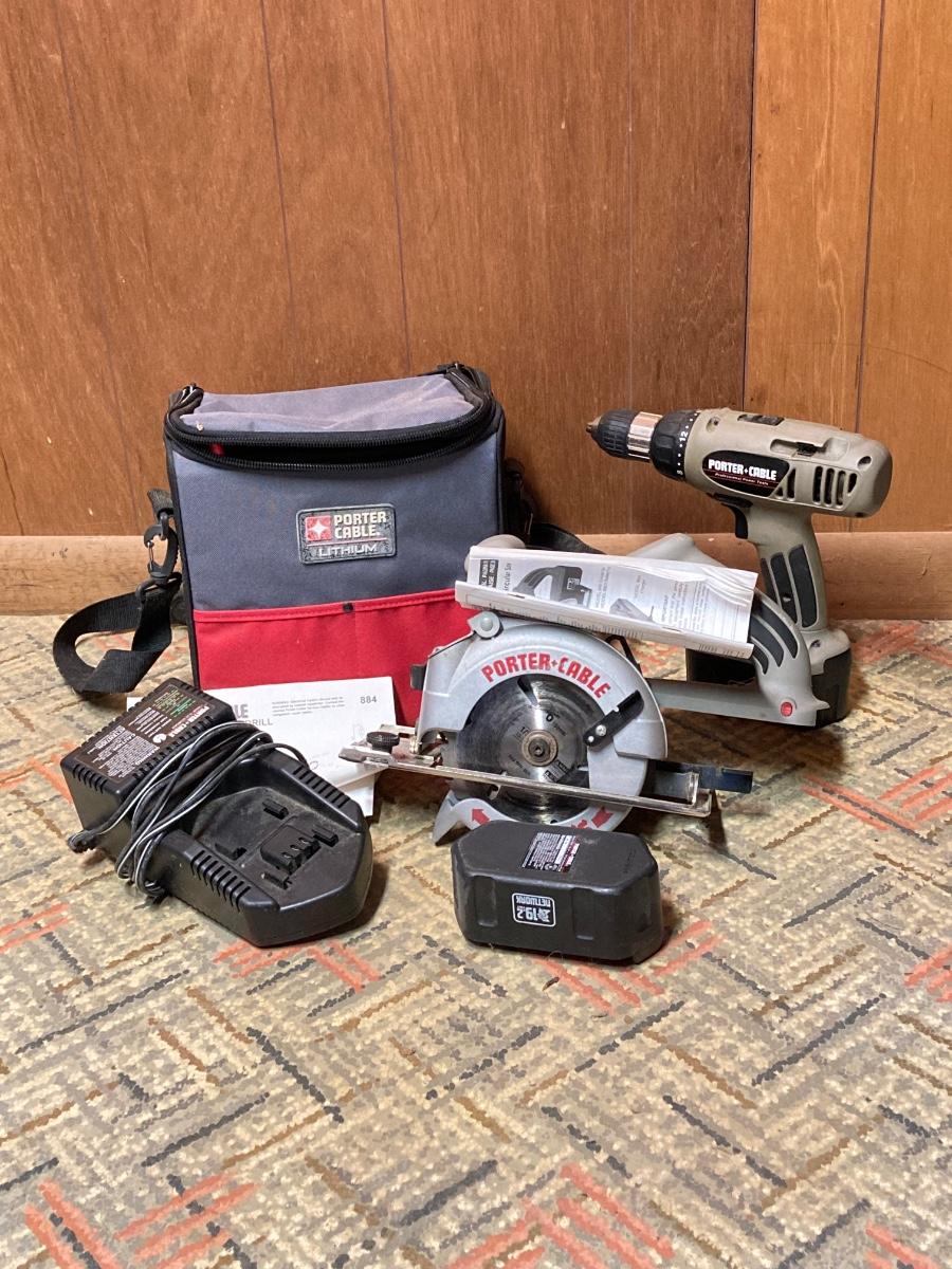 LOT 125: Porter Cable Cordless Drill Model 884 1/2" and Circular Saw Model 845 with Case