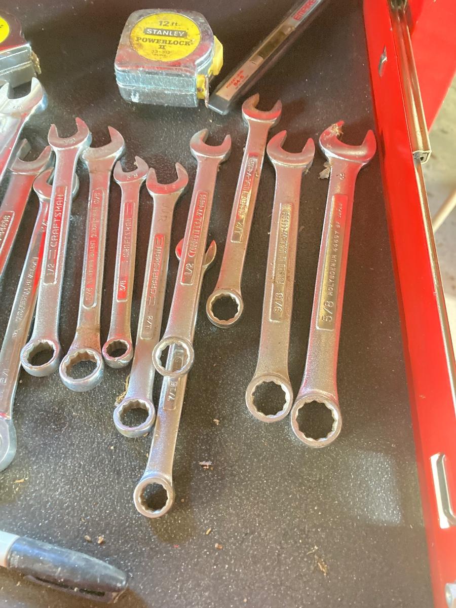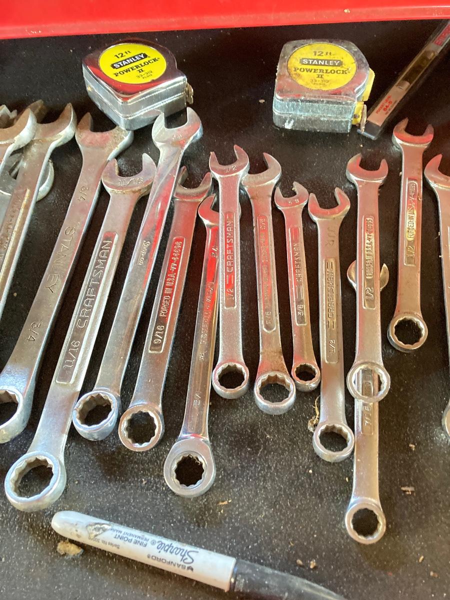 LOT 127: Collection of Wrenches, Utility Knives, Pliers, Tape Measures and More