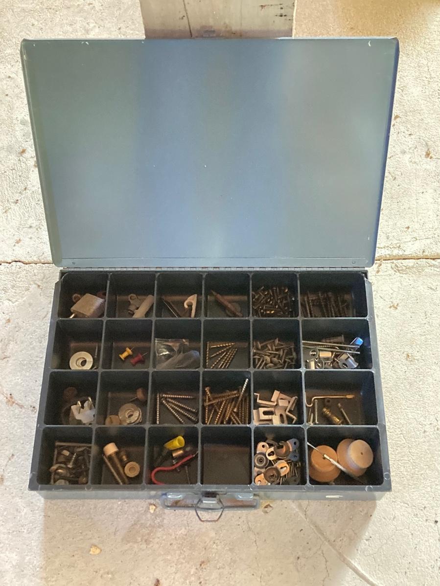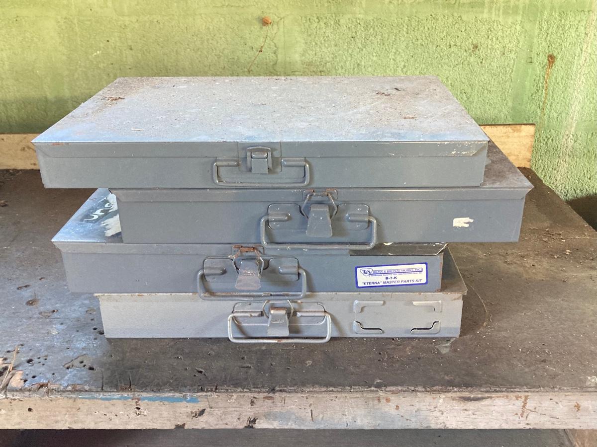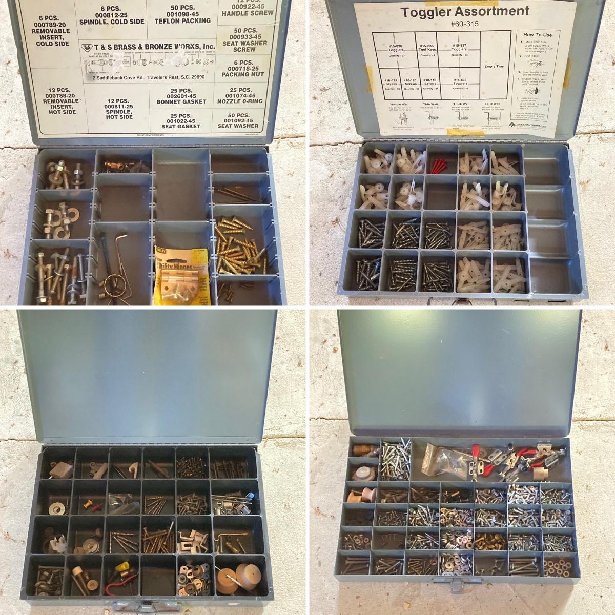 LOT 135: Four Metal Hardware Organizers with Contents
