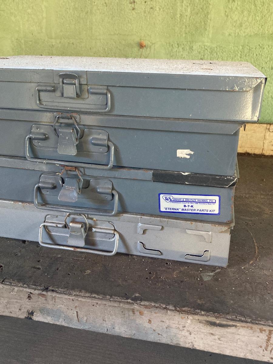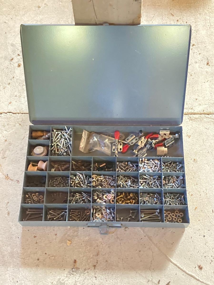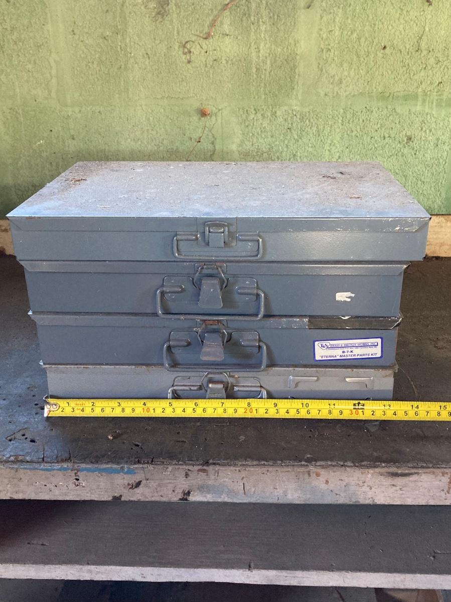 LOT 135: Four Metal Hardware Organizers with Contents