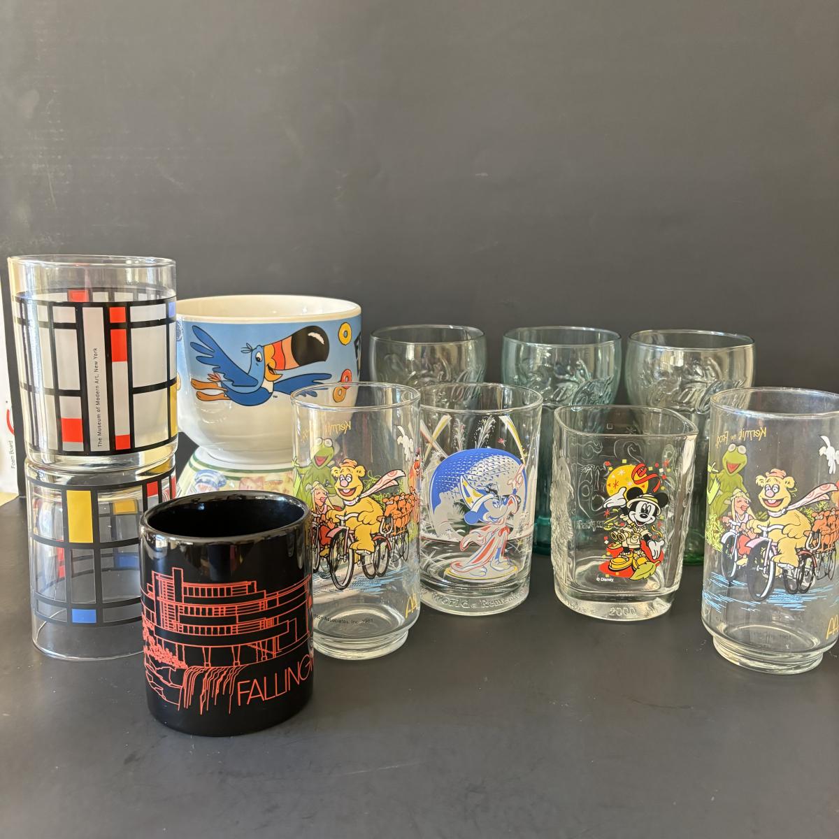 LOT 136: Vintage McDonalds "The Great Muppet Caper" Glasses, the Musuem of Modern Art, New York Glasses, Disney Glasses, Coke a Cola Glasses & More