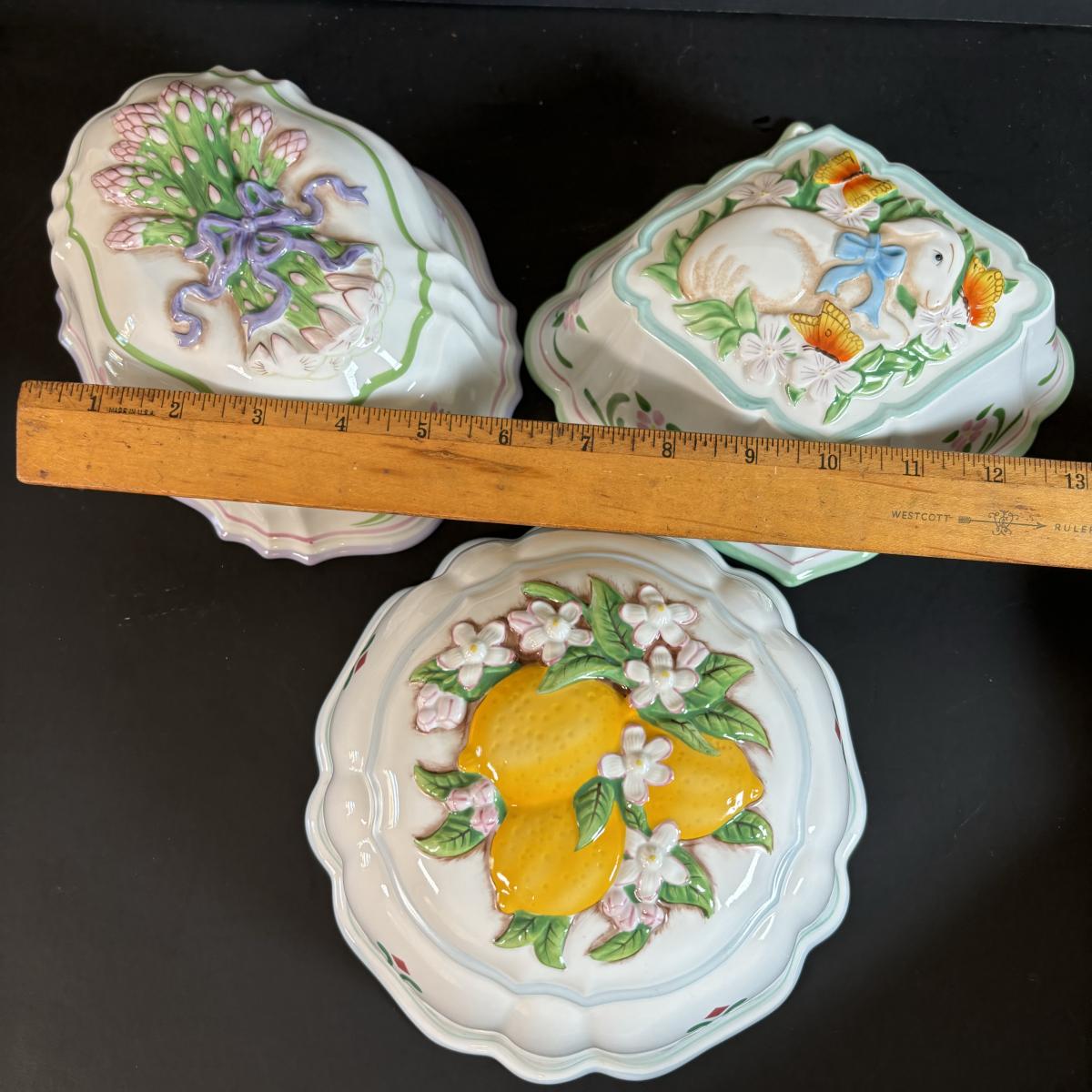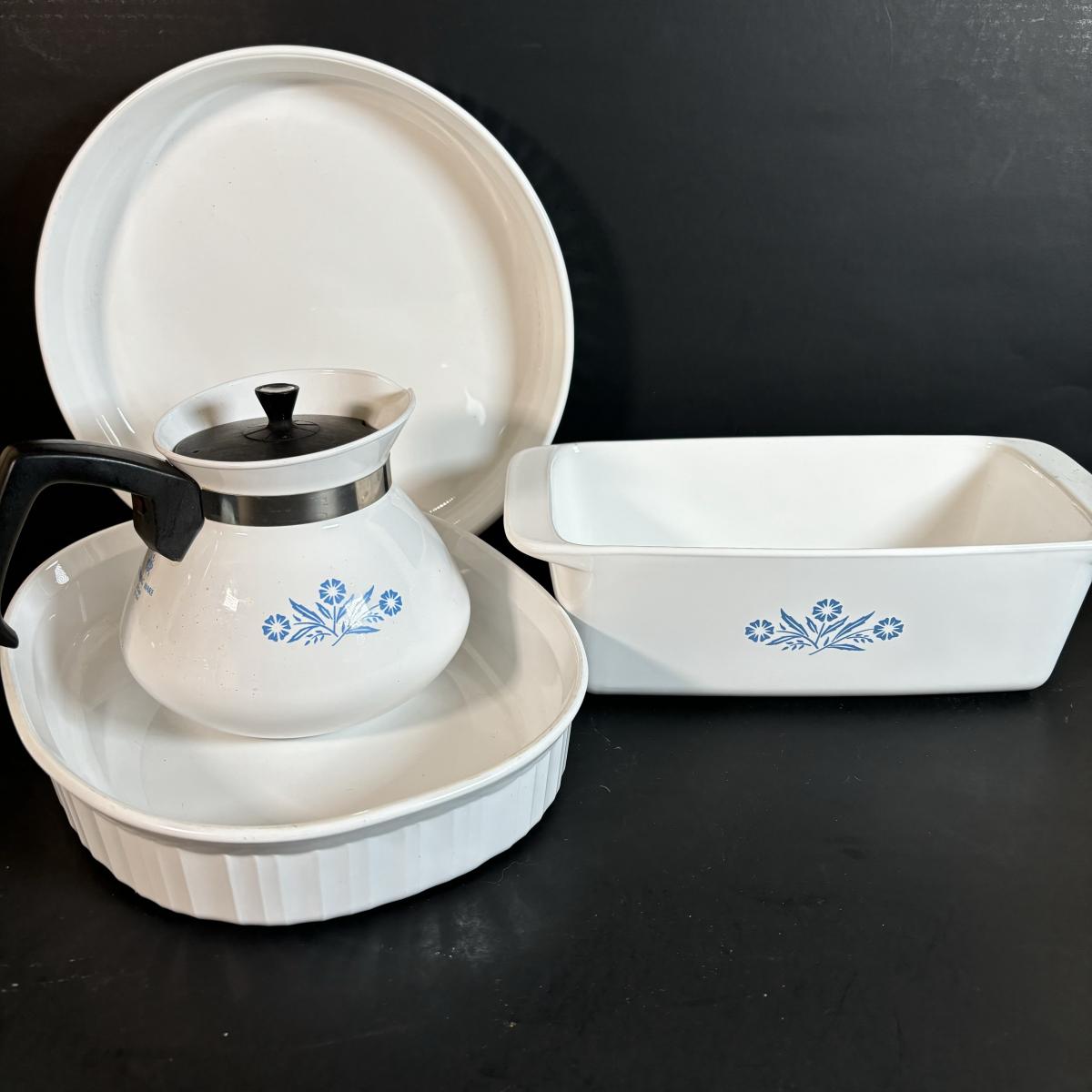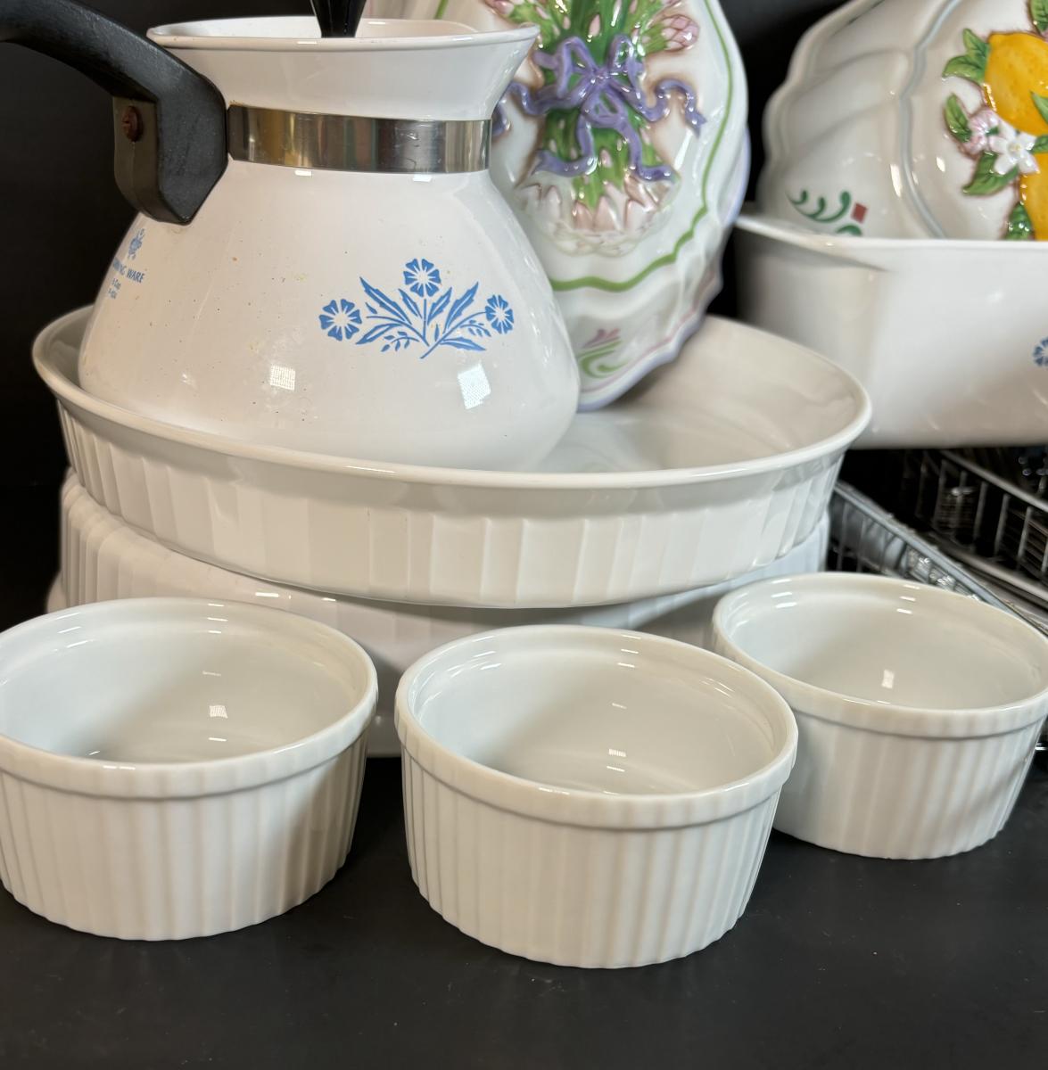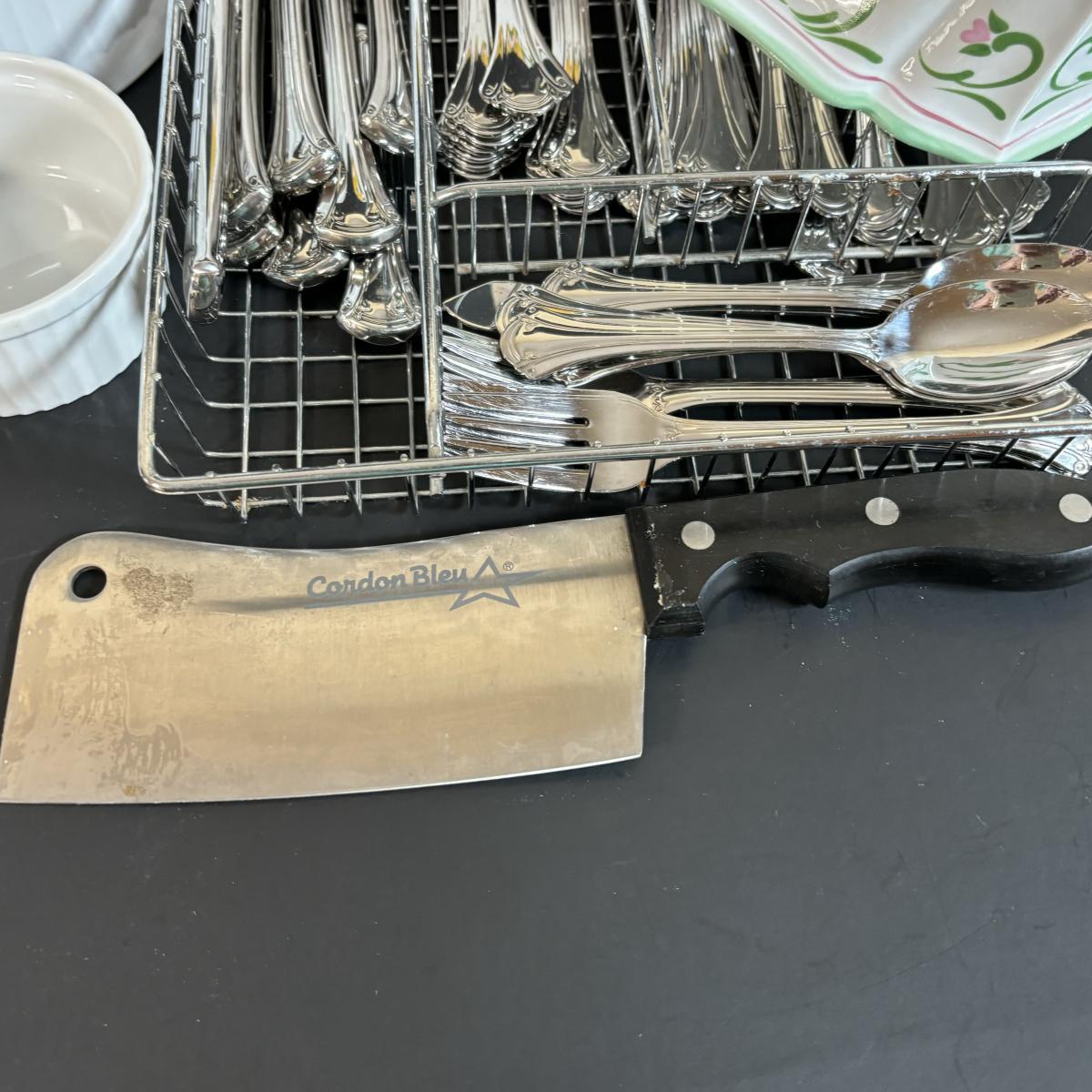 LOT 143: Franklin Mint Le Corden Bleu Jello Mold Wall Hangings, Henkle Knives, Wallace Flatware, Blue Corn Flower Corning Ware & More