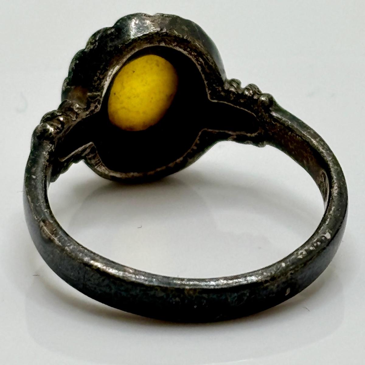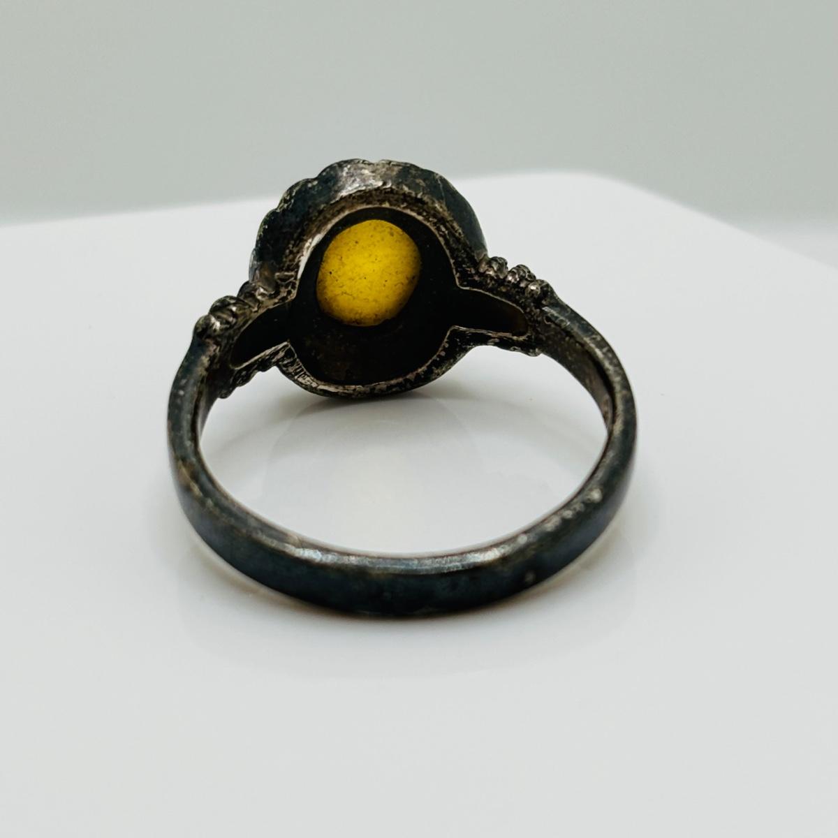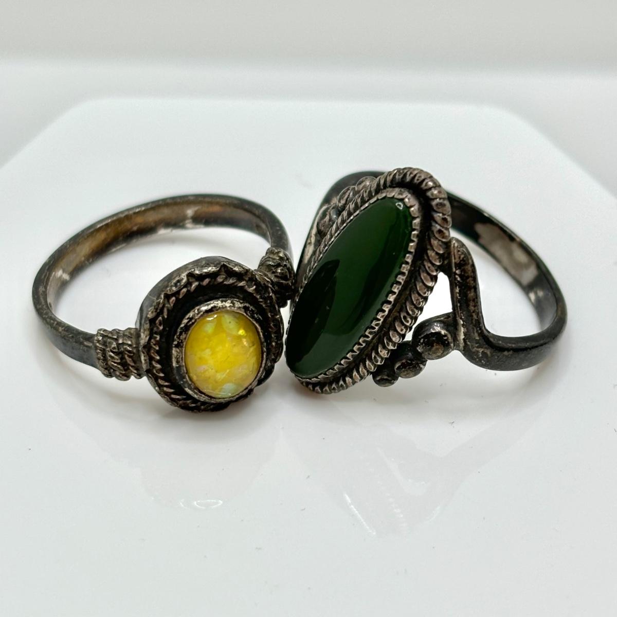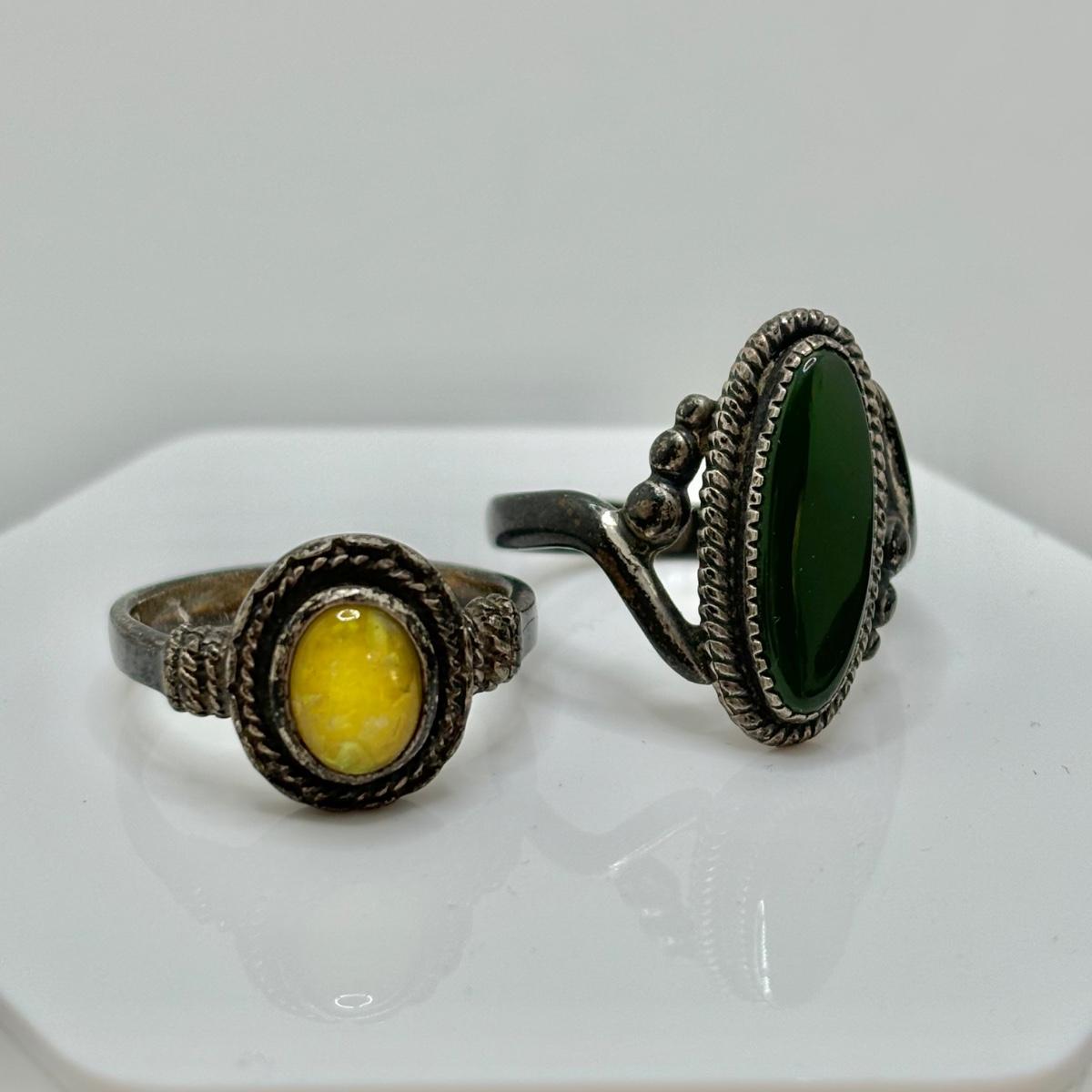 LOT 146: Sterling Silver Oval Greenish Stone Ring, sz 9 & Oval Yellowish Stone Ring, sz 7.5