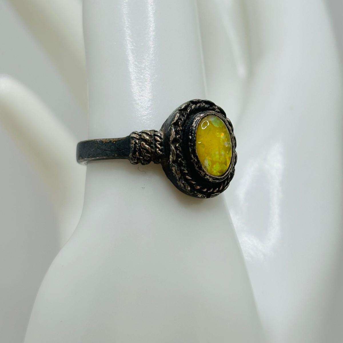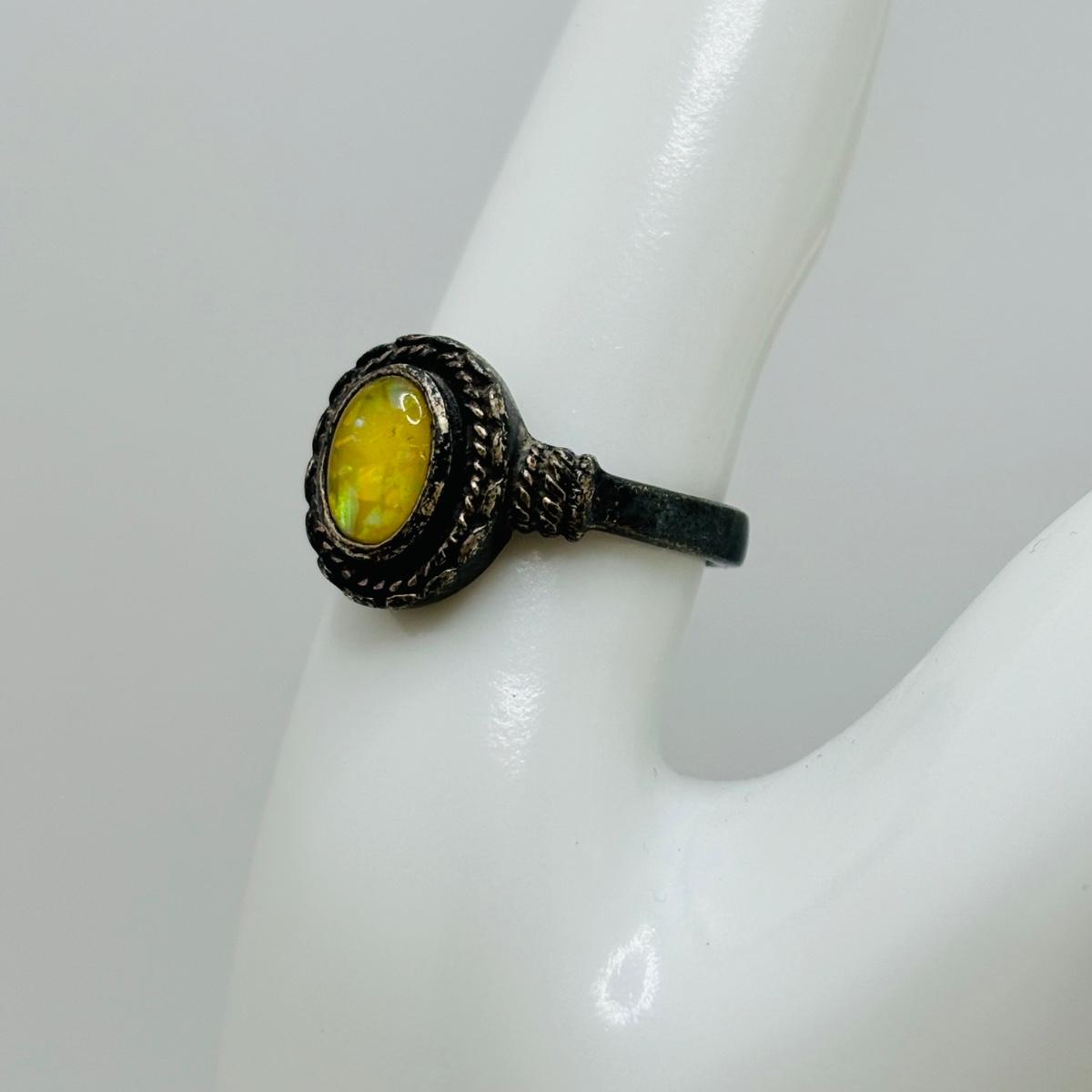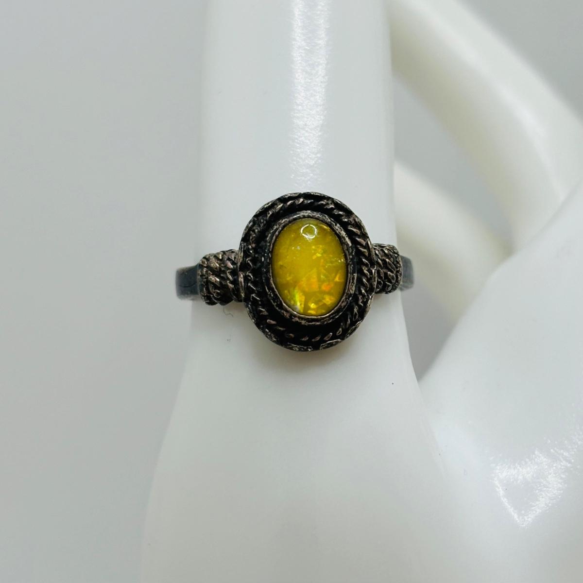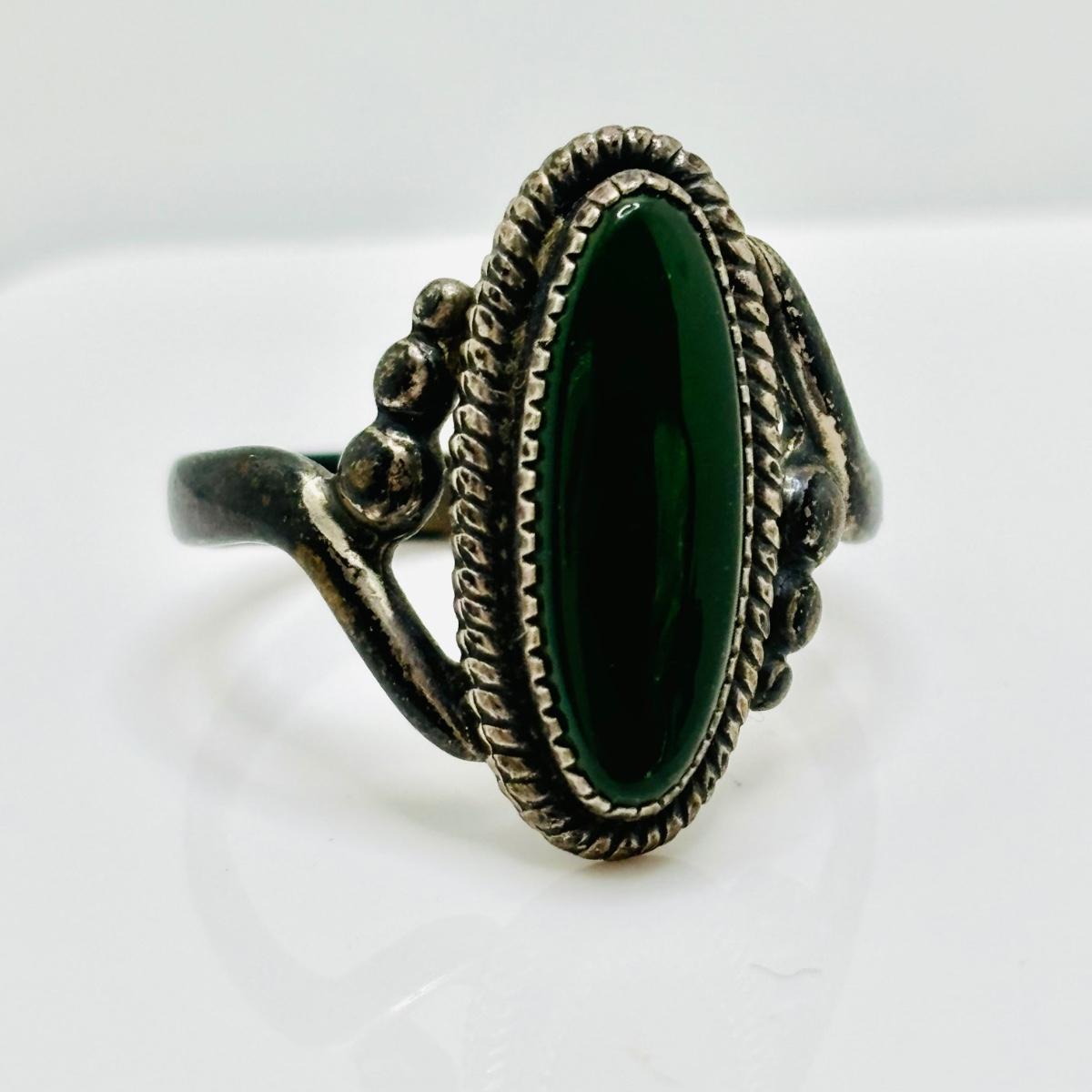 LOT 146: Sterling Silver Oval Greenish Stone Ring, sz 9 & Oval Yellowish Stone Ring, sz 7.5