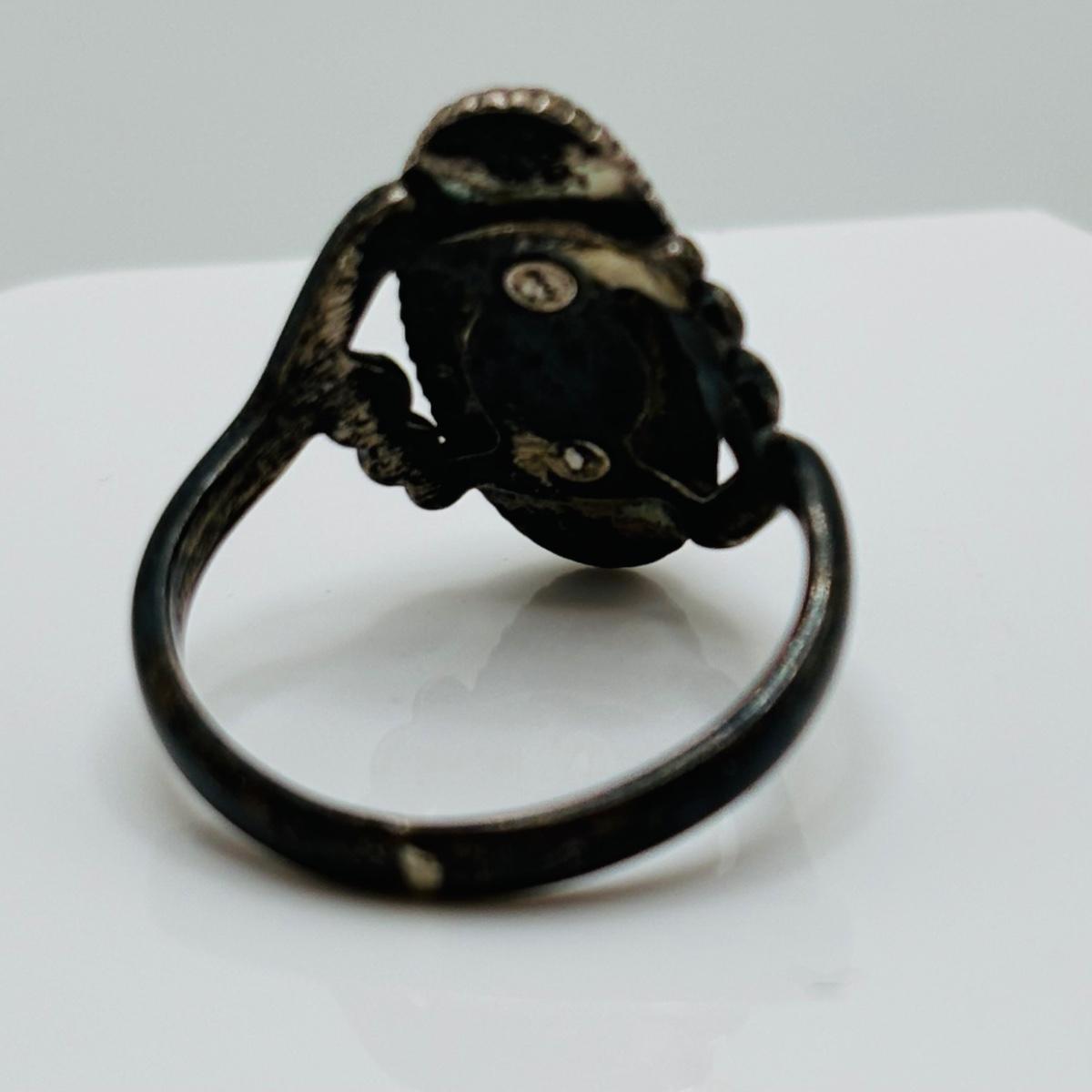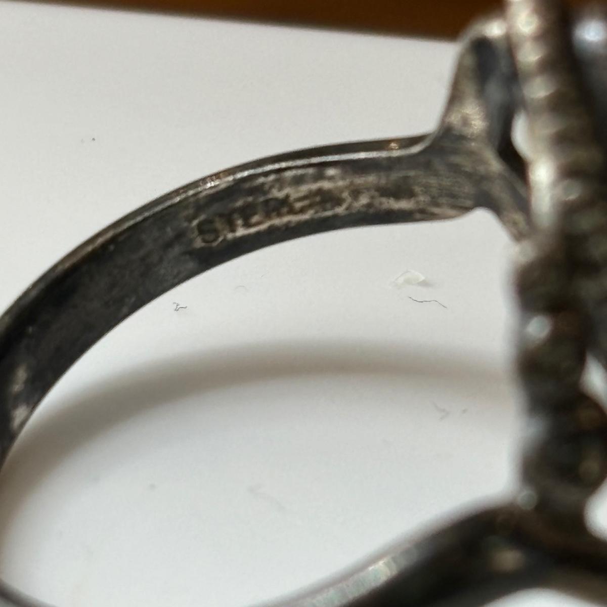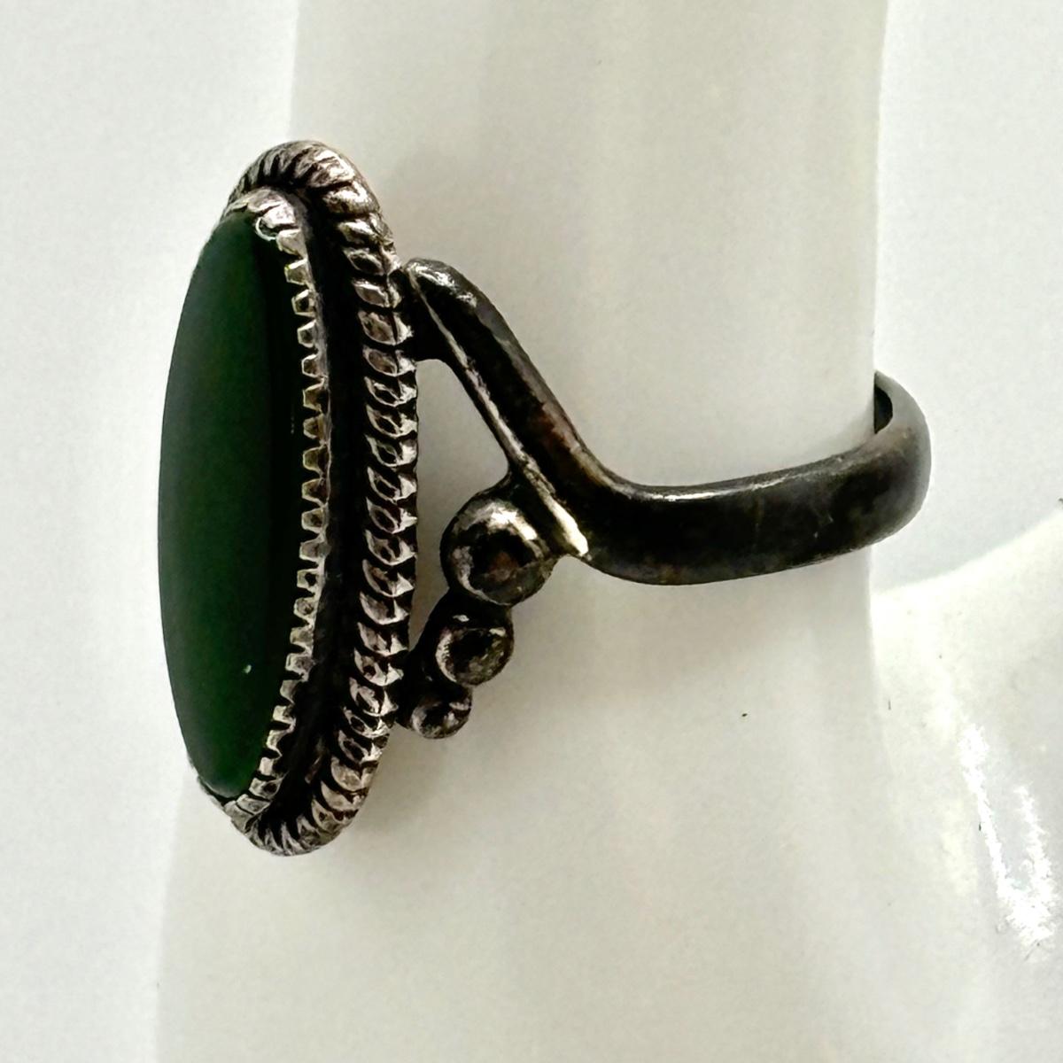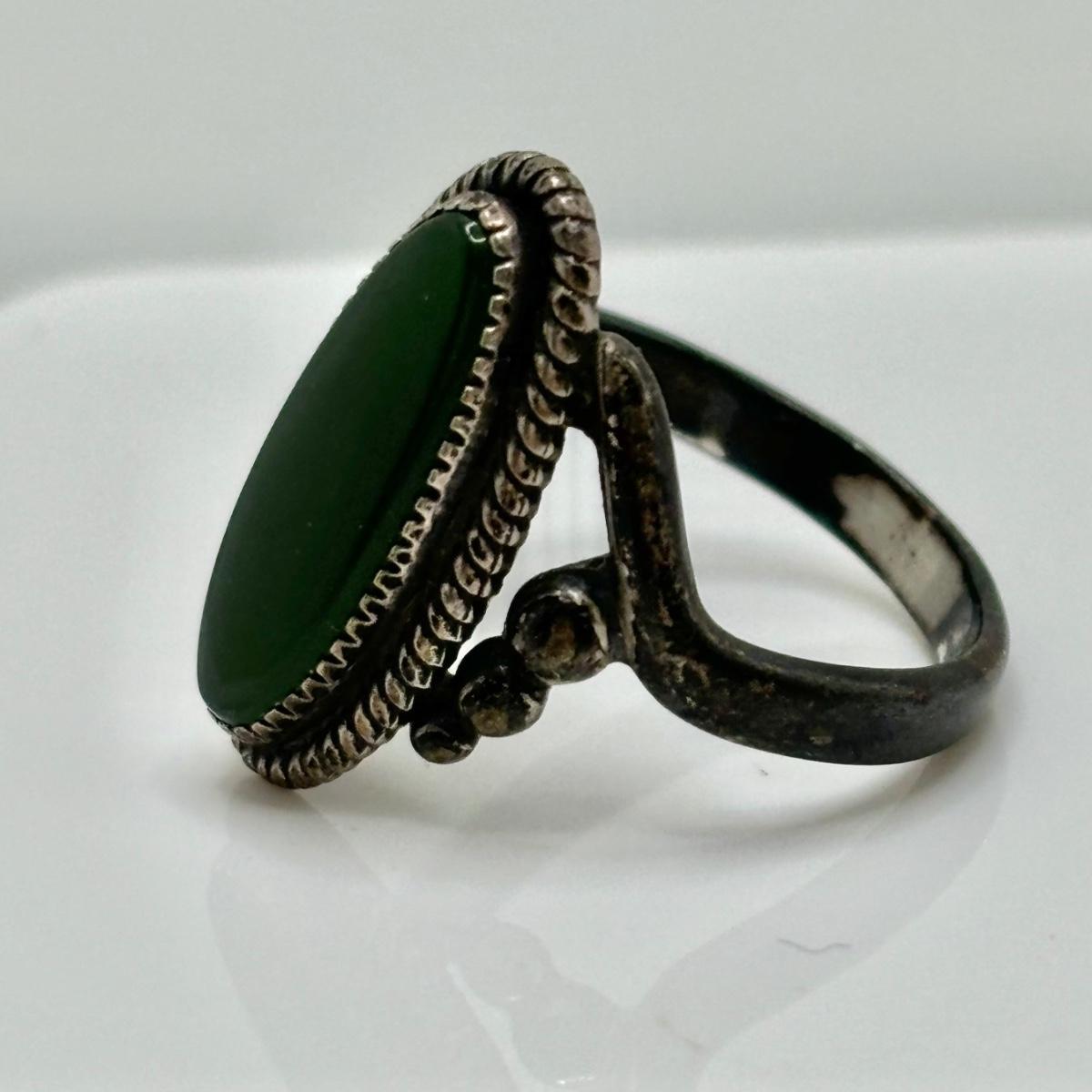 LOT 146: Sterling Silver Oval Greenish Stone Ring, sz 9 & Oval Yellowish Stone Ring, sz 7.5