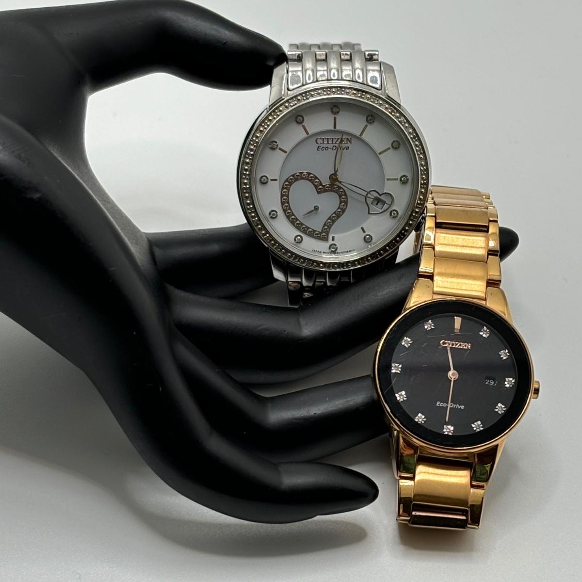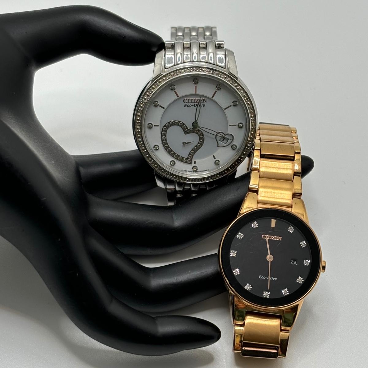 LOT 149: Classic Eco-Drive Citizen Watch & Citizen White Dial w/Hearts Eco Drive Watch