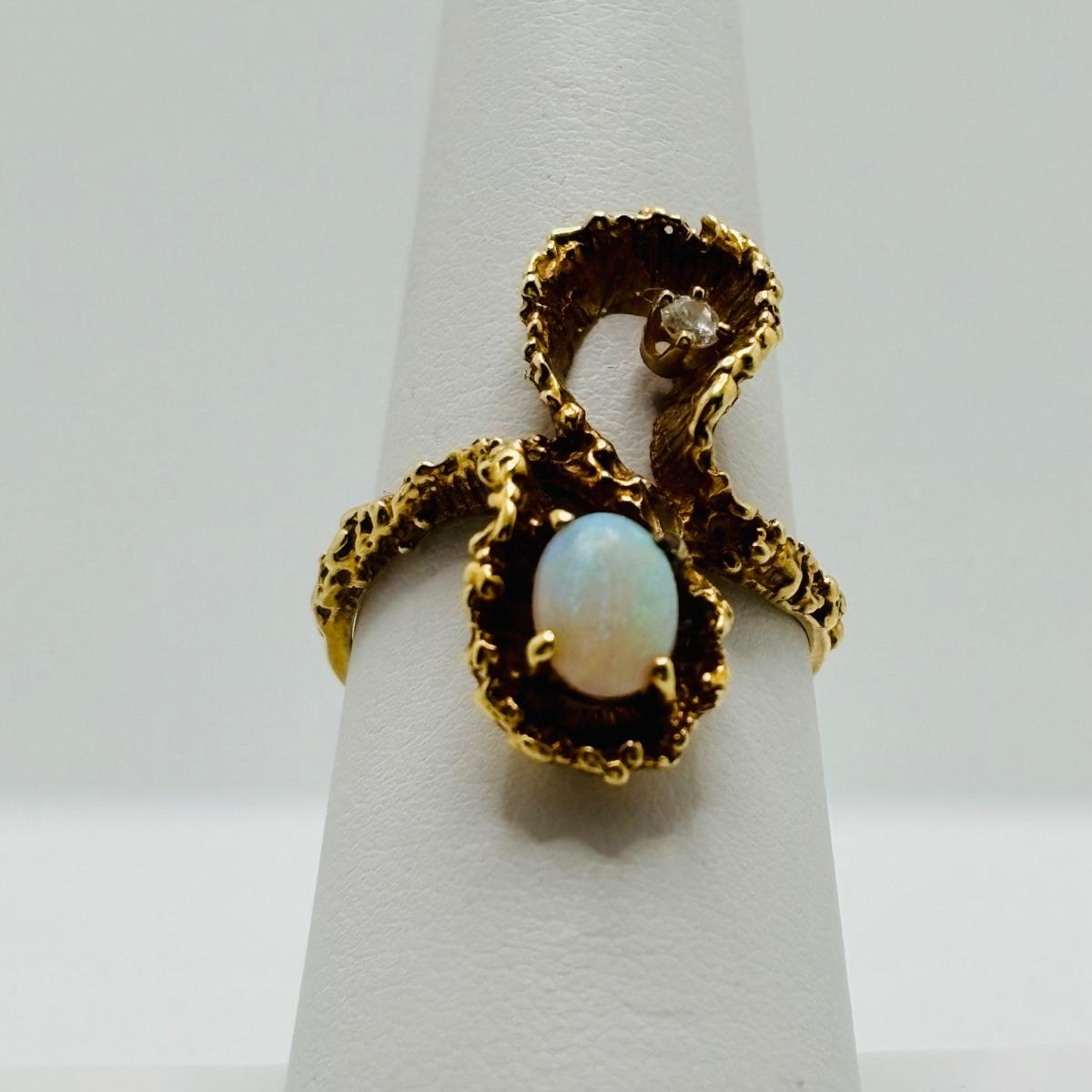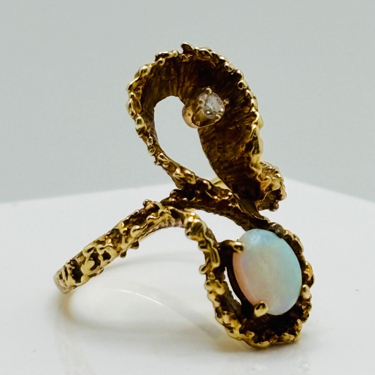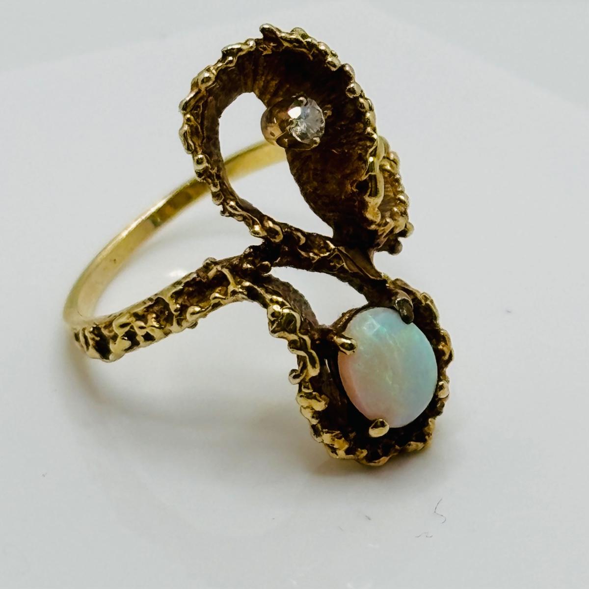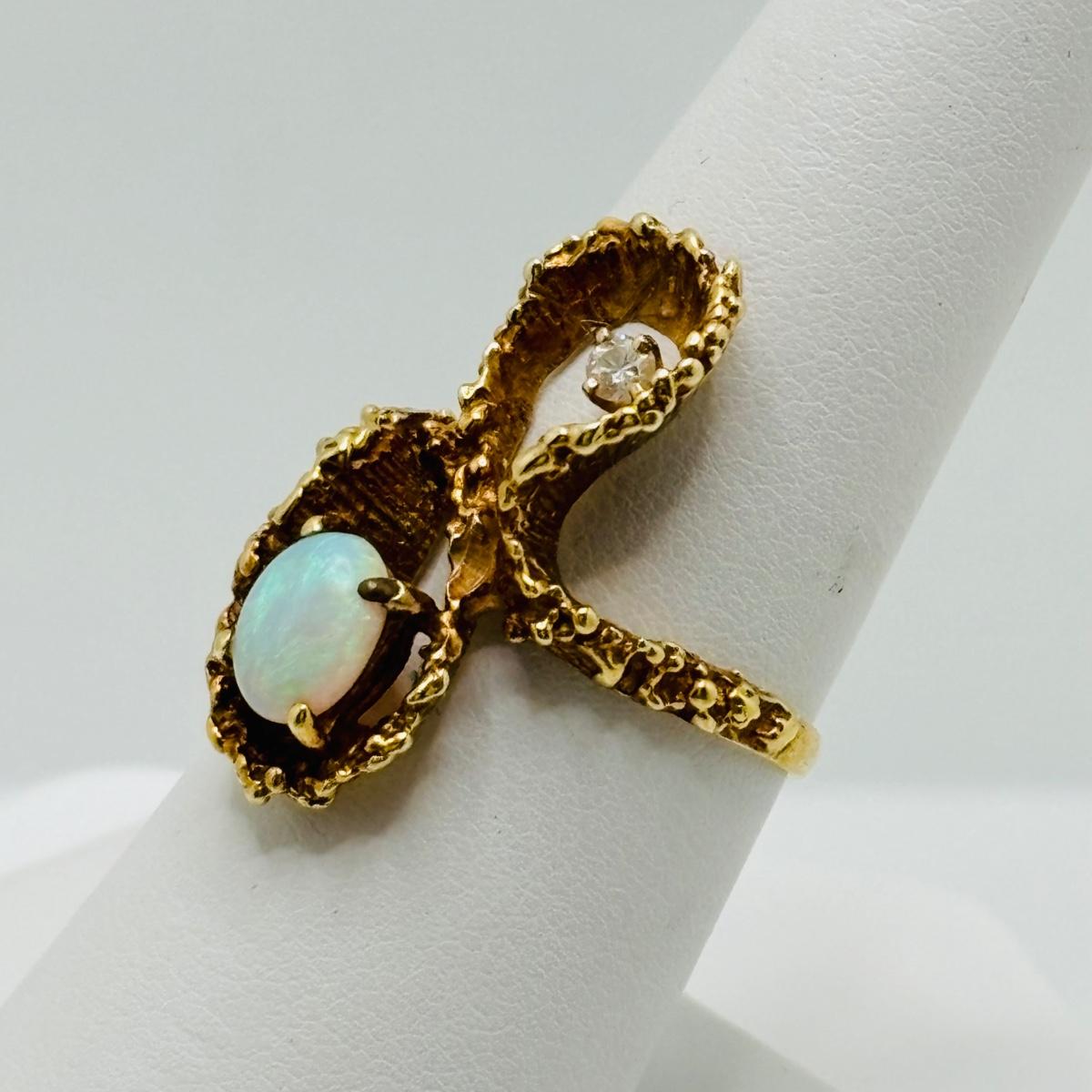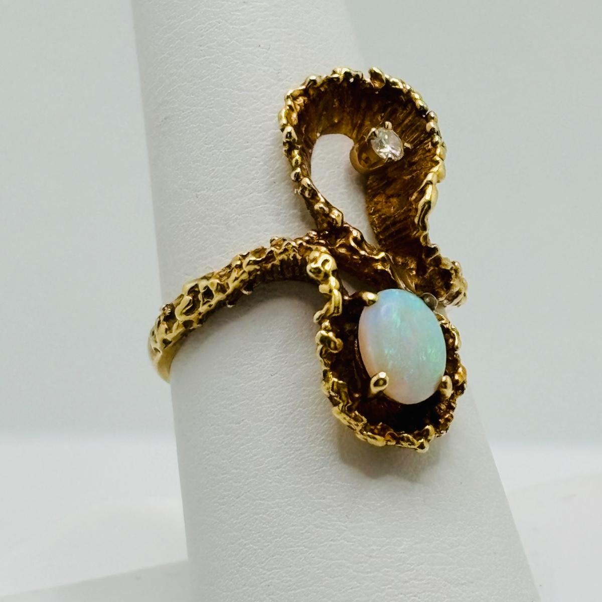 LOT 152: Free Form Style 14k Opal & Diamond Ring: 4.7 gtw, Sz 6.5