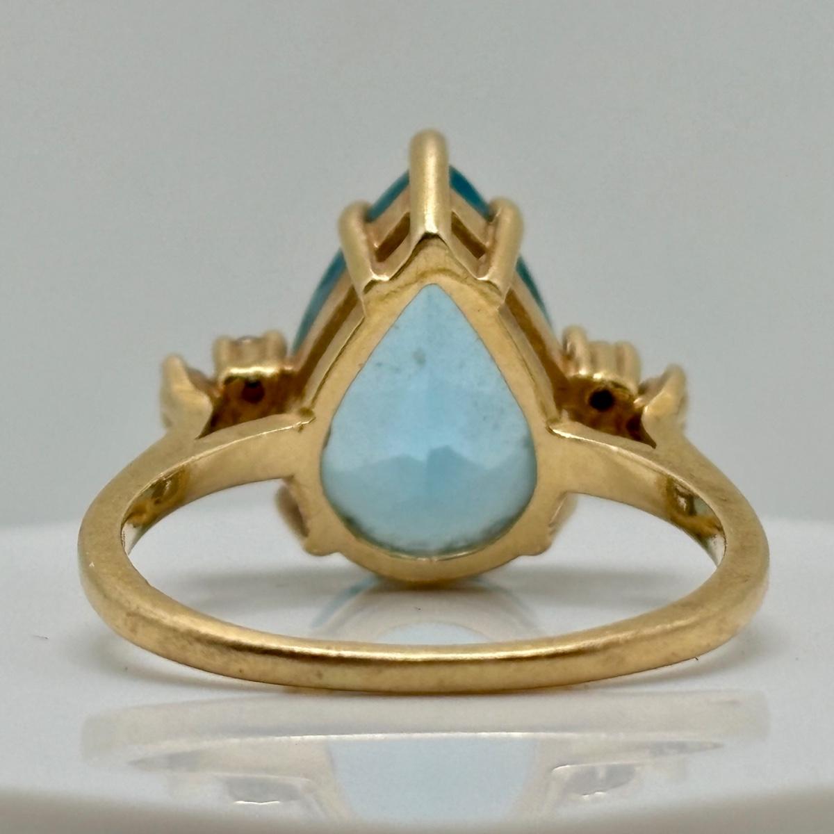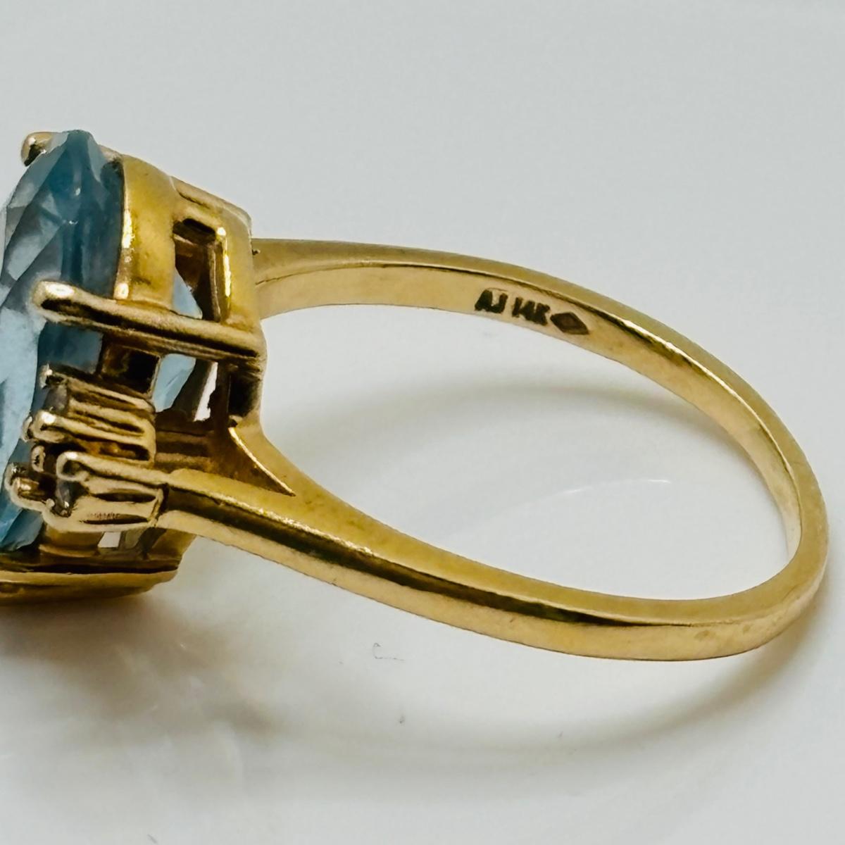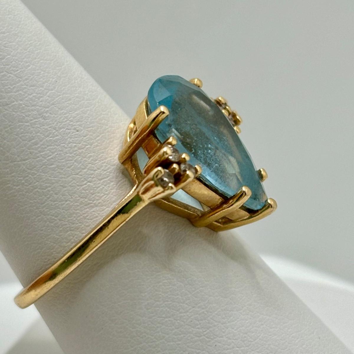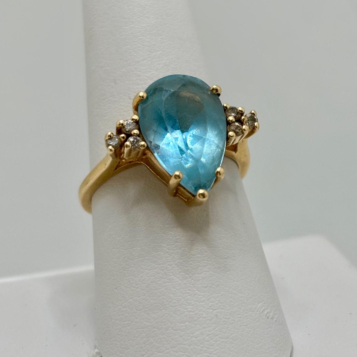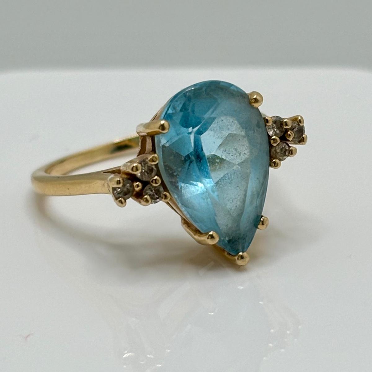 LOT 159: AJ 14k Pear Cut Blue Topaz Ring: 5.2 gtw, sz 8.5