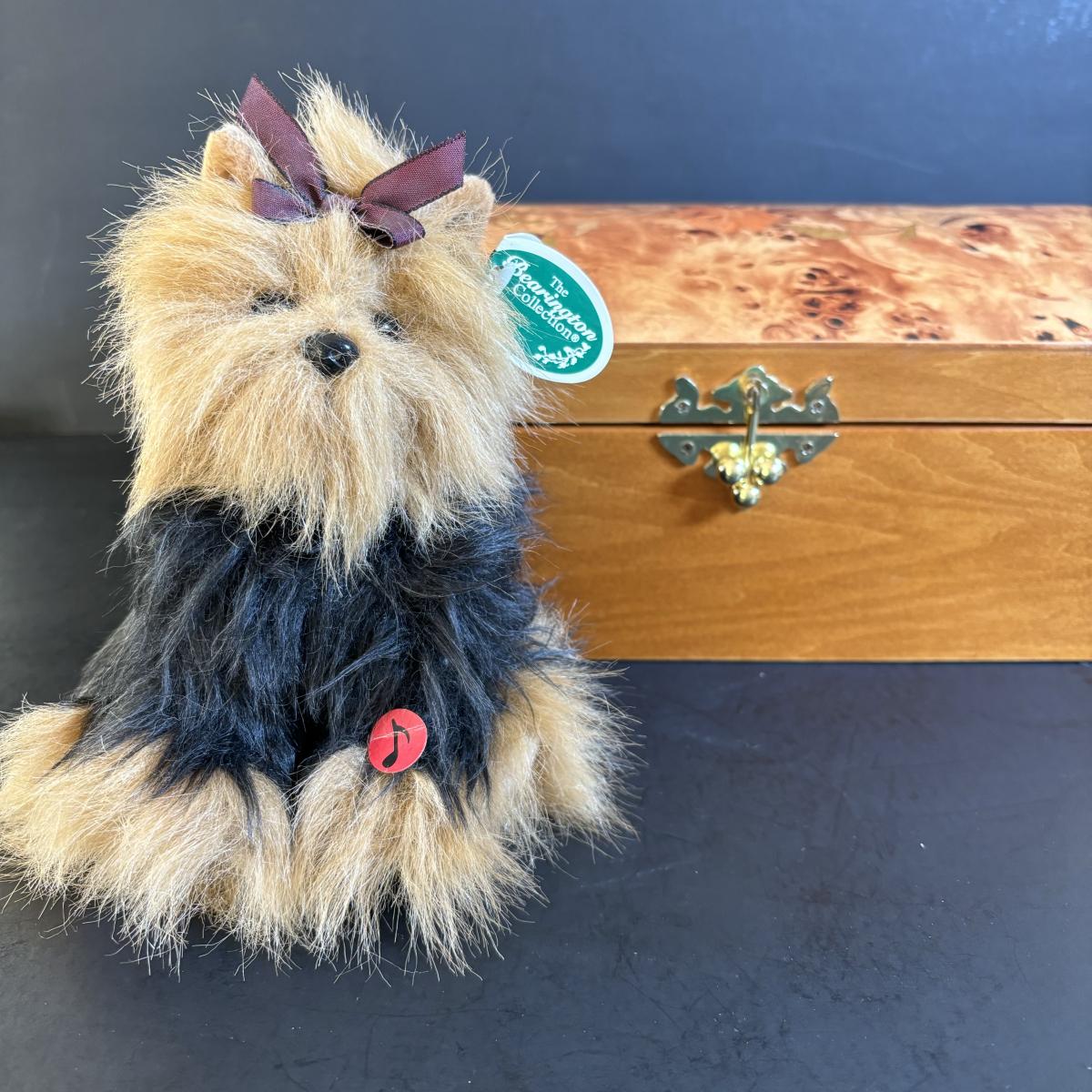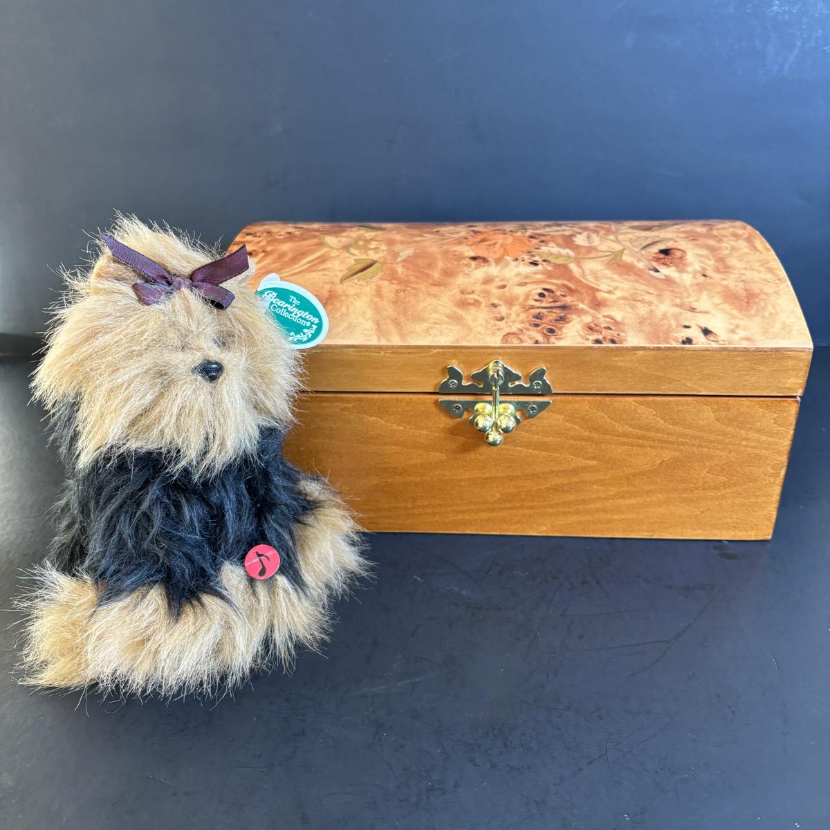 LOT 162: Vintage Mele & Co. Oriental Rose Jewelry Box & Bearington Yorkie Plush