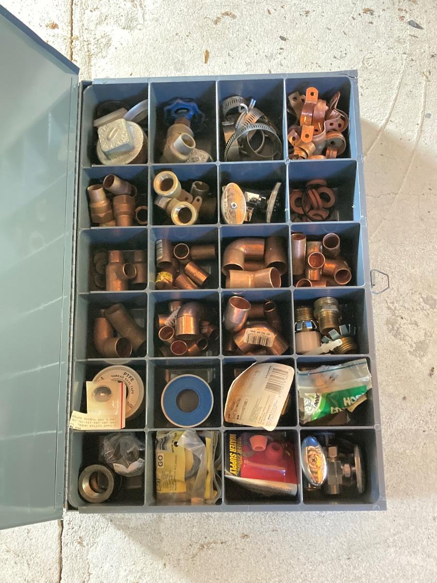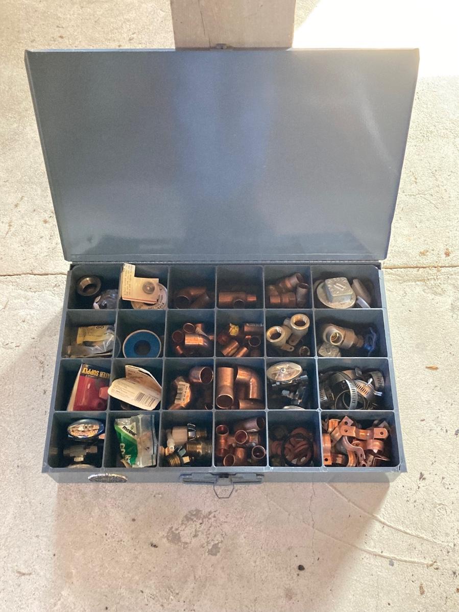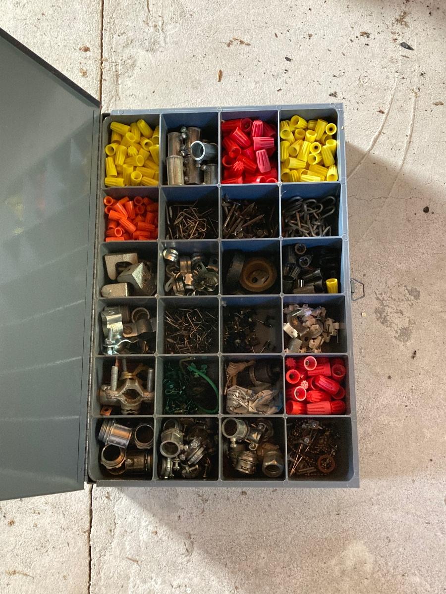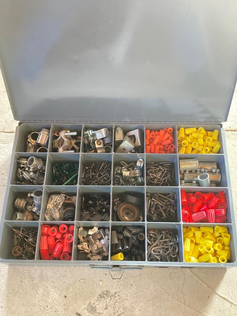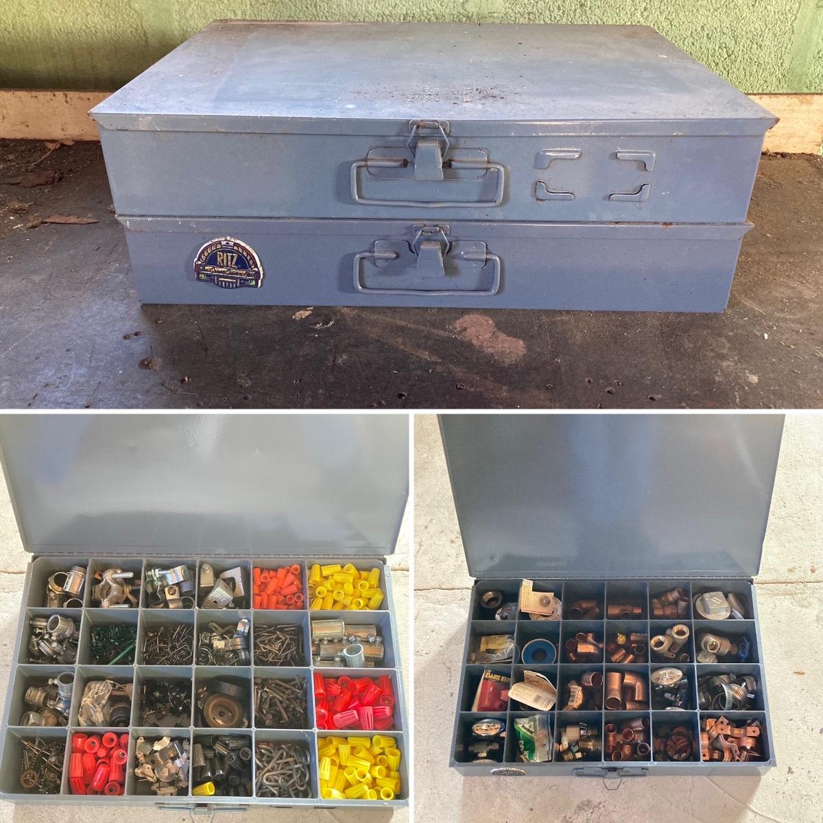 LOT 164: Two Metal Hardware Organizers and Contents - Copper / Electrical Included