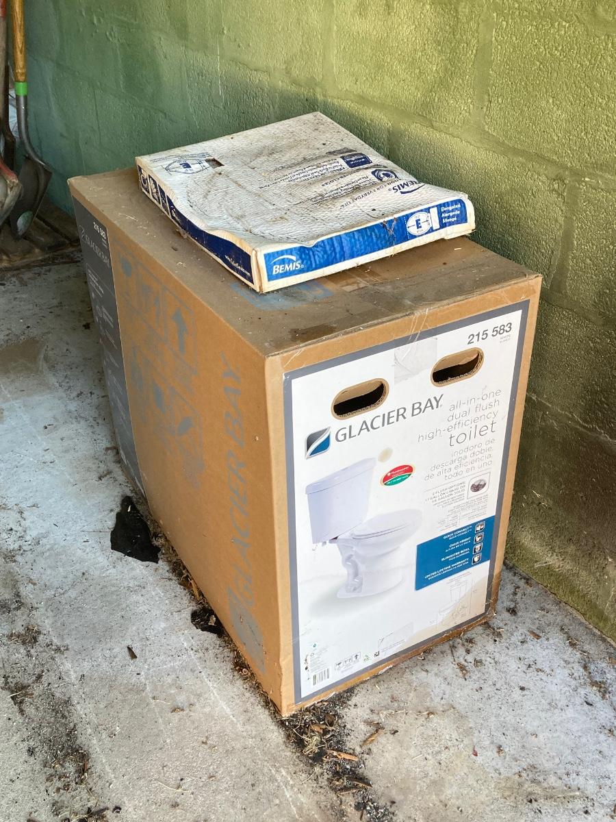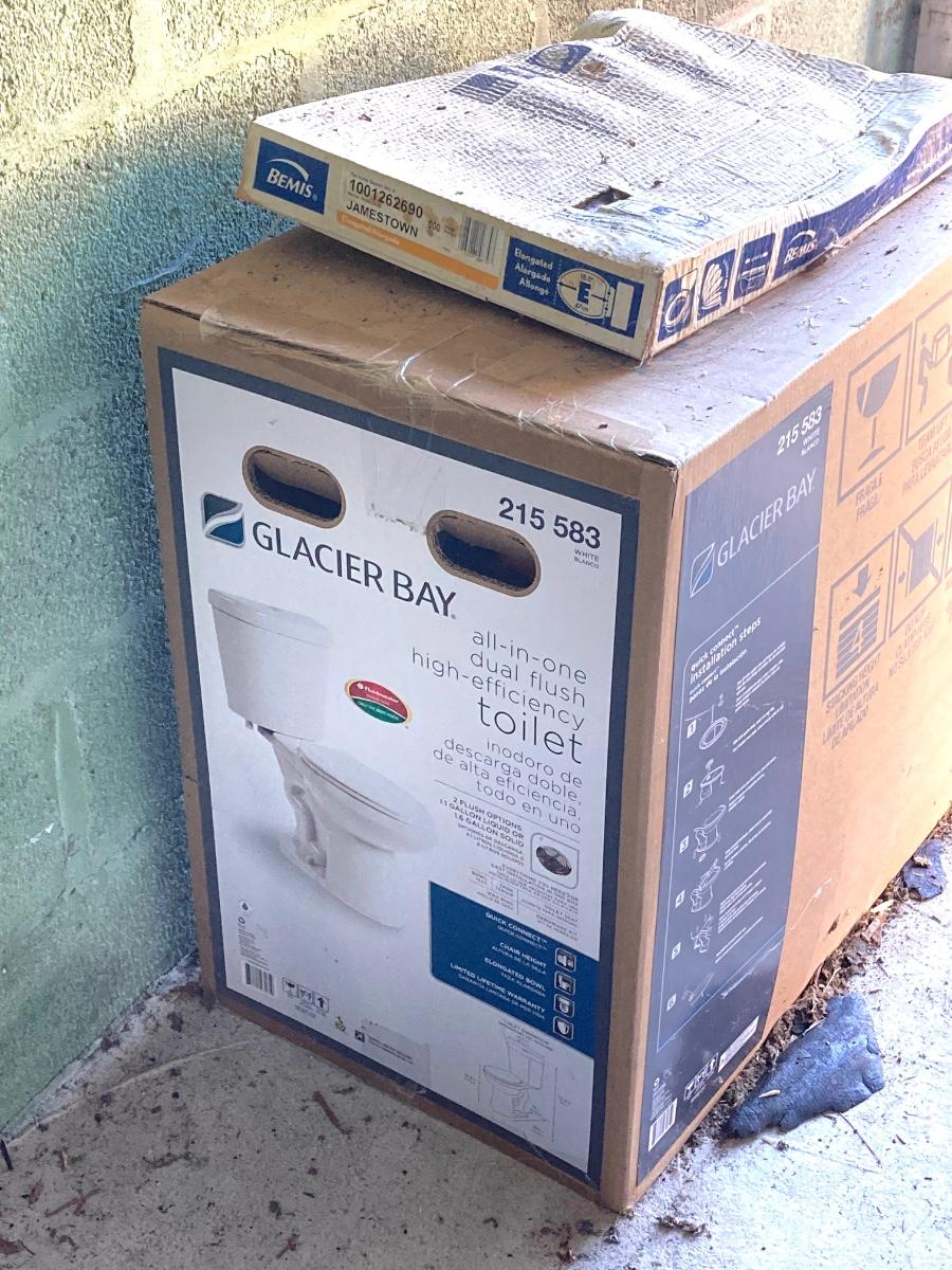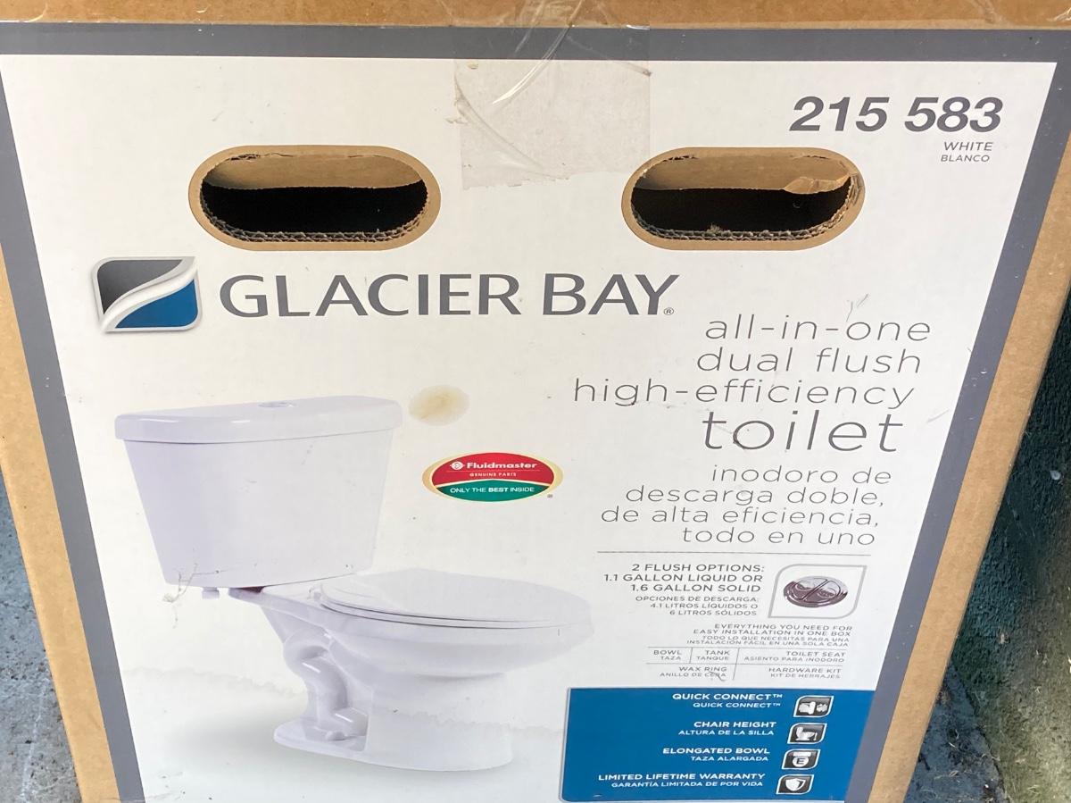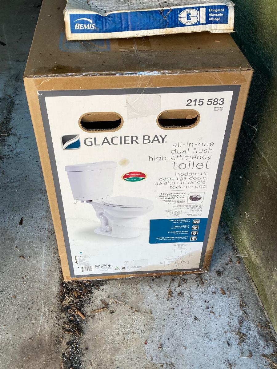 LOT 170: Glacier Bay Toilet in Box (215 583) with Bemis Elongated Toilet Seat