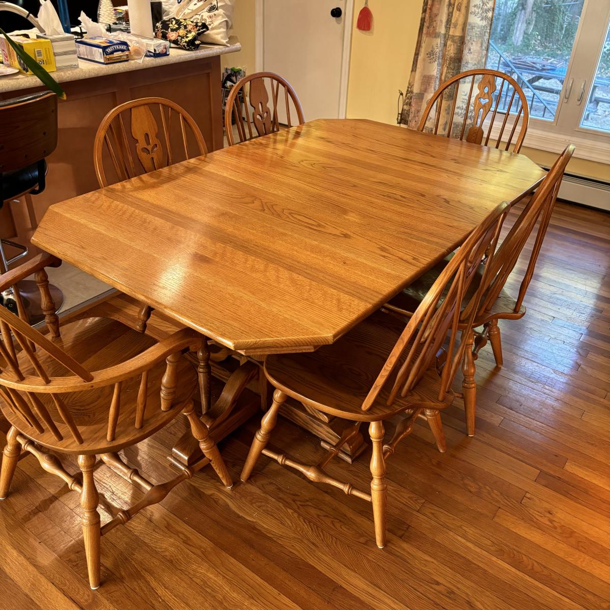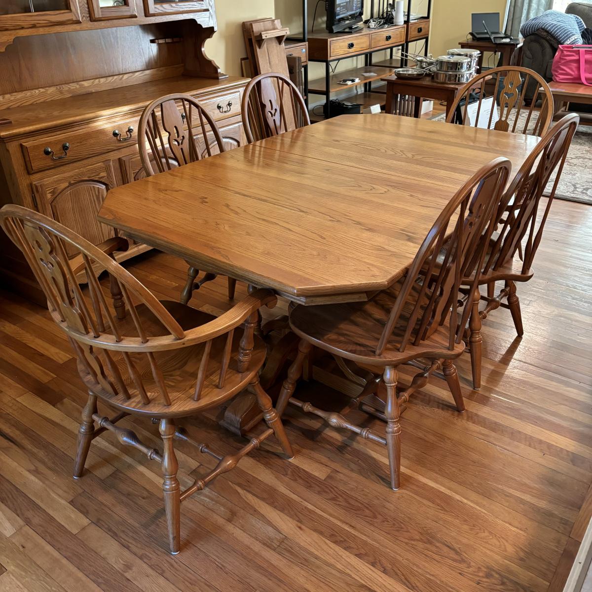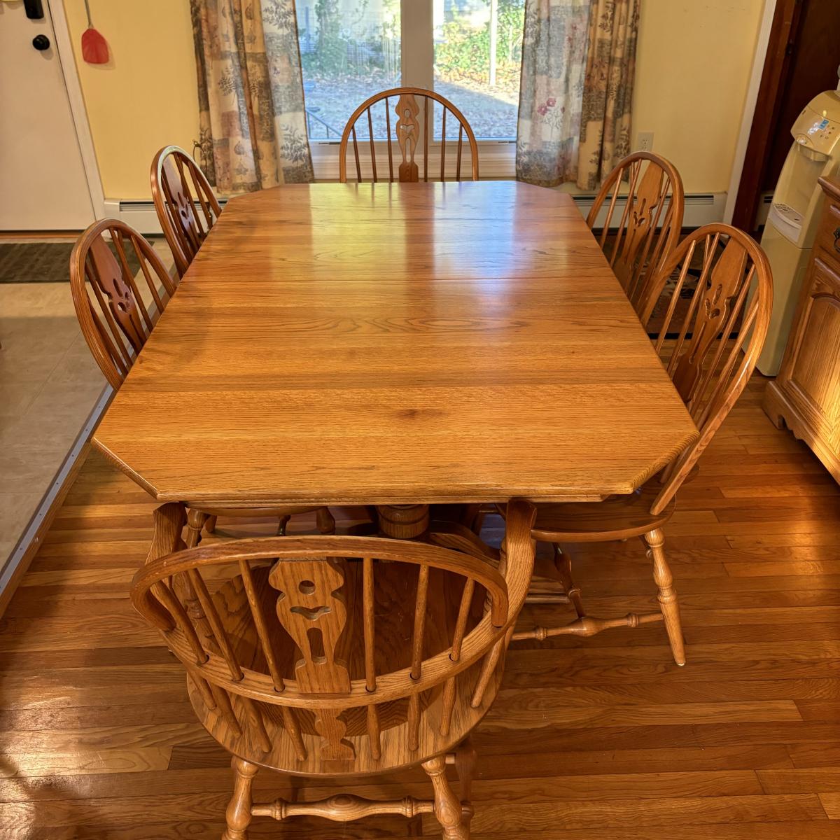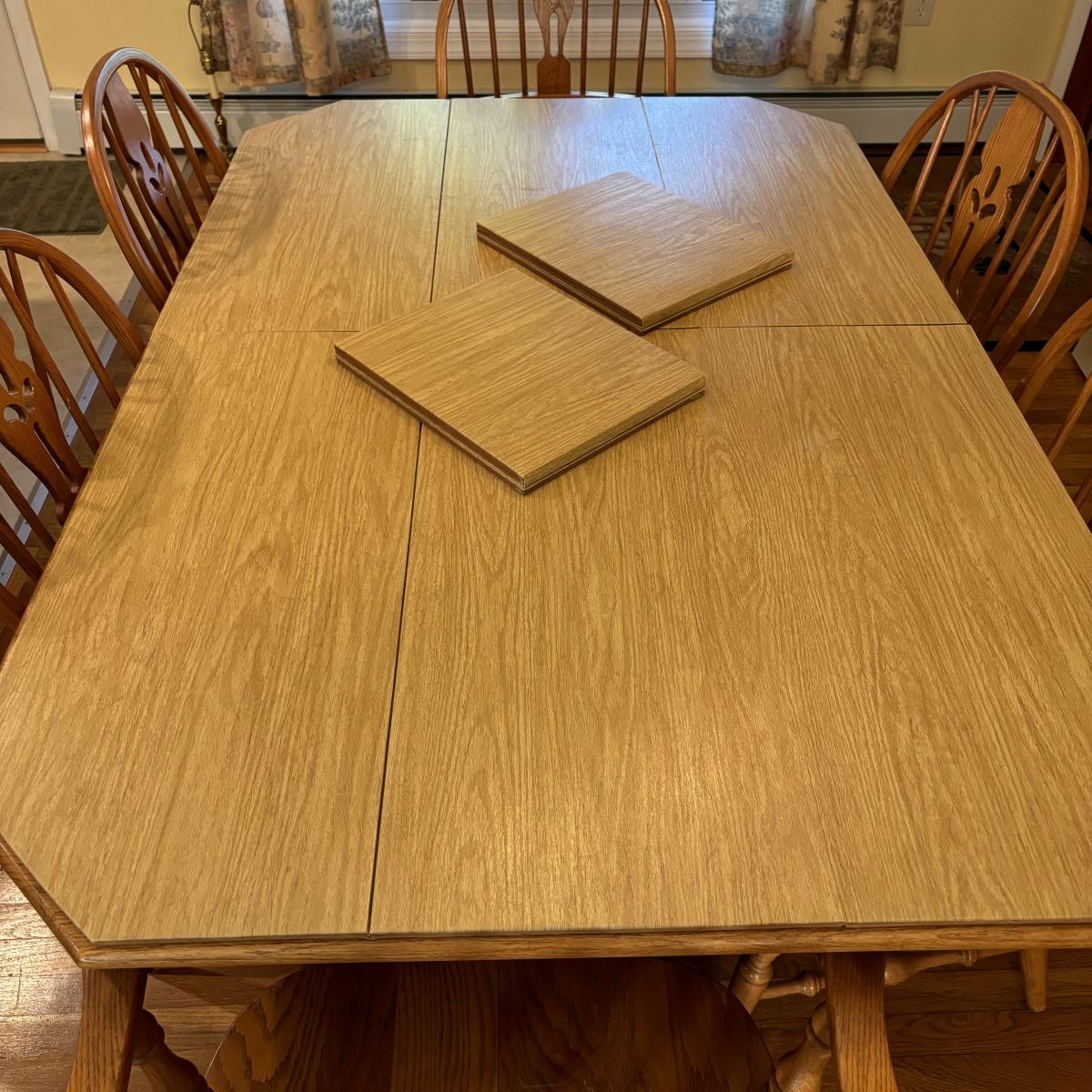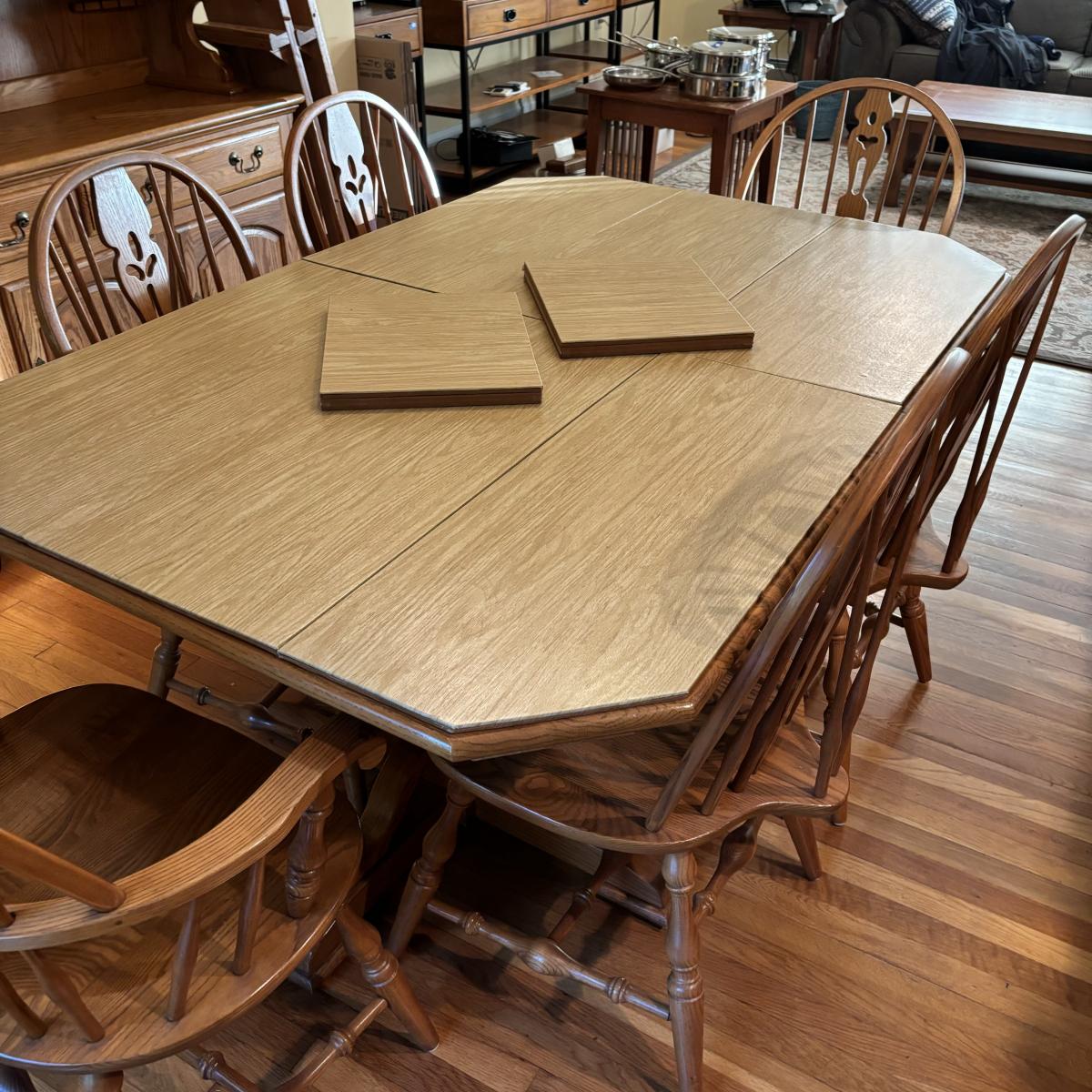 LOT 172: Nathan Hale Dining Table, 6 Chairs, 2 Table Extensions along with Table Pads