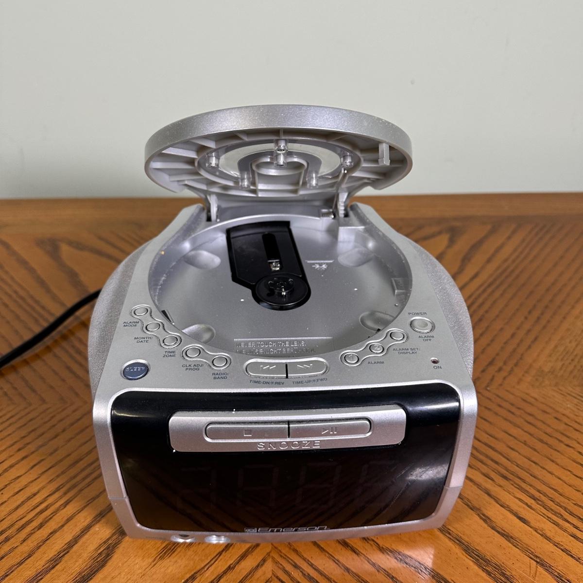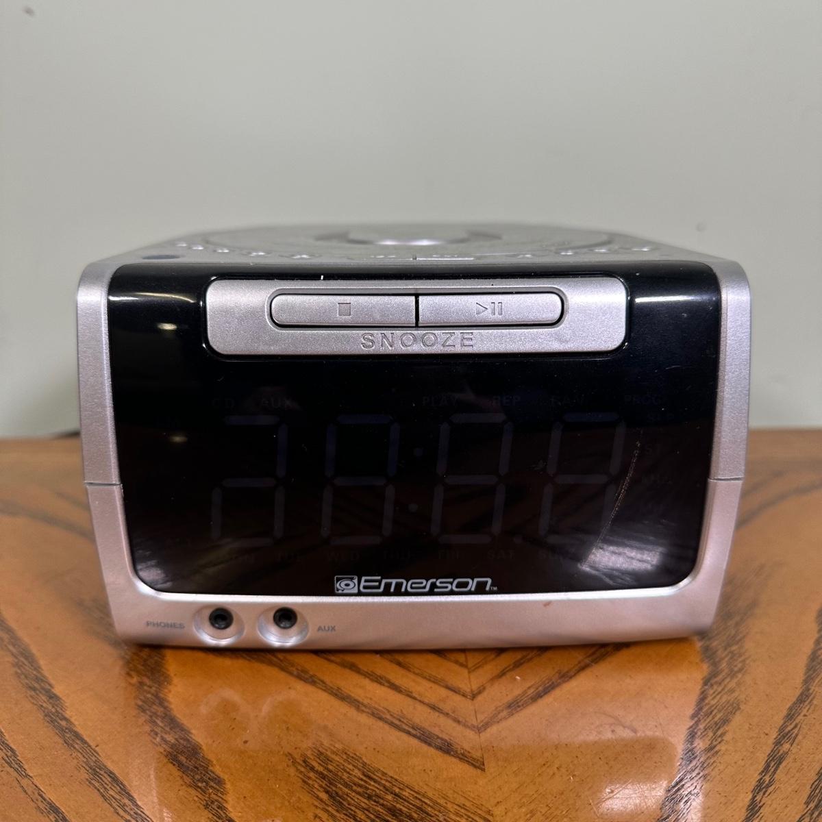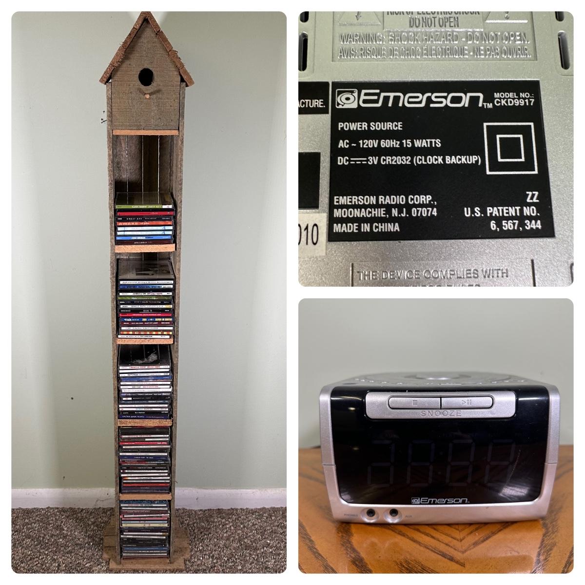 LOT 19B: Emerson CD Alarm Clock Radio CKD9917 w/ CD Collection & Tower