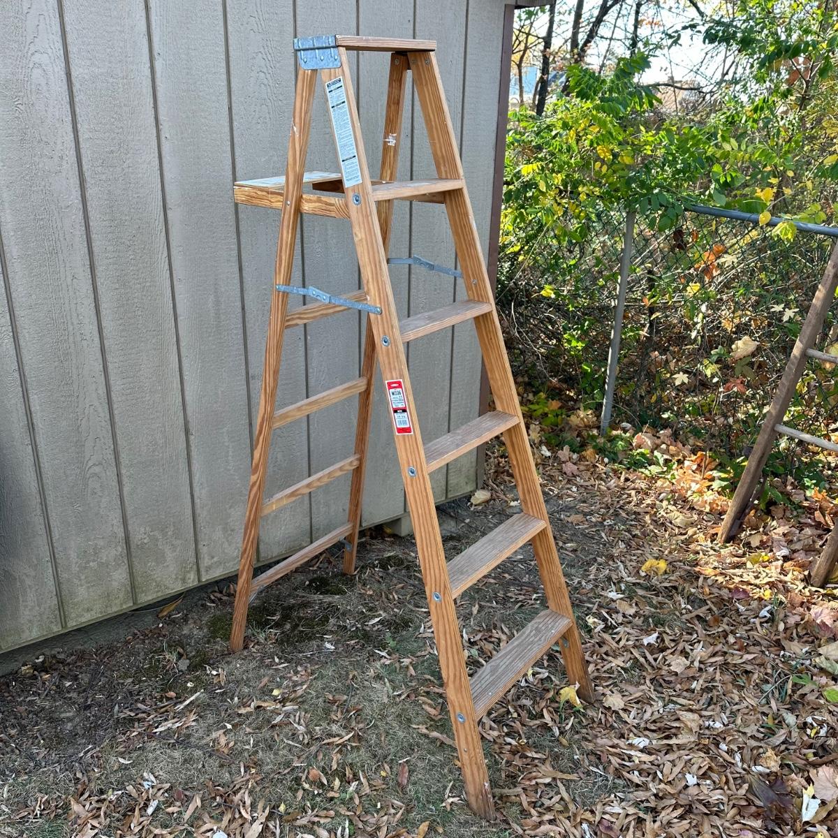 LOT 22G: 2 Wooden Ladders - Werner Model W336 & More