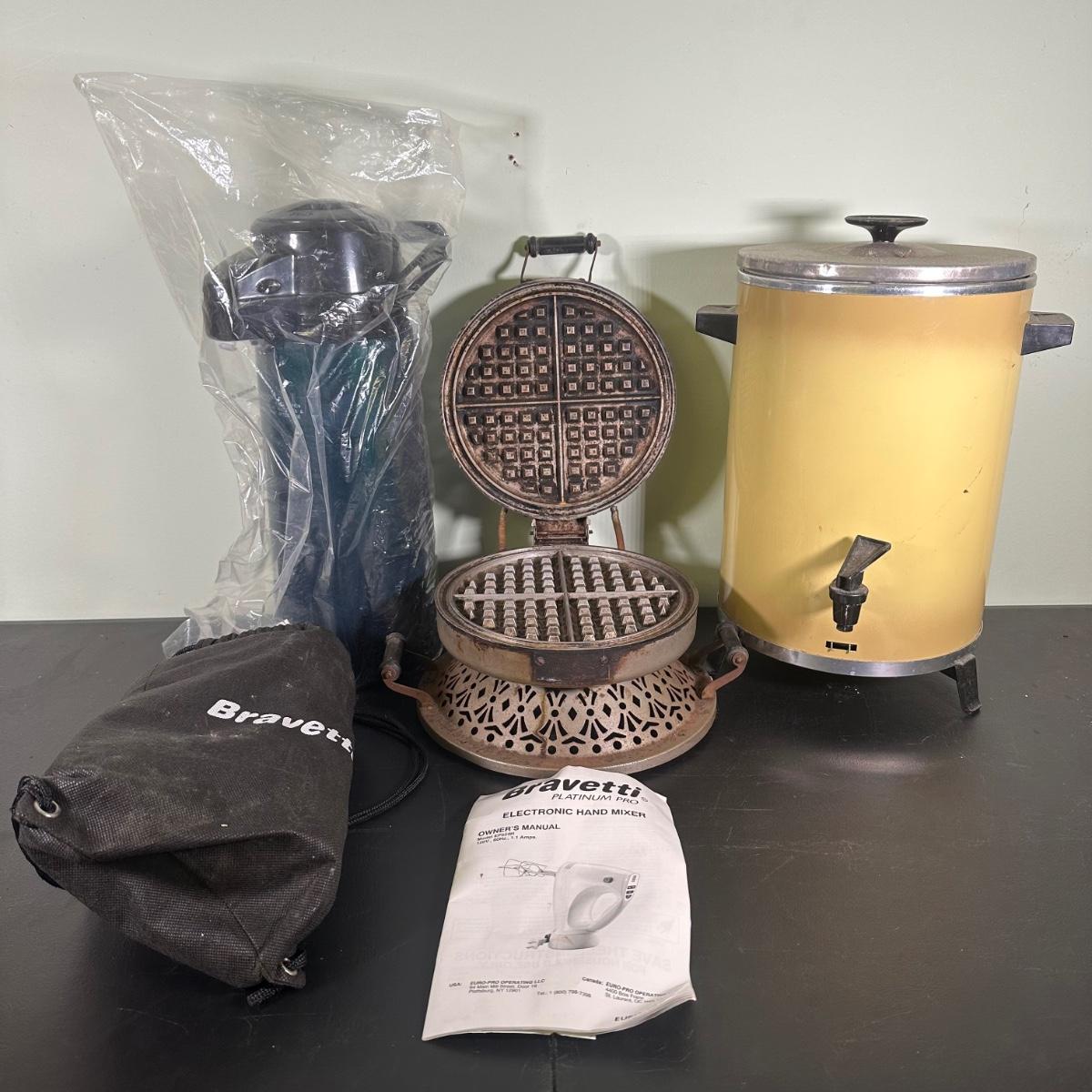 LOT 48B: Bravetti Hand Mixer EP524H, Vintage Waffle Iron, West Bend Coffee Maker & More