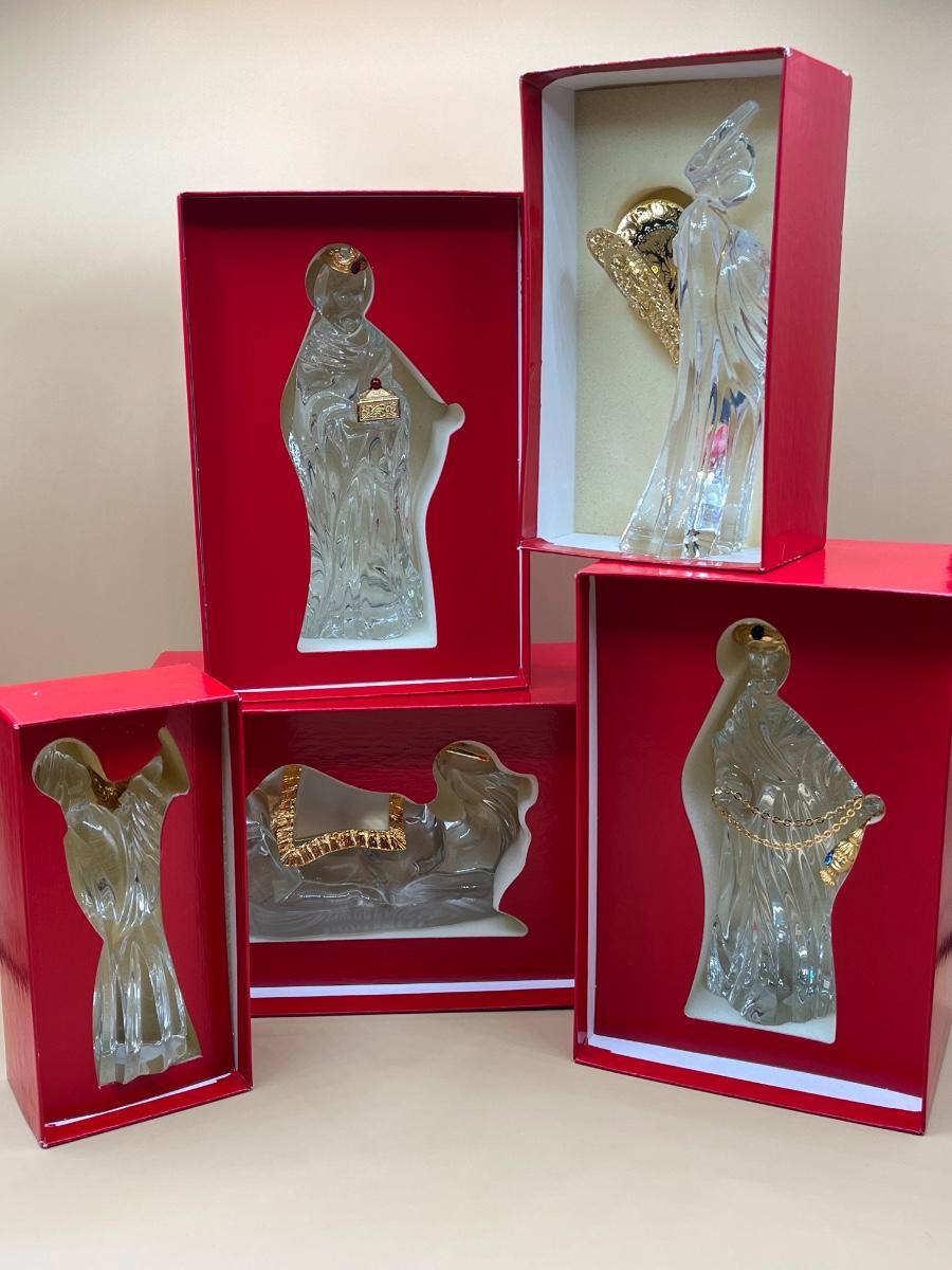 LOT 49B: Gorham Crystal Christmas Nativity Pieces - Angels, Wisemen, Camel