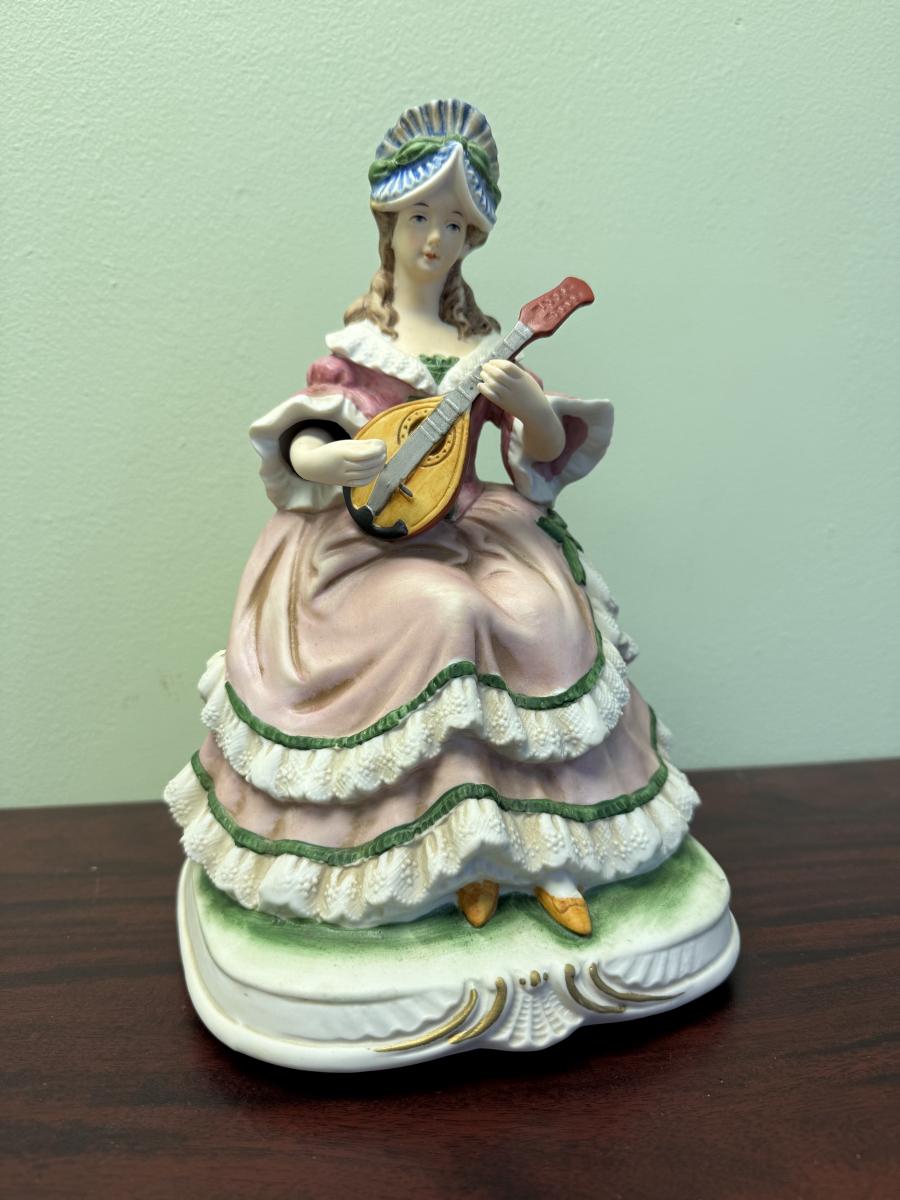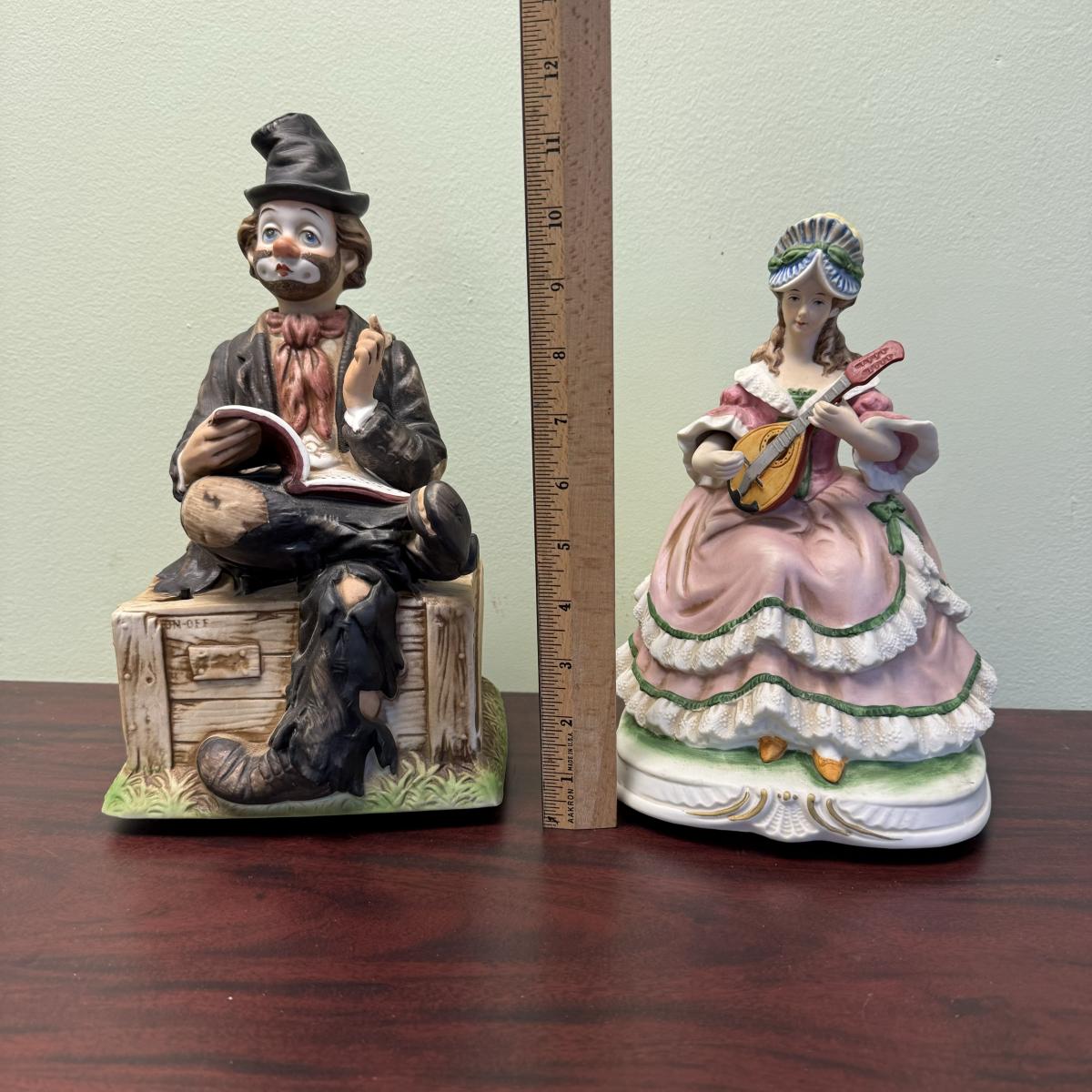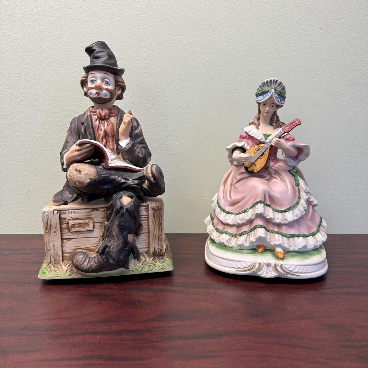 LOT 82S: Waco Porcelain Melody in Motion Musical Figurines - The Whistler Willie Hobo Clown & Madame Mandolin Player