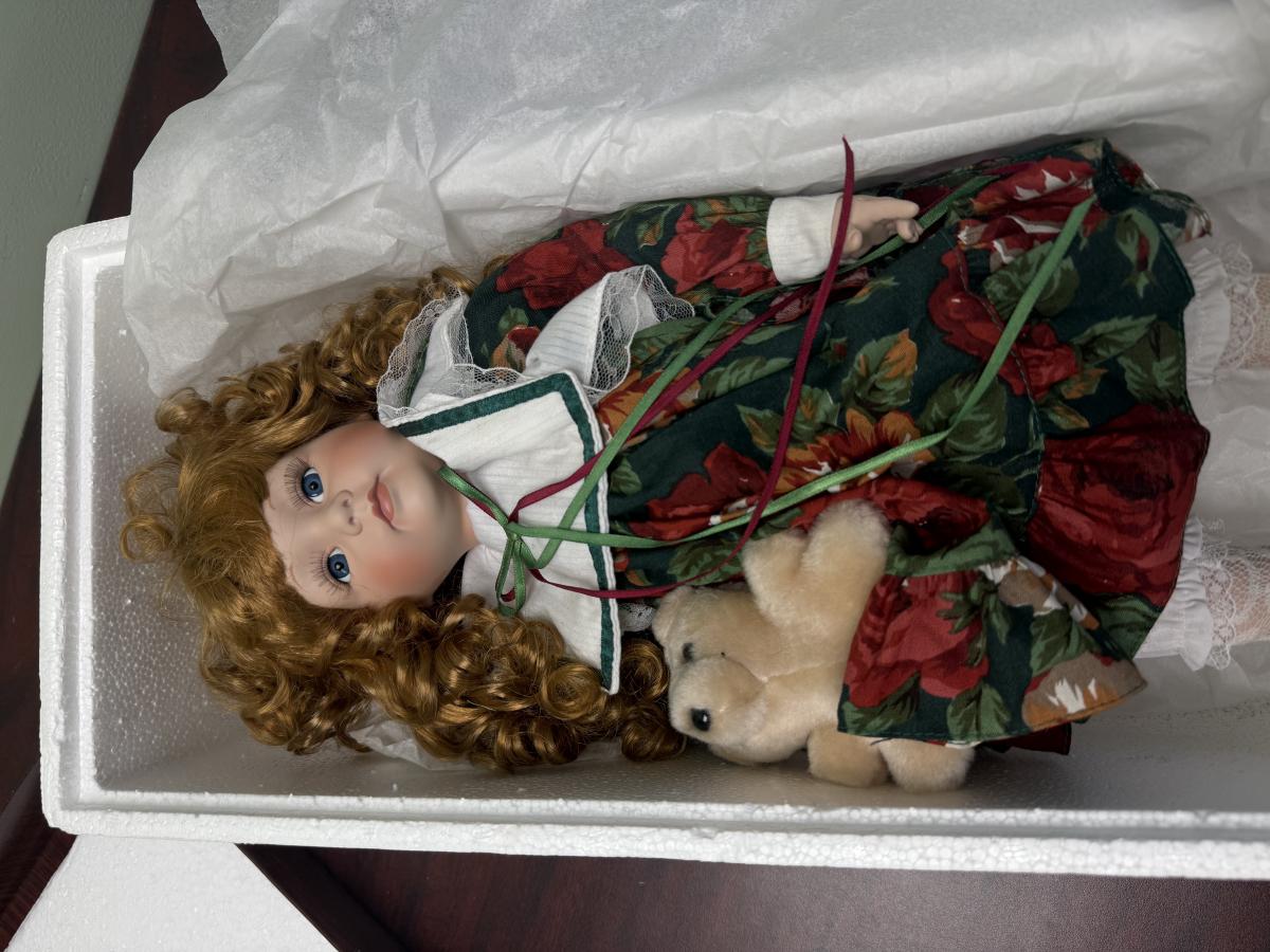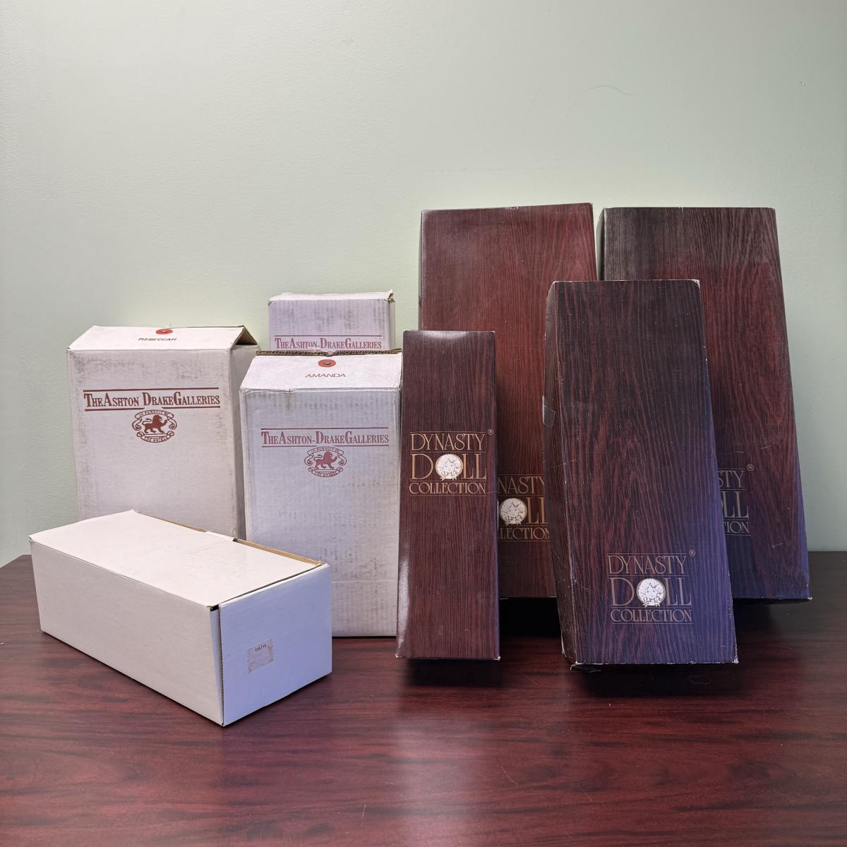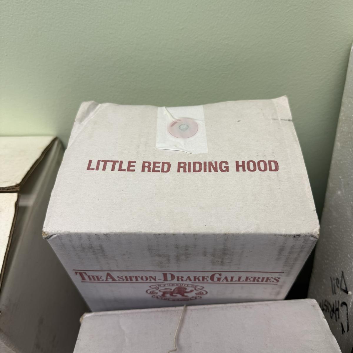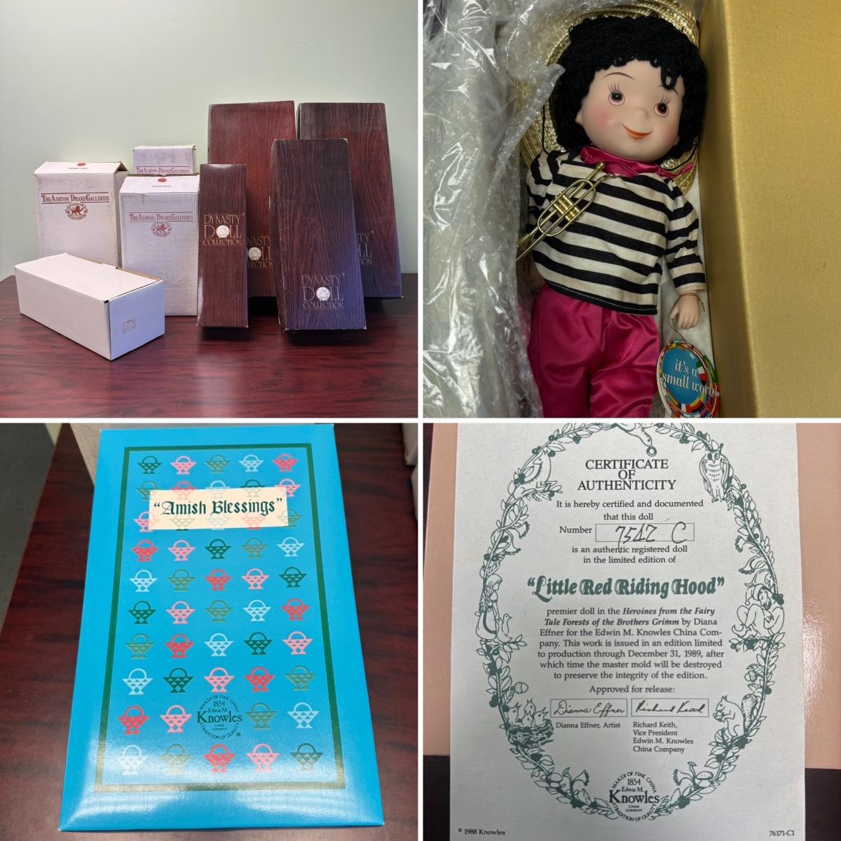 LOT 86S: Collection of Vintage Boxed Porcelain Dolls - Goebel US It's a Small World, Dynasty Doll Collection, Edwin M Knowles Little Red Riding Hood, Amanda & Rebeccah - some w/ COAs