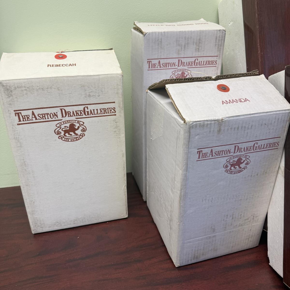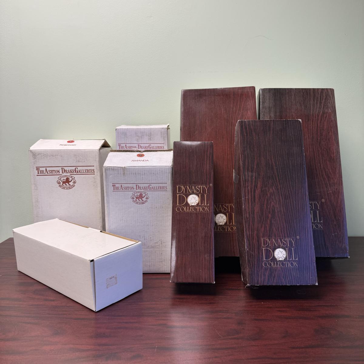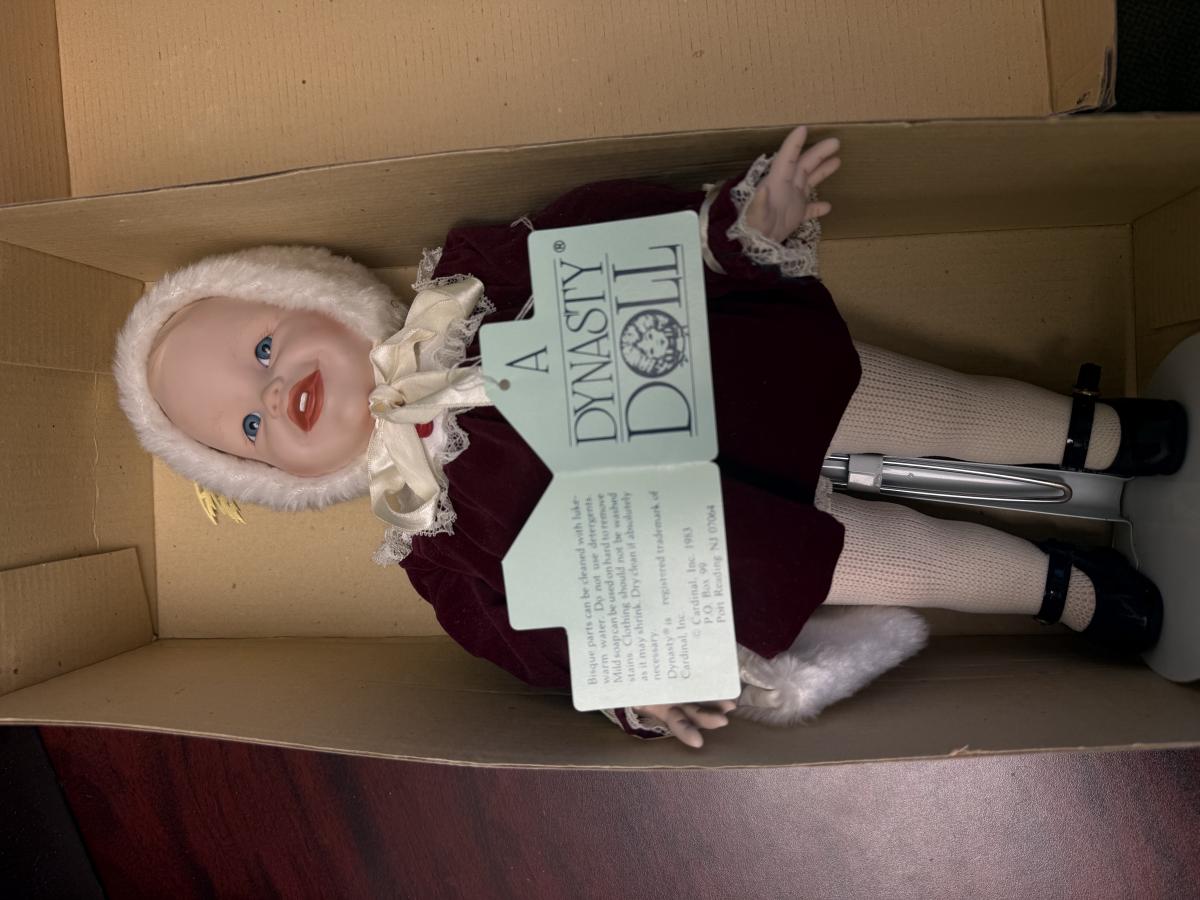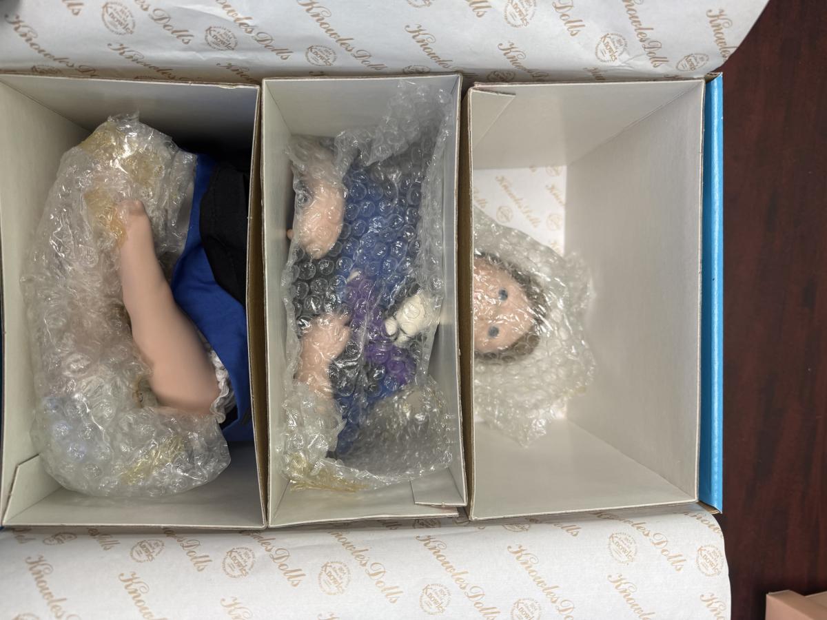 LOT 86S: Collection of Vintage Boxed Porcelain Dolls - Goebel US It's a Small World, Dynasty Doll Collection, Edwin M Knowles Little Red Riding Hood, Amanda & Rebeccah - some w/ COAs