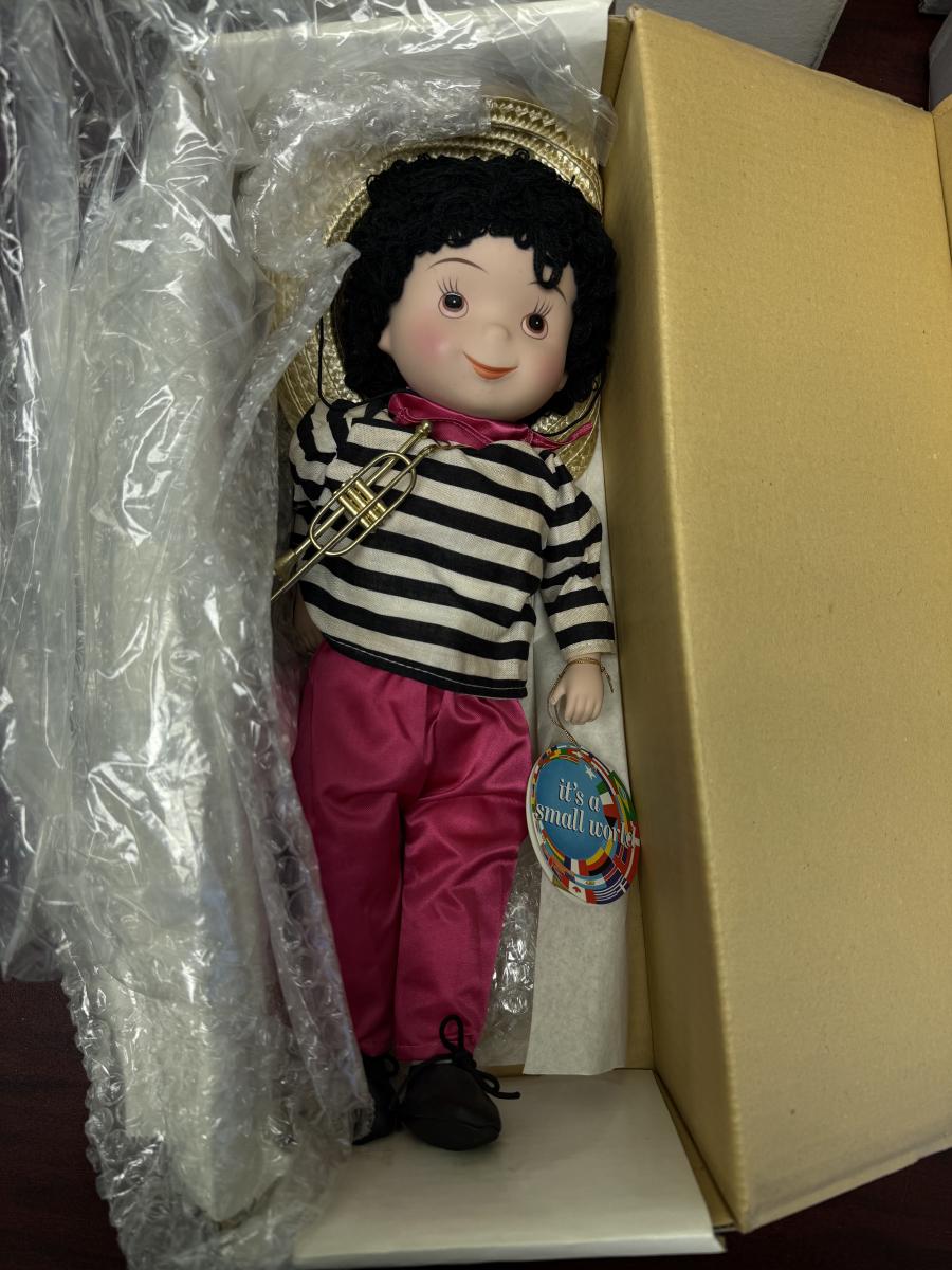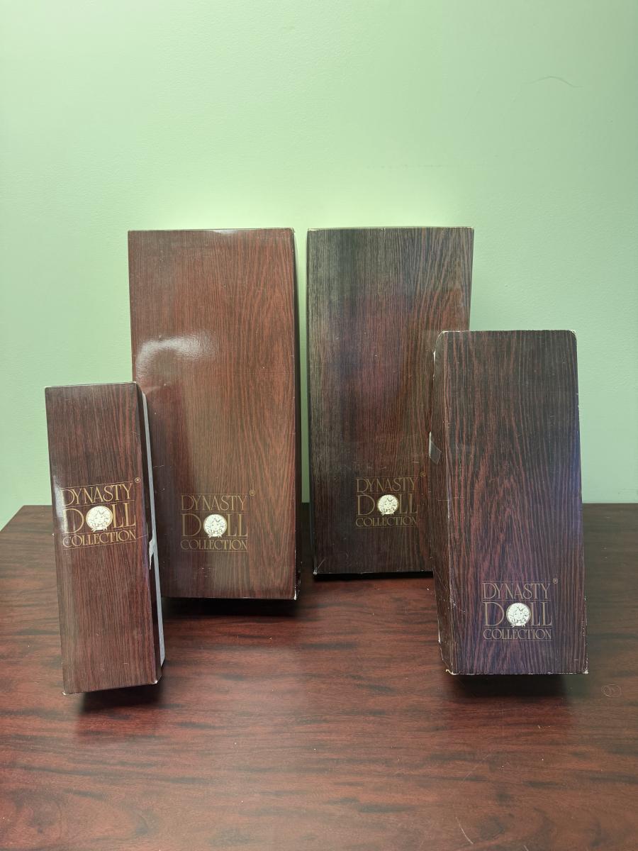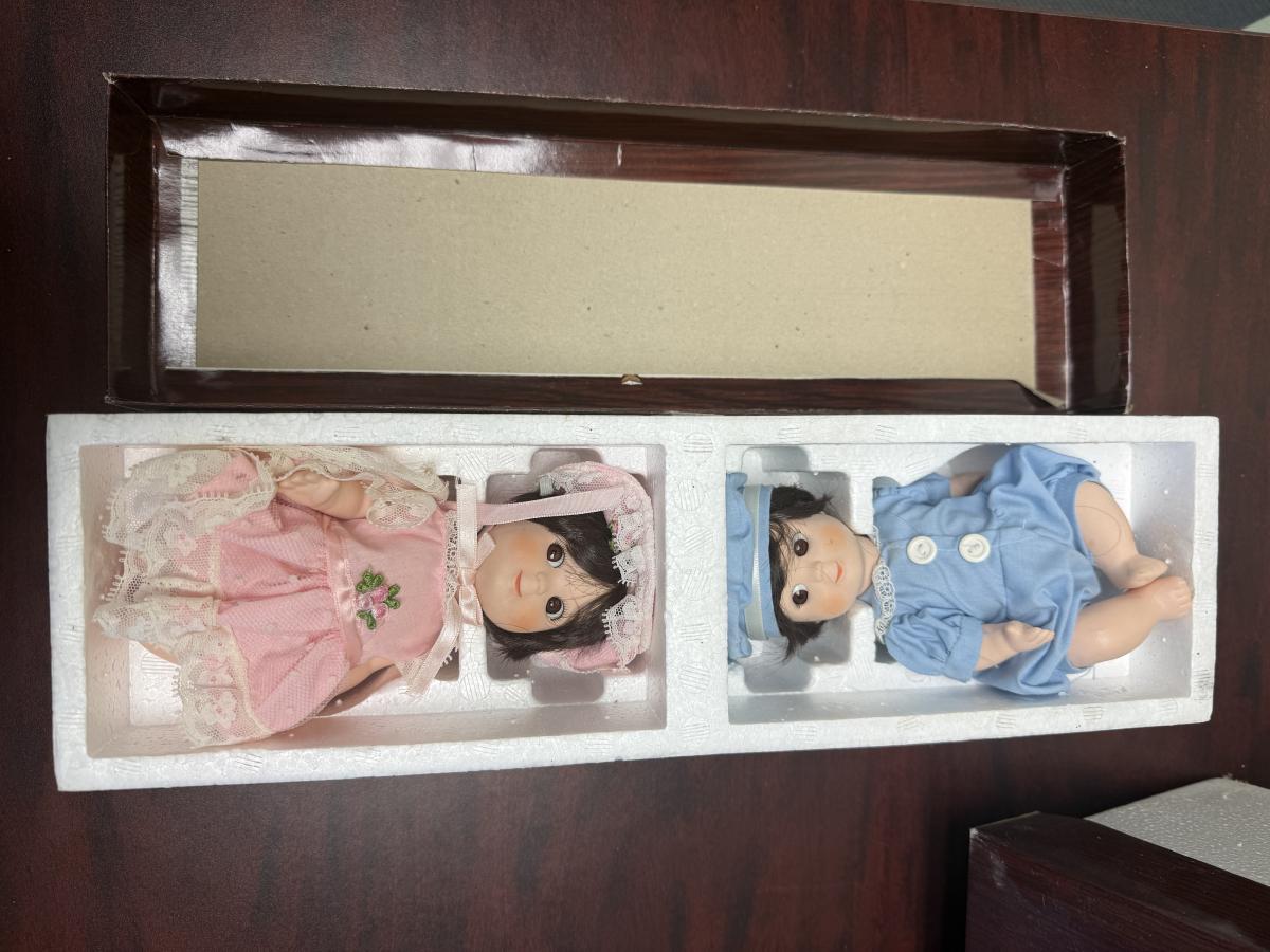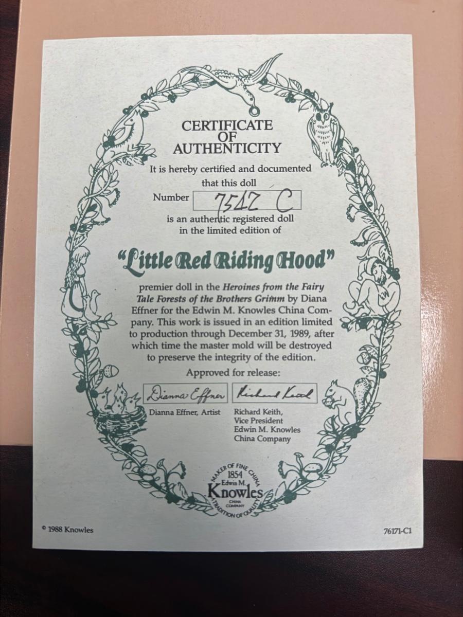 LOT 86S: Collection of Vintage Boxed Porcelain Dolls - Goebel US It's a Small World, Dynasty Doll Collection, Edwin M Knowles Little Red Riding Hood, Amanda & Rebeccah - some w/ COAs